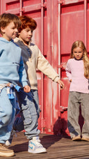Joggeri pentru copii, negri, cu talie elastică și efect de spălare, Button Blue