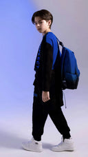 Joggeri cu talie elastică, albaștri, pentru copii, Button Blue