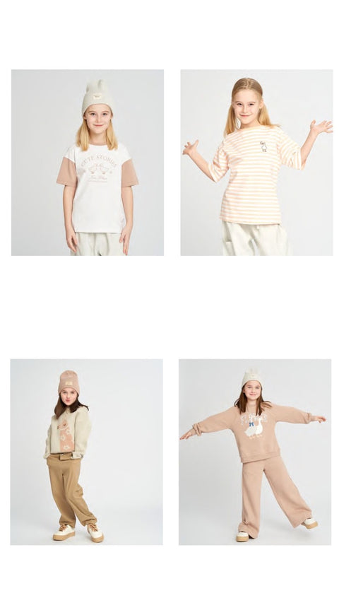Hanorac pentru fete oversized bej cu imprimeu „Găște” Button Blue