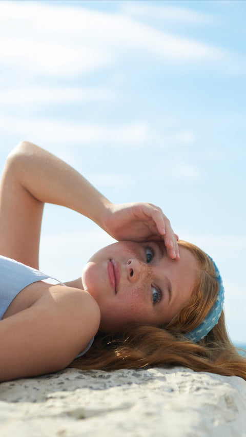 Pantaloni scurți din denim până la genunchi, albaștri, cu imprimeu, pentru fată, Button Blue