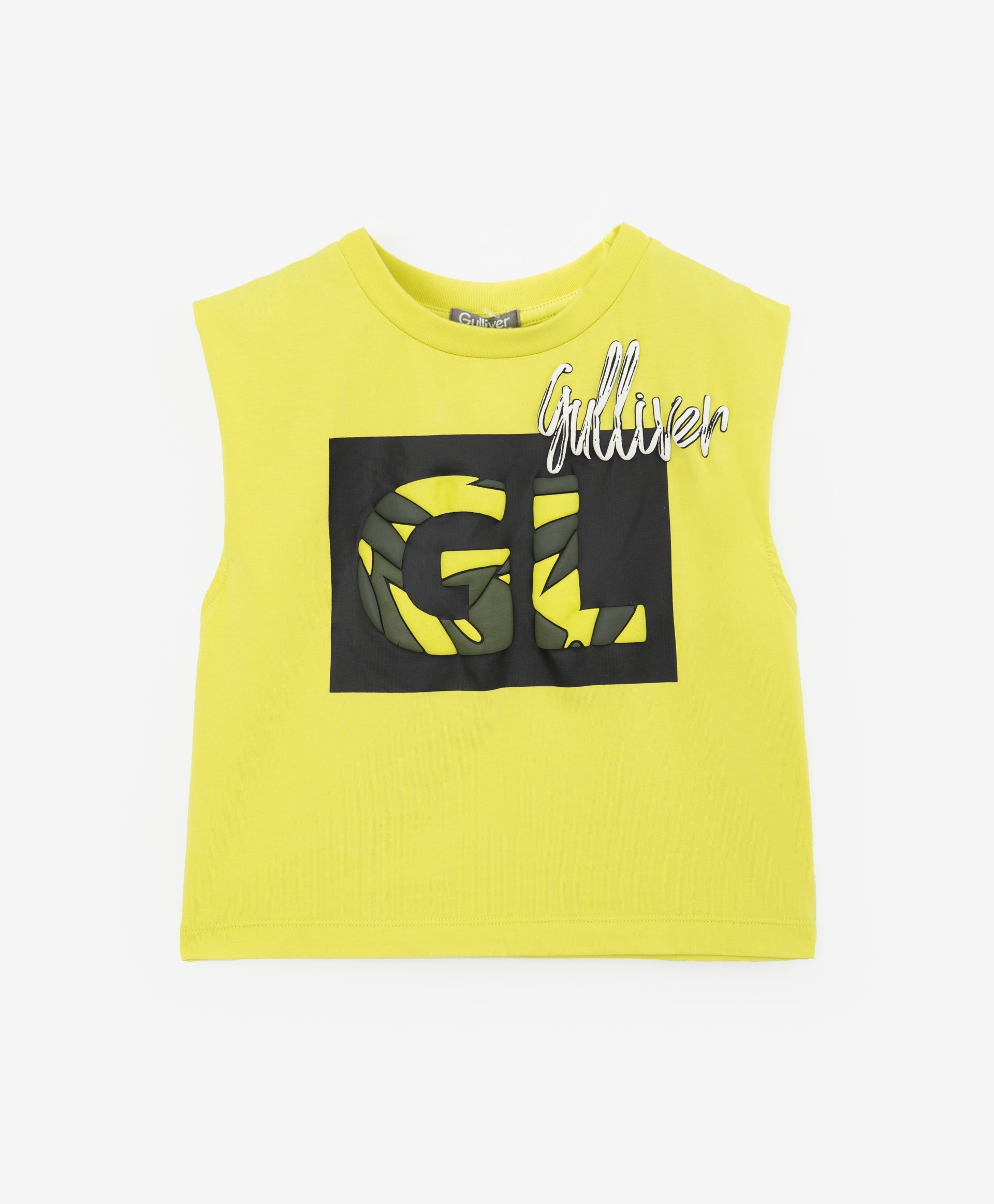 Салатов потник свободна кройка с голям оригинален принт Gulliver