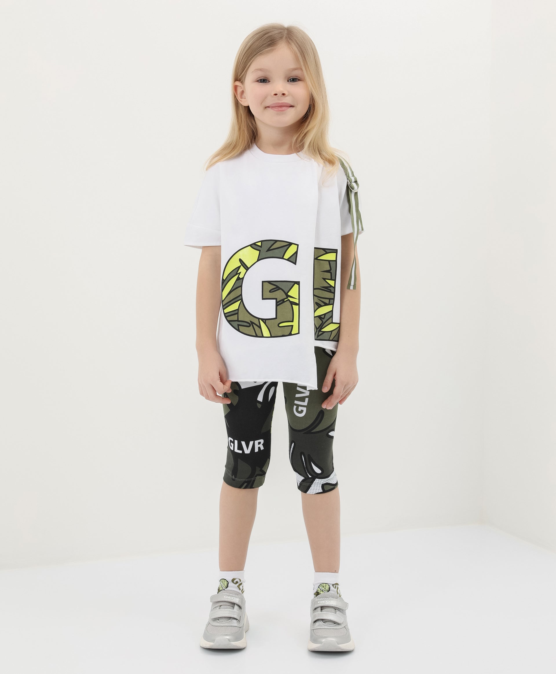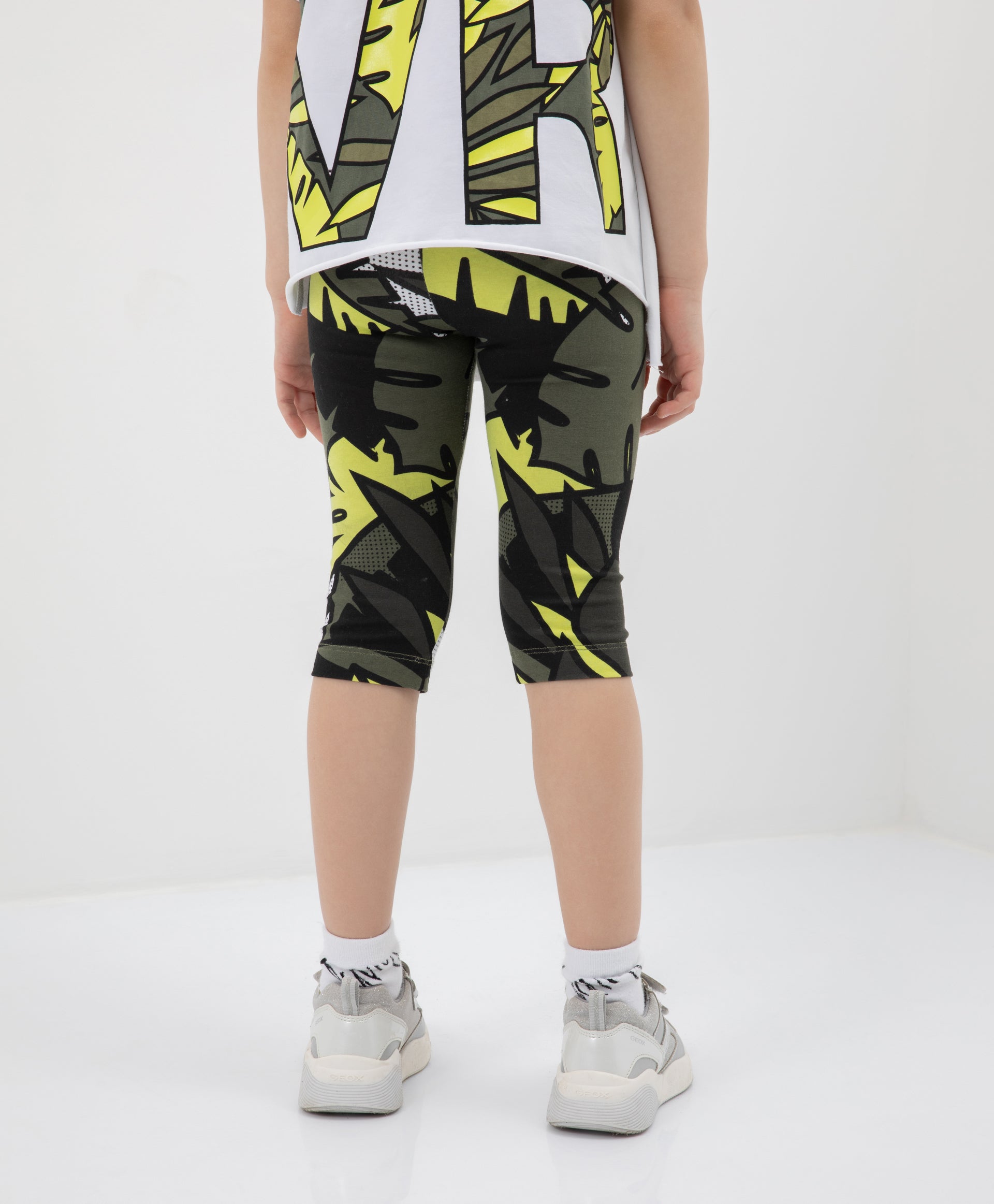 Скъсени клинове с ярък динамичен принт – базов елемент от летния гардероб на момичето. Изключително удобни и неограничаващи движенията, те отлично допълват удължени тениски, блузи или туники, създавайки ярък и комфортен комплект.