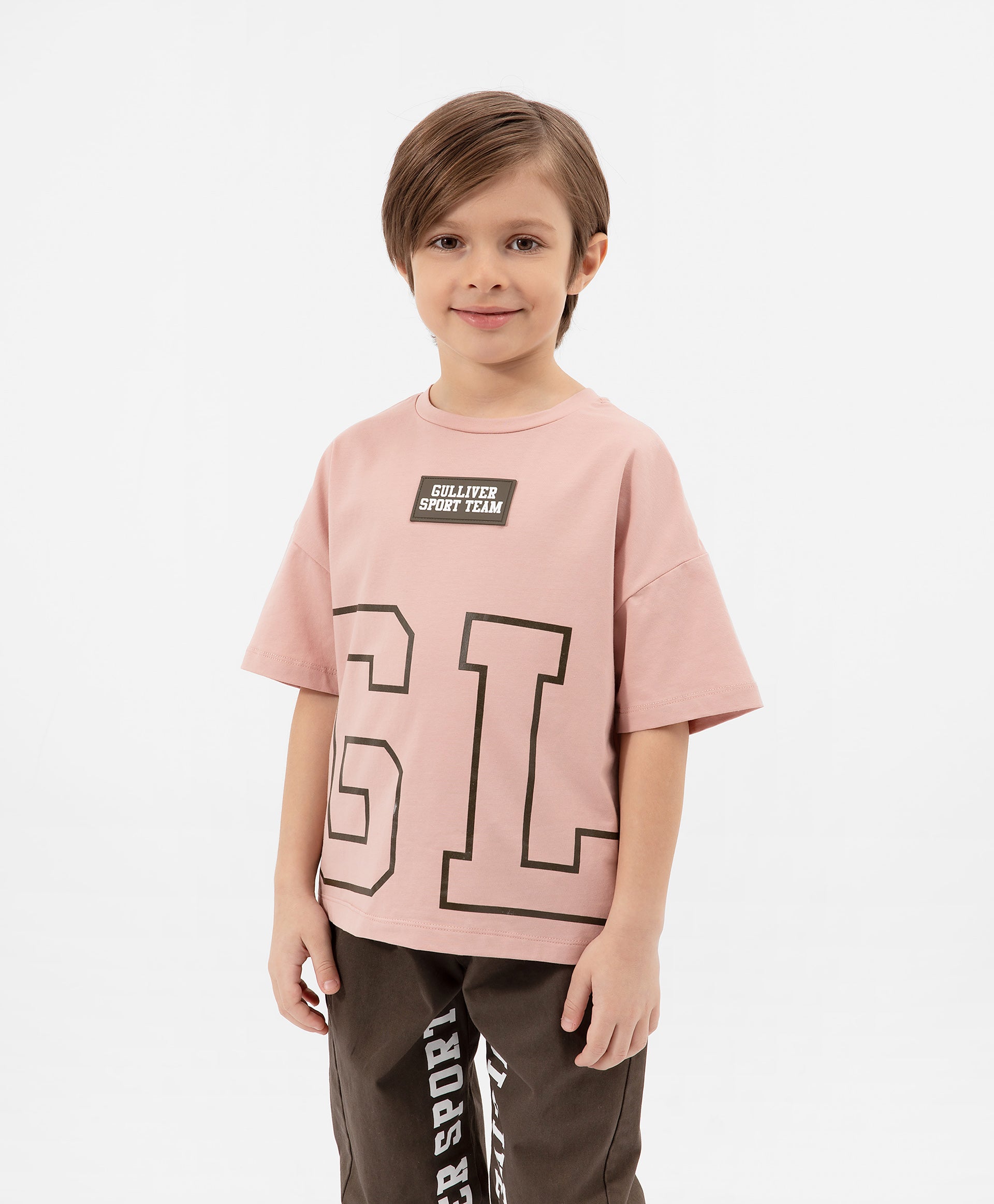 Тениска с удължен гръб и шрифтов принт Gulliver
