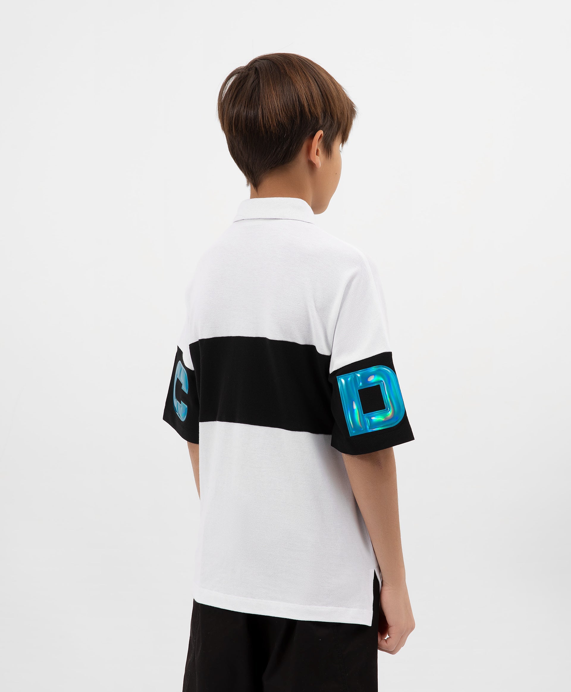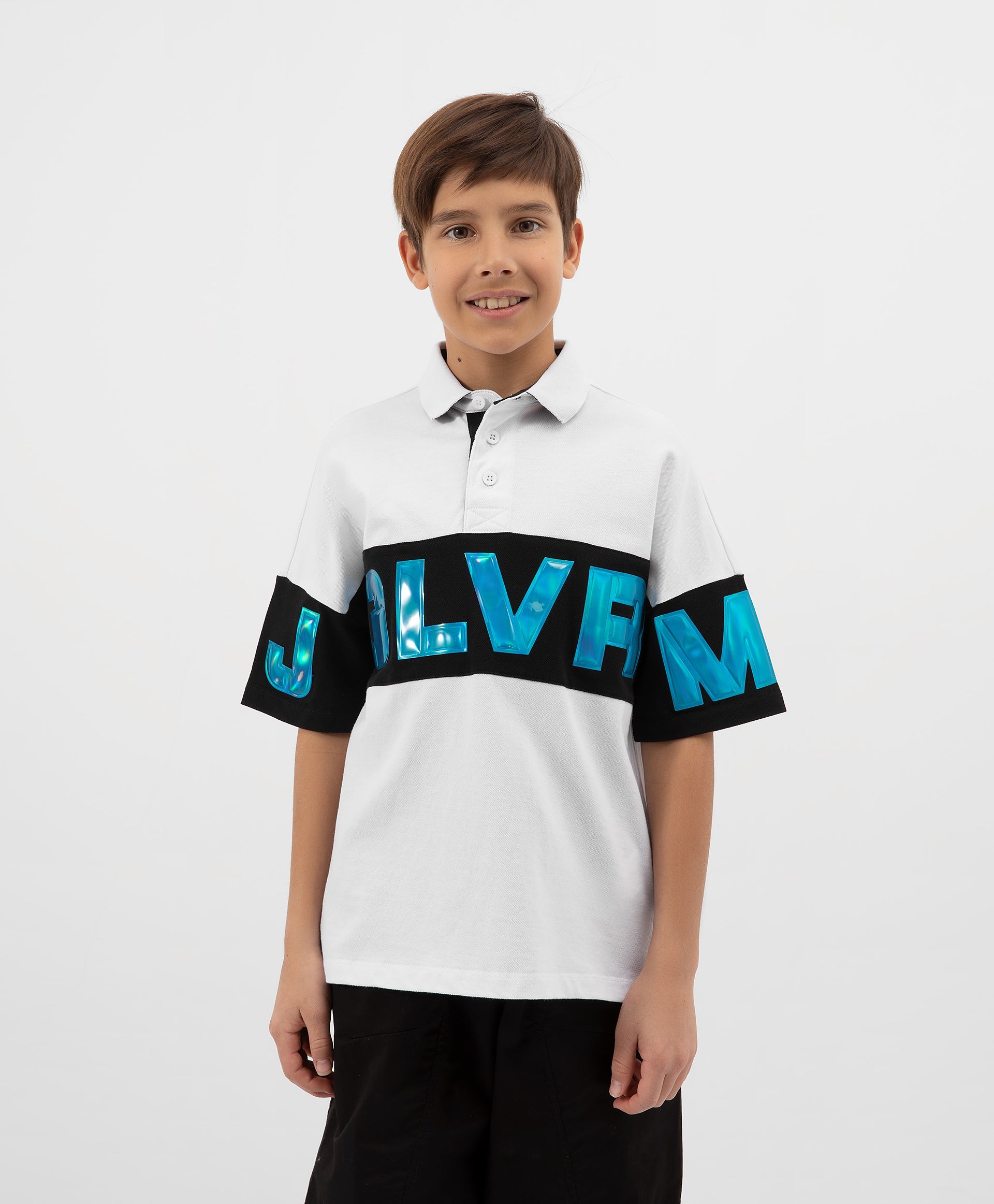 Бяло поло от пике ще внесе във визията на тийнейджъра свежест и драйв в спортен стил. Благодарение на колор-блокинга и големите обемни букви на гърба и ръкавите, изпълнени от мека преливаща пластмаса, полото изглежда ярко, остро и свежо. В отделката на модела е използвано брандирано флагче и контрастна лента на вътрешната платка. Без съмнение, полото ще бъде оценено от стилния креативен тийнейджър, чувстващ трендовете и настроението на времето.