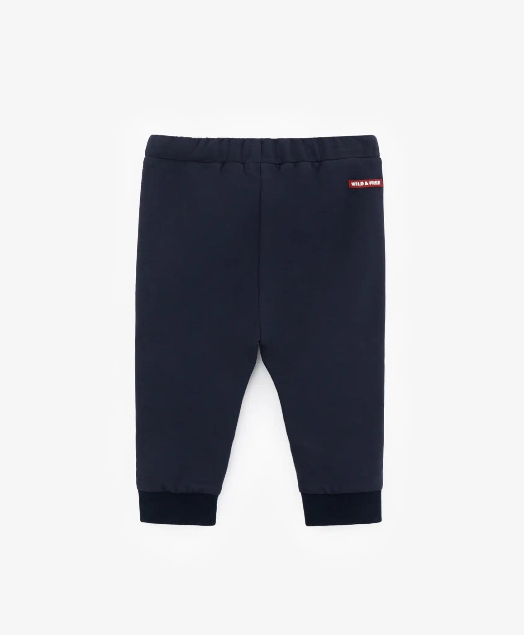 Joggerii tricot din material footer sunt soluția perfectă pentru plimbări și relaxare. Moi, confortabili și practici, acești pantaloni completează perfect orice tricou, hanorac sau jachetă, adăugând dinamism stilului sportiv al copilului. Joggerii sunt întăriți în zona genunchilor, ceea ce este esențial pentru un băiețel care își face primii pași.