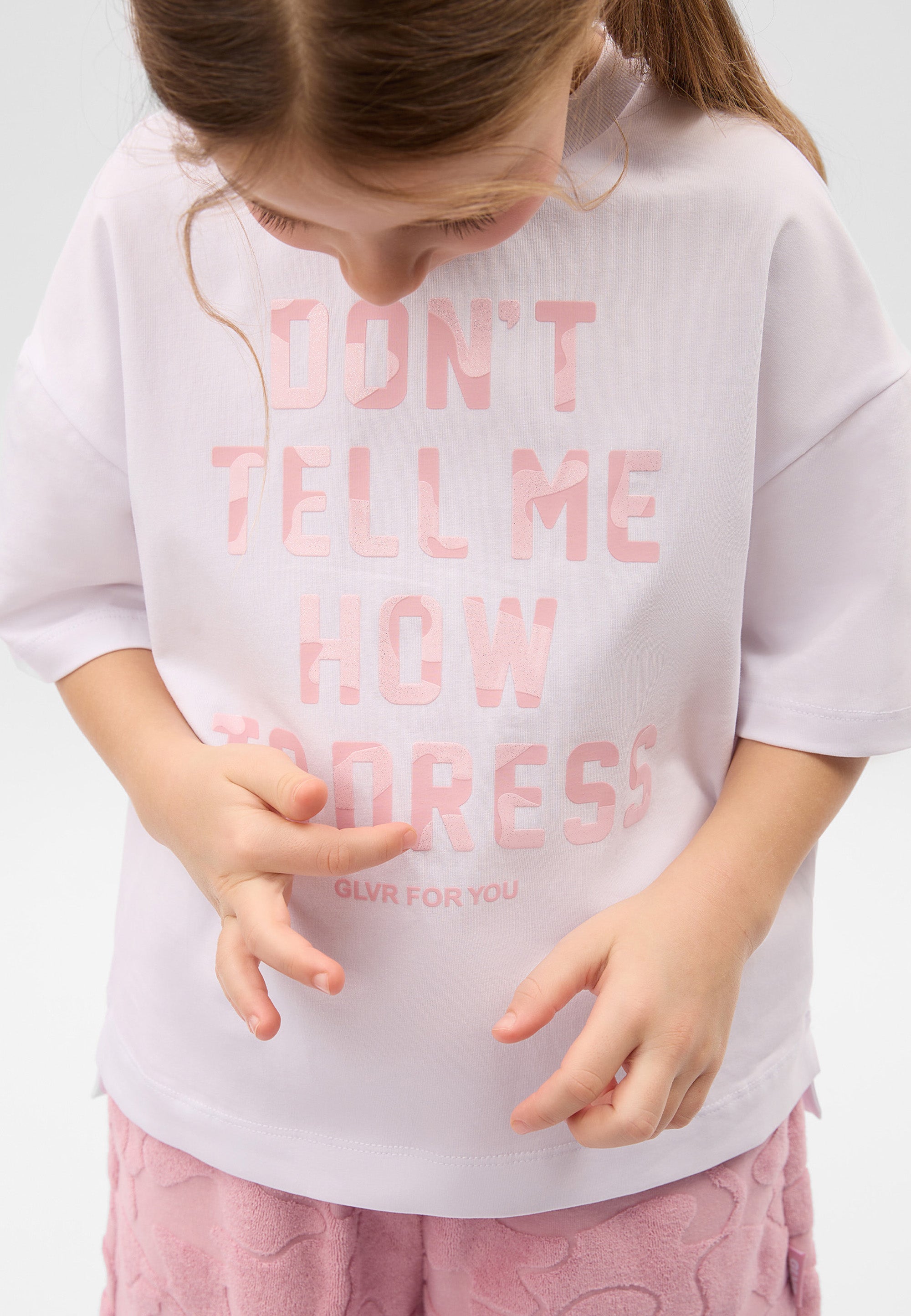 Бяла свободна тениска с шрифтов декор – основа на летния гардероб! Тя прекрасно ще се впише във всяко стилистично решение, придавайки му свежест, динамика и позитивизъм. Тениската с паднала линия на раменете и удължен гръб е изработена от гладко памучно трико. Материалът е мек, пластичен, прекрасно държи форма и е лесен за поддръжка. В оформлението са използвани гланцирани шрифтови елементи.