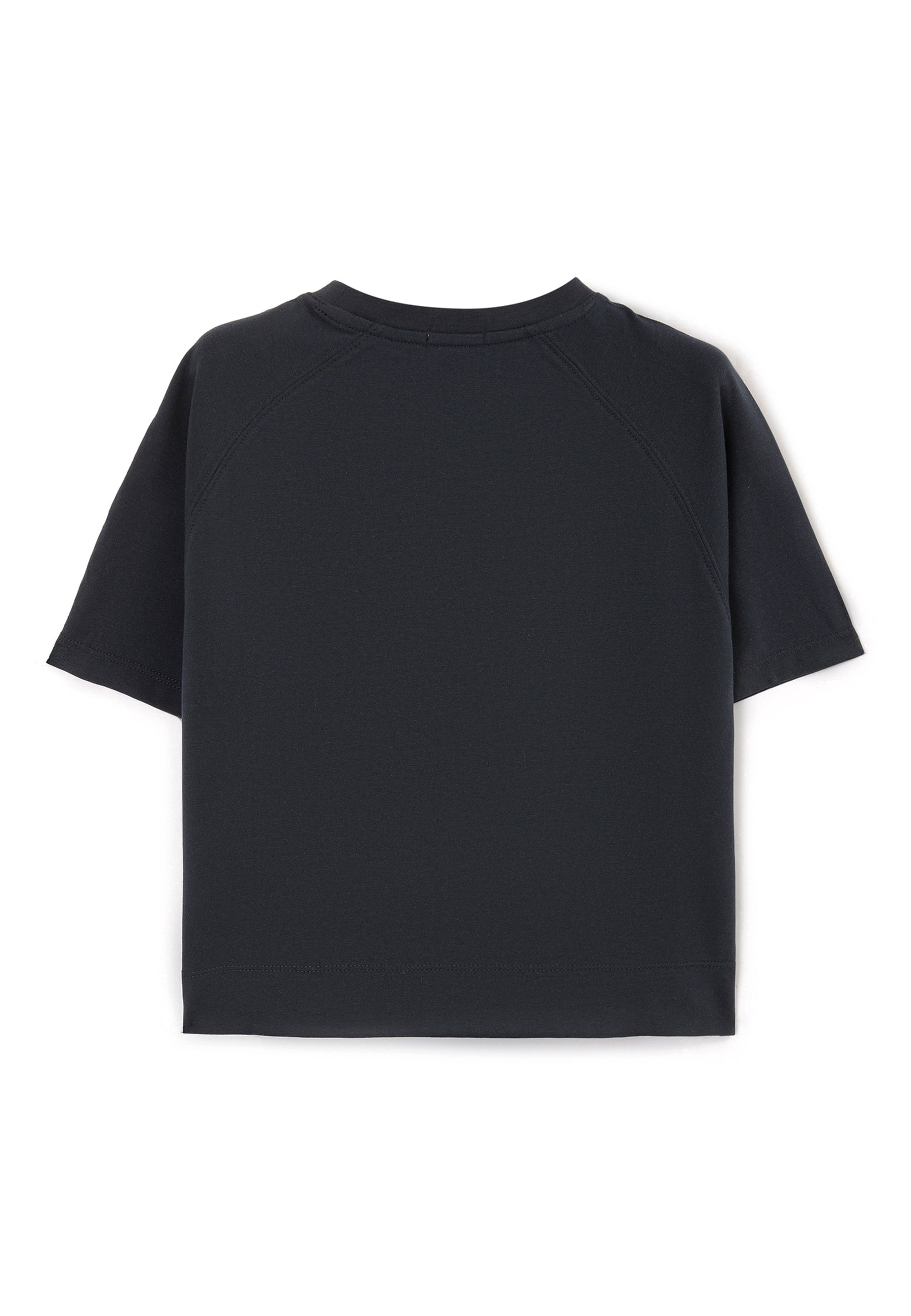 Синя тениска с 3D бродерия – прекрасен ежедневен вариант. Ръкавите тип реглан осигуряват свобода на движенията, а заниженият гръб придава неформален вид. Изработена е от пластично и меко памучно трико, много приятно при допир.