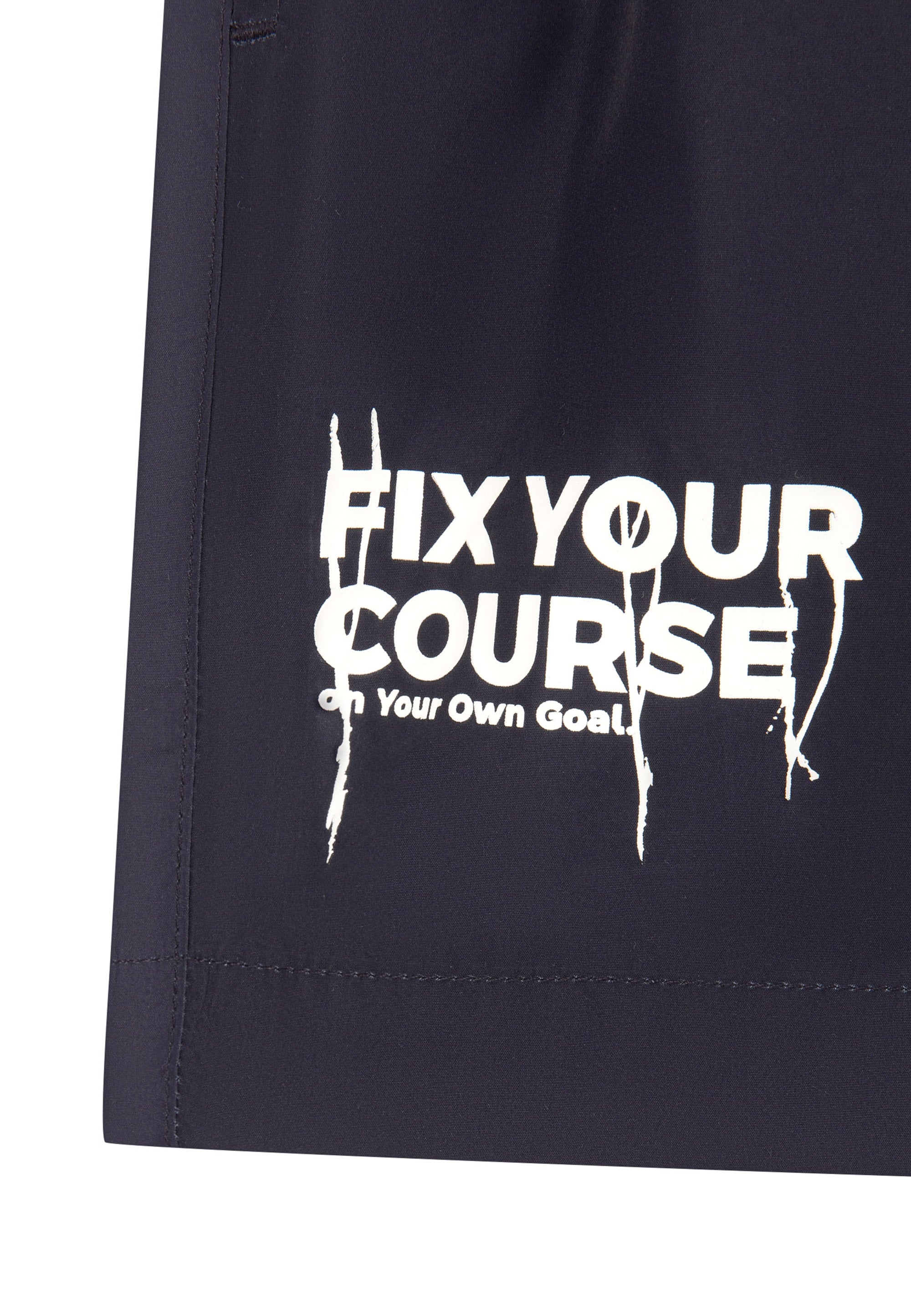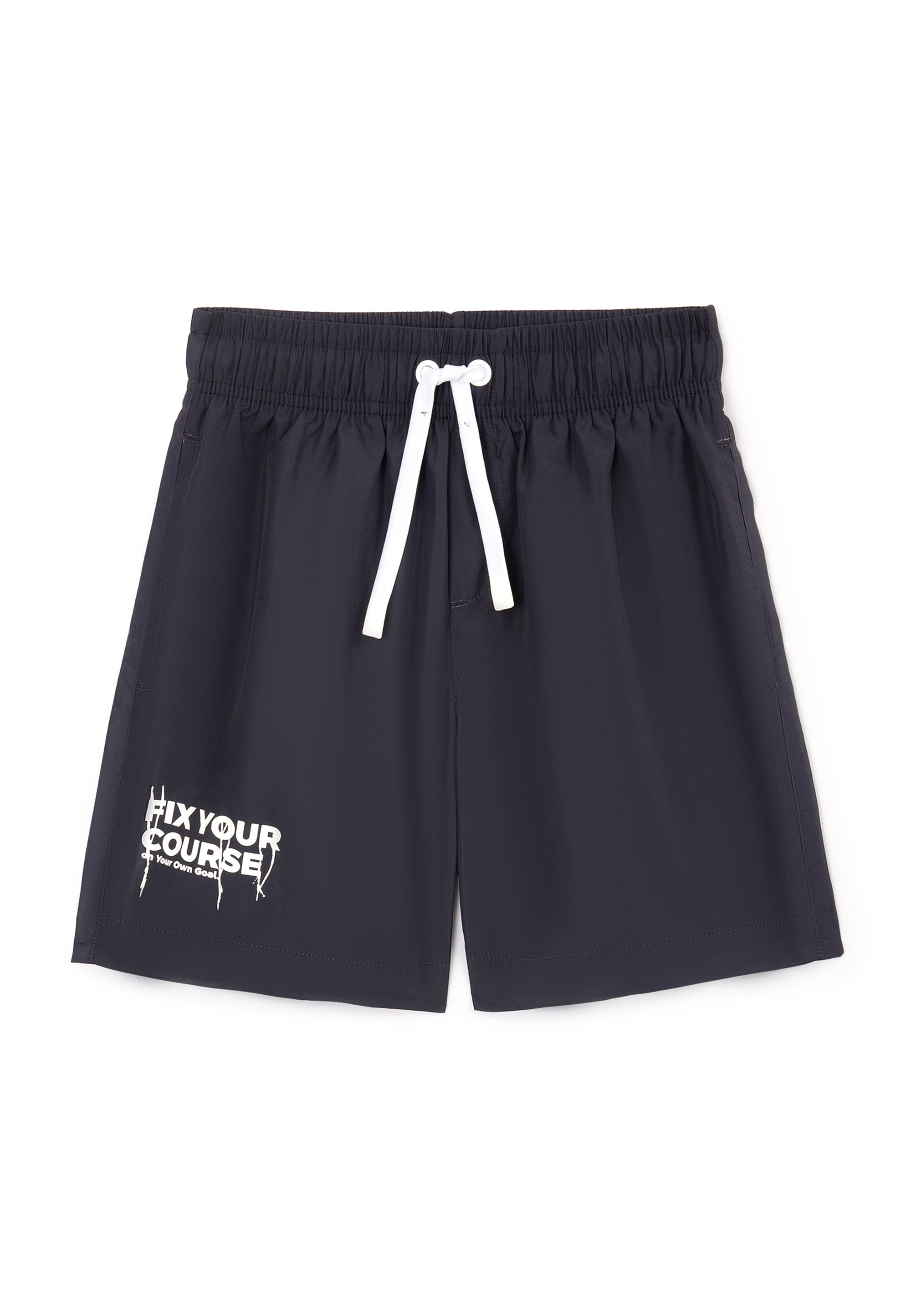 Динамични и ярки плувни шорти — отличен повод да помислите за почивка край водата. Шортите са изработени от тънка специална материя, която съхне бързо, не ограничава движенията и не избледнява. Ластичният колан с регулируема връзка гарантира удобно прилягане на изделието към фигурата. В оформлението на модела е използван контрастен принт с шрифт.