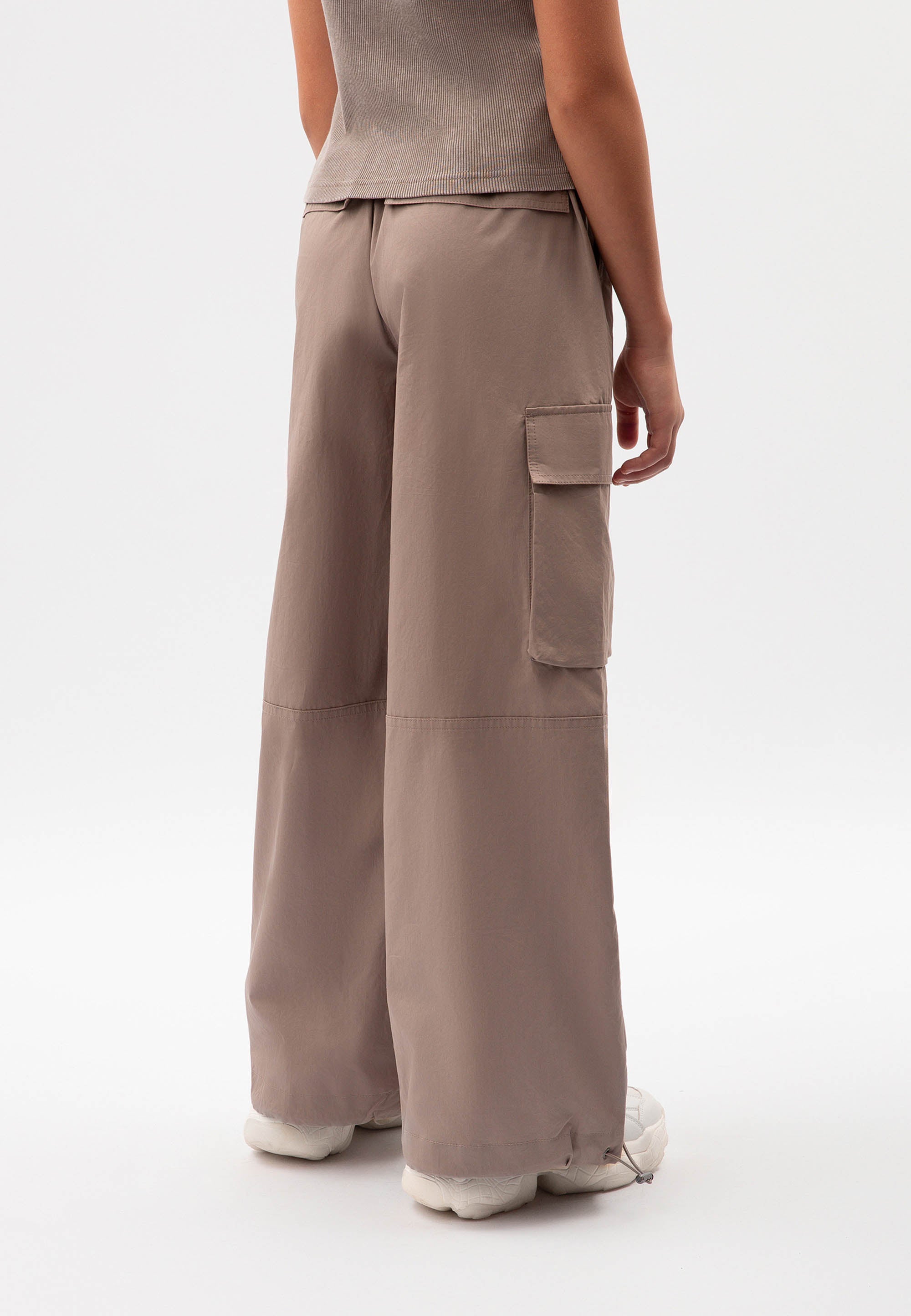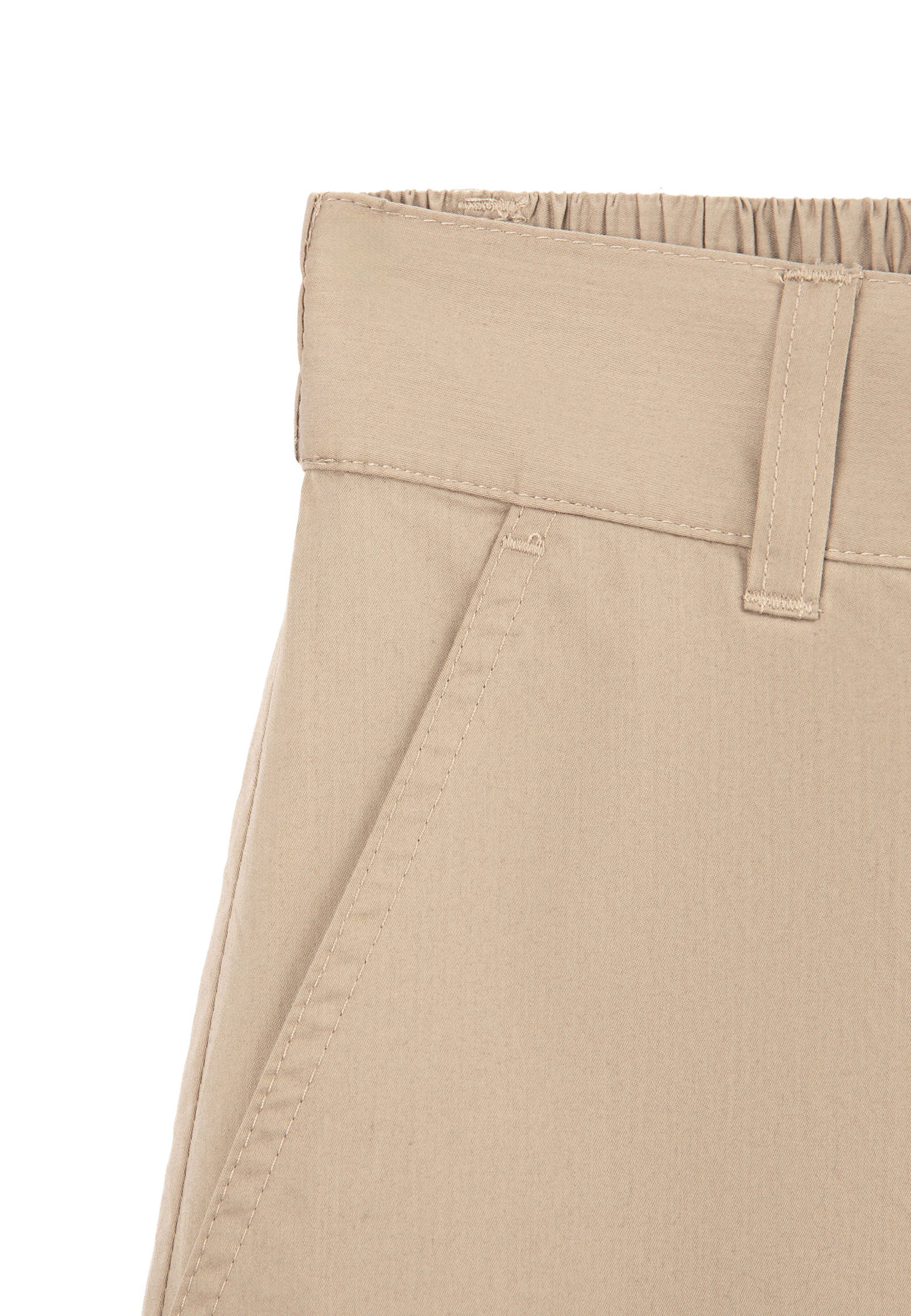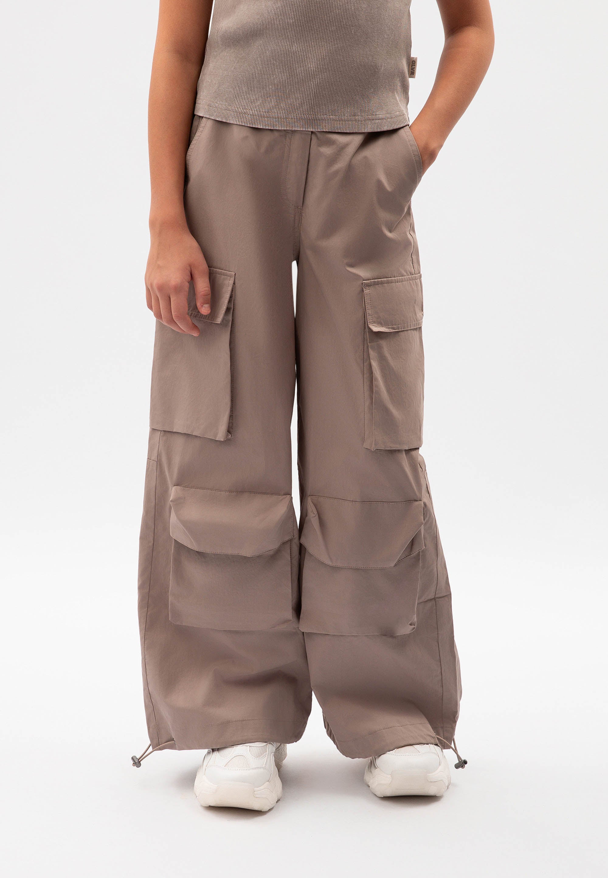 Текстилните панталони с карго джобове са отражение на комфорта, свободата и непринудеността на стрийтстайла! Изработени от гладък памучен сатен, те отлично държат форма, приятни са при допир и са лесни за поддръжка. Четирите обемни джоба, както и удобните скосени джобове в предната част, правят панталоните модерни и функционални — любими на напредналата младеж, почитателките на активния начин на живот и ценителите на свободата на себеизразяване. Особеност на модела е възможността да се регулира формата на крачолите благодарение на връзките в долната част. Чрез затягане на ластиците със стопери, панталоните могат да придобият форма на джогъри, което е много актуално в дъждовен ден, или чрез разхлабването им, да станат свободни с леко разширение надолу. Във всеки случай те ще изглеждат стилно и модерно, придавайки на визията динамика и острота. Панталоните се закопчават с цип и копче.