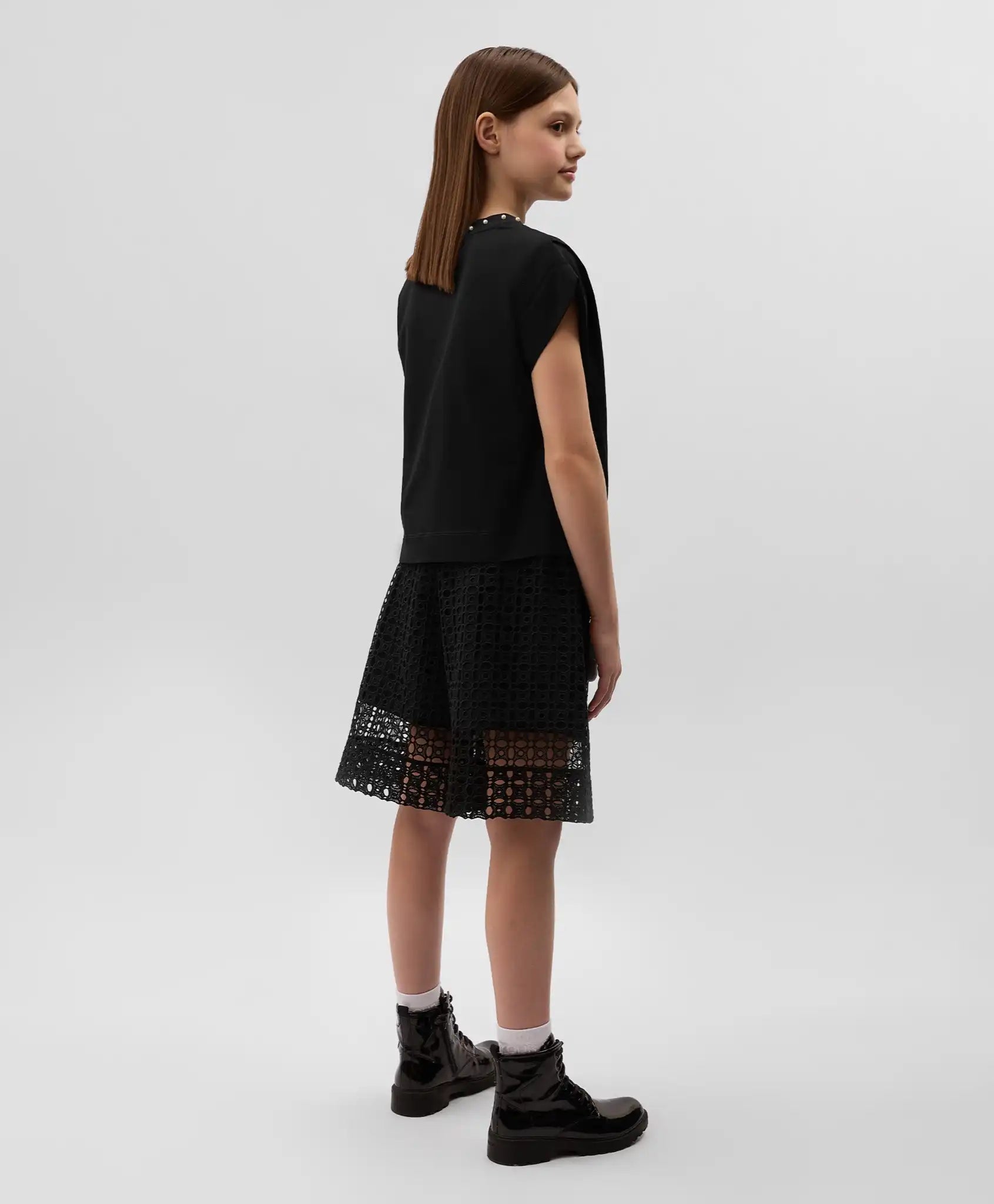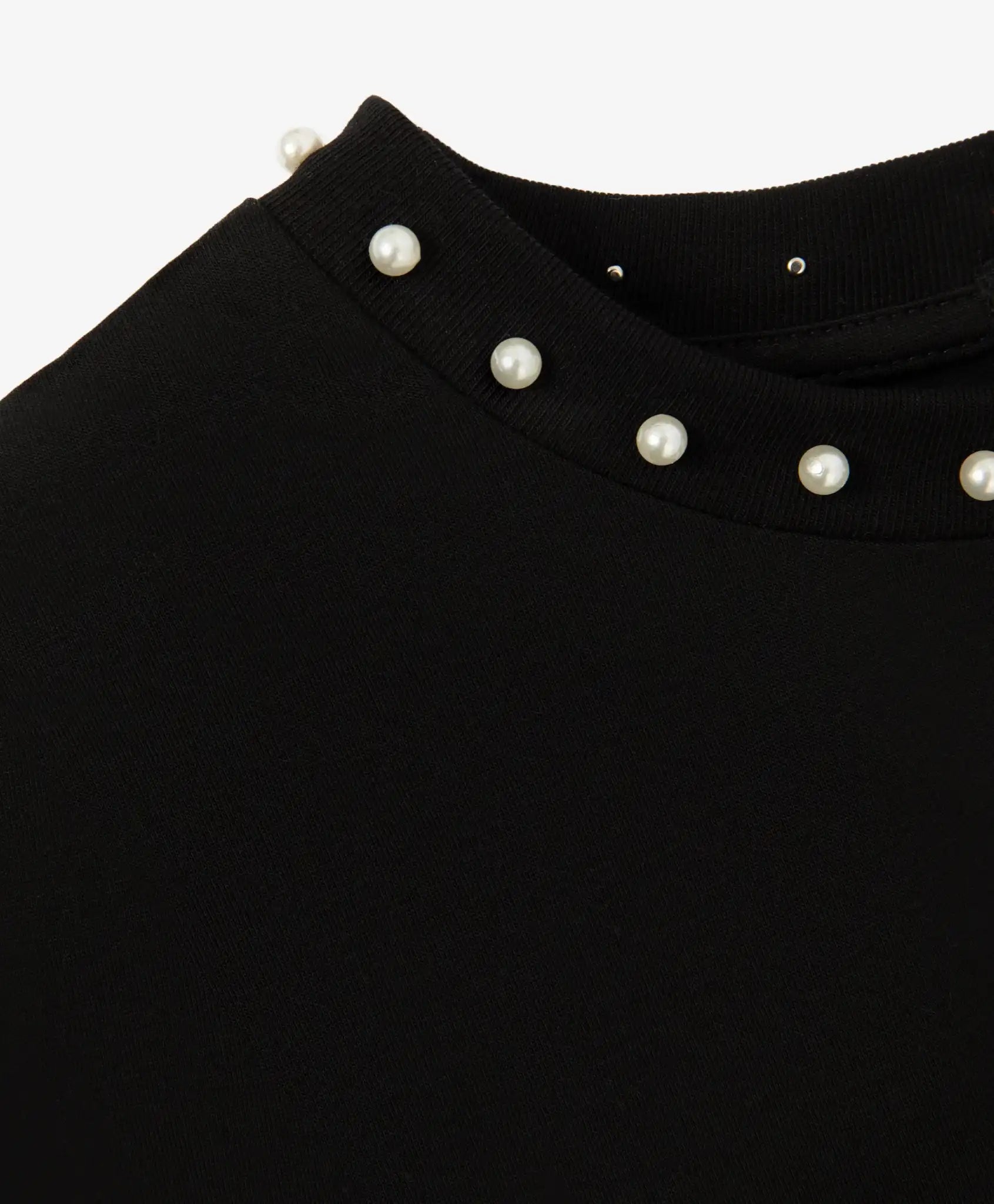 Tricou cu mânecă lungă din interlock mercerizat cu mărgele perlate, negru, Gulliver