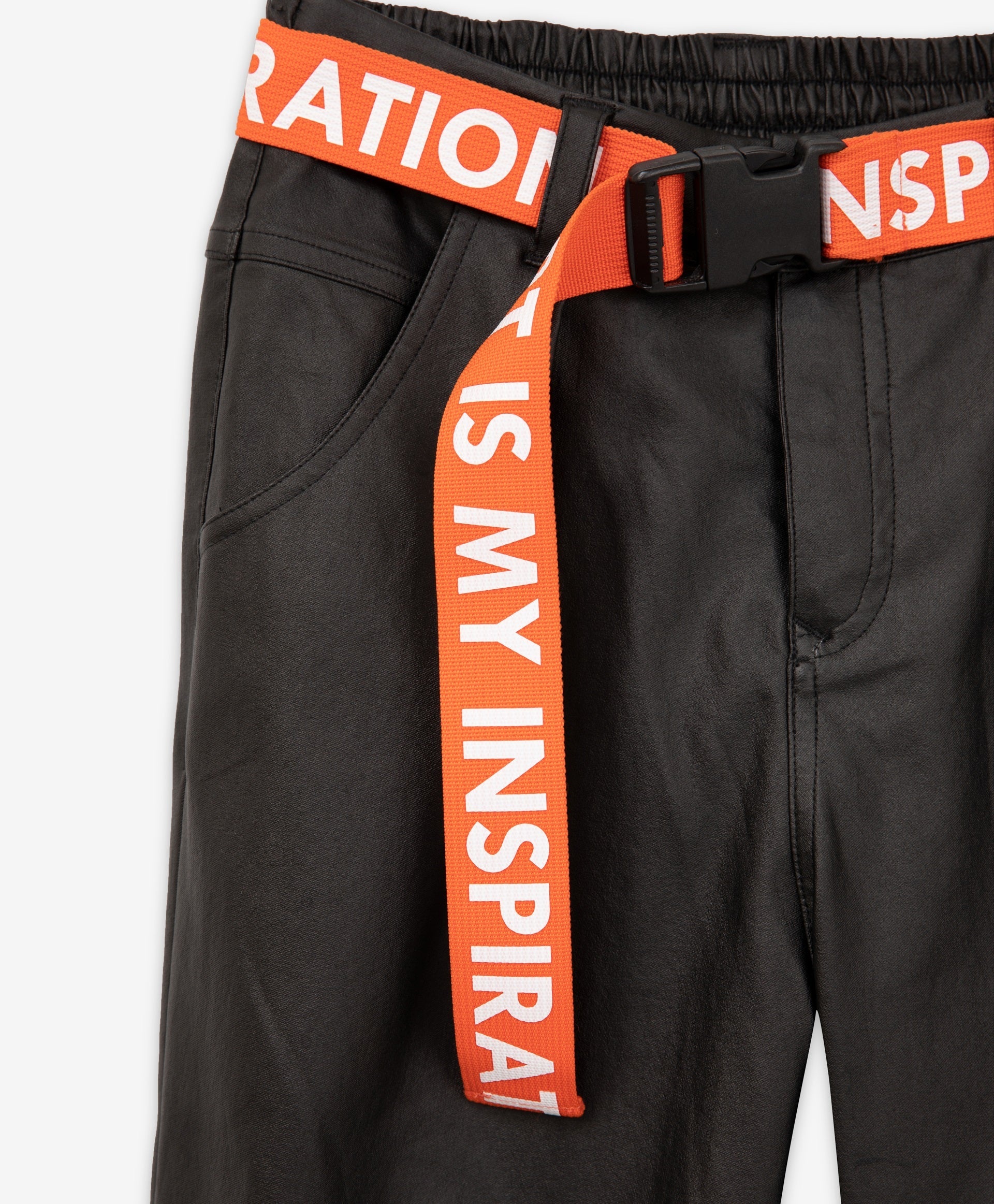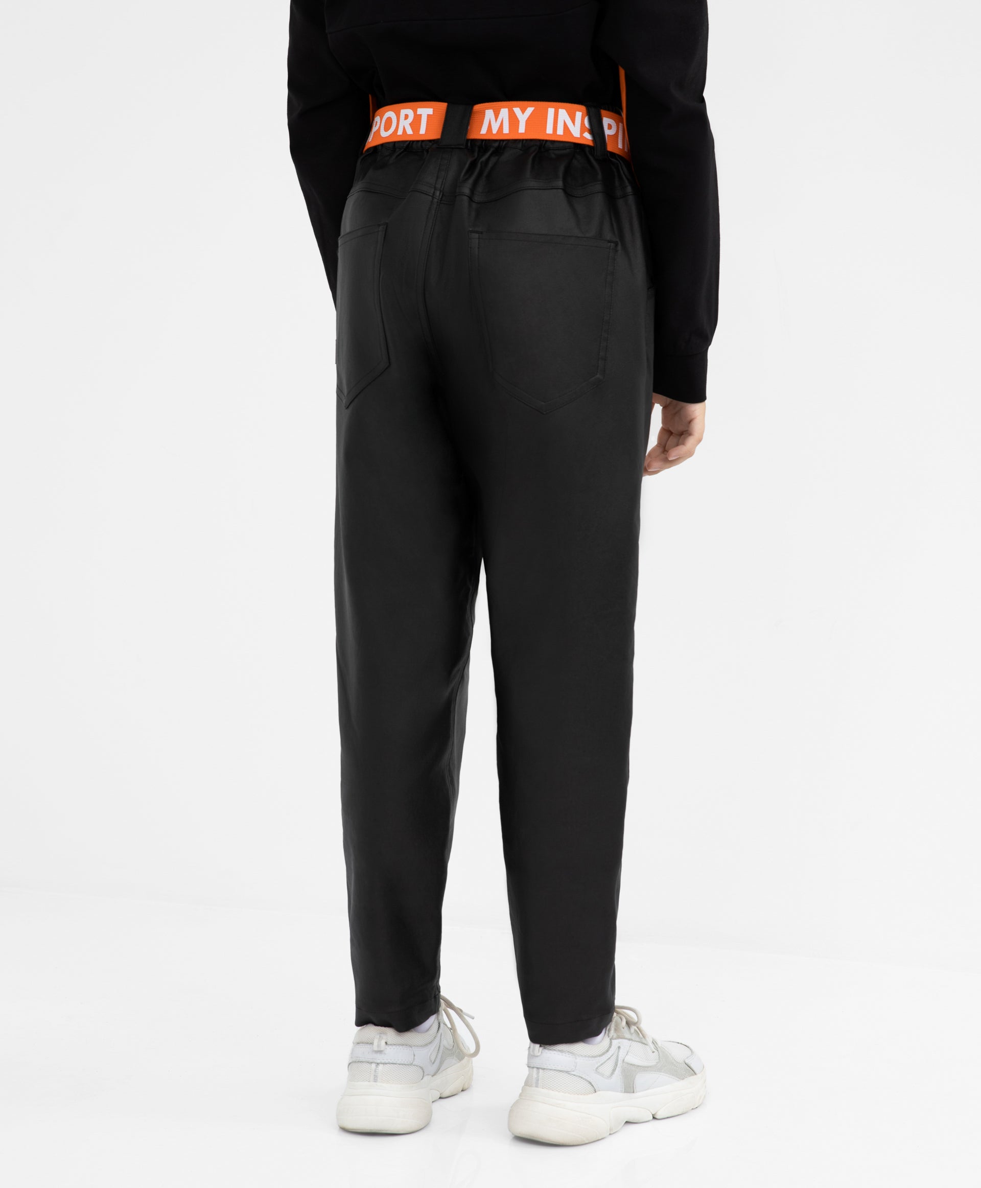 Черните скъсени Дънки тип „Баги“ ще бъдат достоен компаньон на модерно яке, палто или суитшърт. Особеност на модела е гумираното покритие (накат) отгоре, което придава на денима модерна текстура с лек матов блясък, без да лишава изделието от мекота и комфорт.