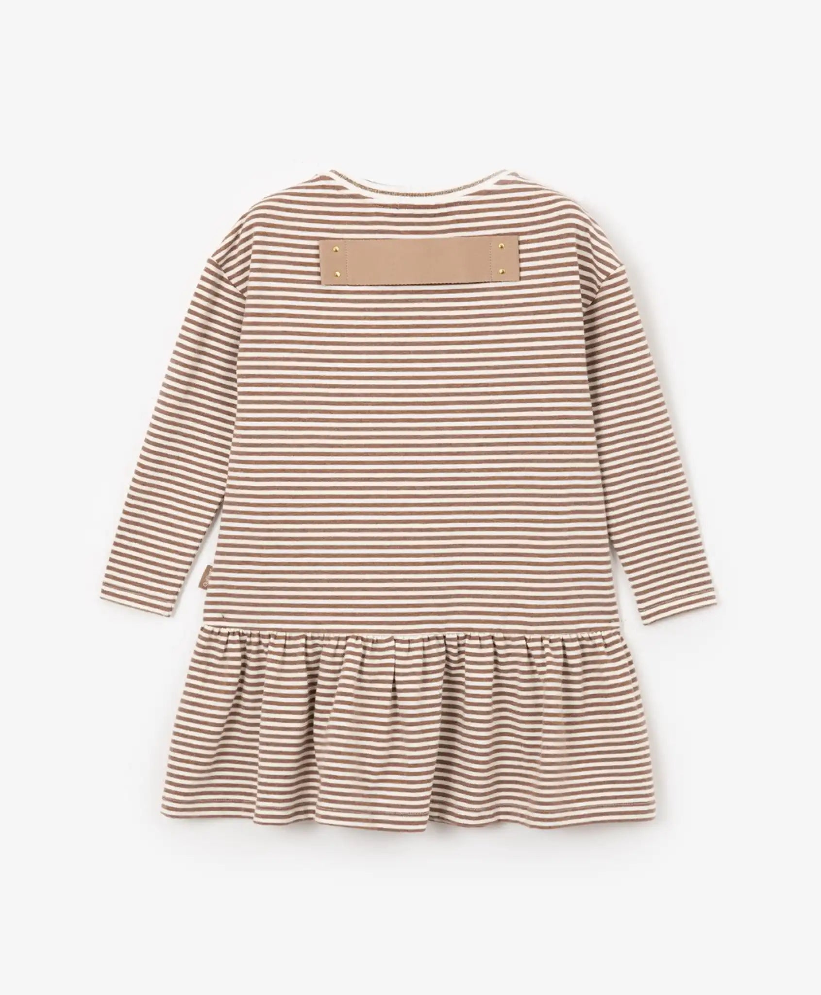 Rochia tricotată cu mânecă lungă este un articol vestimentar de tip „must-have”. Confecționată dintr-un material tricotat în dungi, cu inserții fine de lurex, această rochie atrage prin simplitatea sa elegantă, caracterul ecologic și rafinamentul imaginii pe care o creează. În designul rochiei sunt utilizate imprimeuri și benzi decorative.