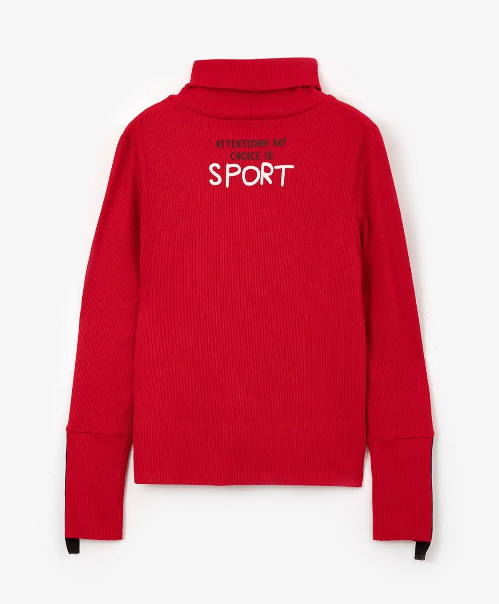 Elementară ca formă, dar interesantă prin design, bluza polo este realizată din tricot moale cu carouri mici. Detaliile accentuate – manșetele înalte cu dantelă contrastantă, decorul tipografic și imprimeul de pe spate – fac din acest model un exemplu de bază stilată cu personalitate.