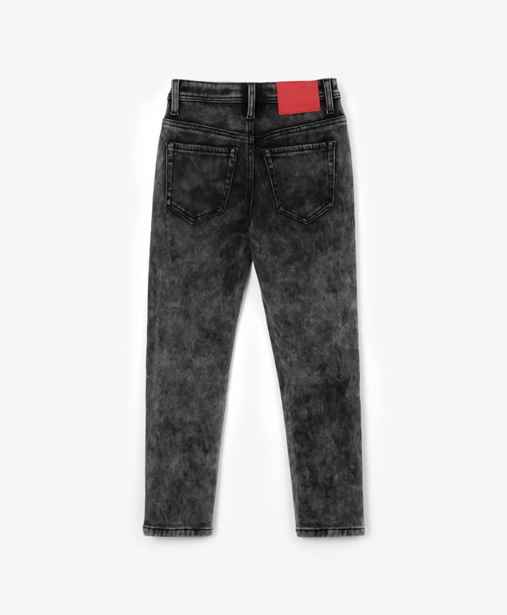 Blugii din fleece sunt esențiali pentru garderoba funcțională a unei fete. Confecționați din denim gri cu efect de spălare marmorată, acești blugi sunt comozi, practici și funcționali. Datorită elastanului din compoziția materialului, blugii fleece cu siluetă slim sunt confortabili și ușor de purtat. Designul modelului include un petic din piele în nuanță intensă, aplicat pe talie.