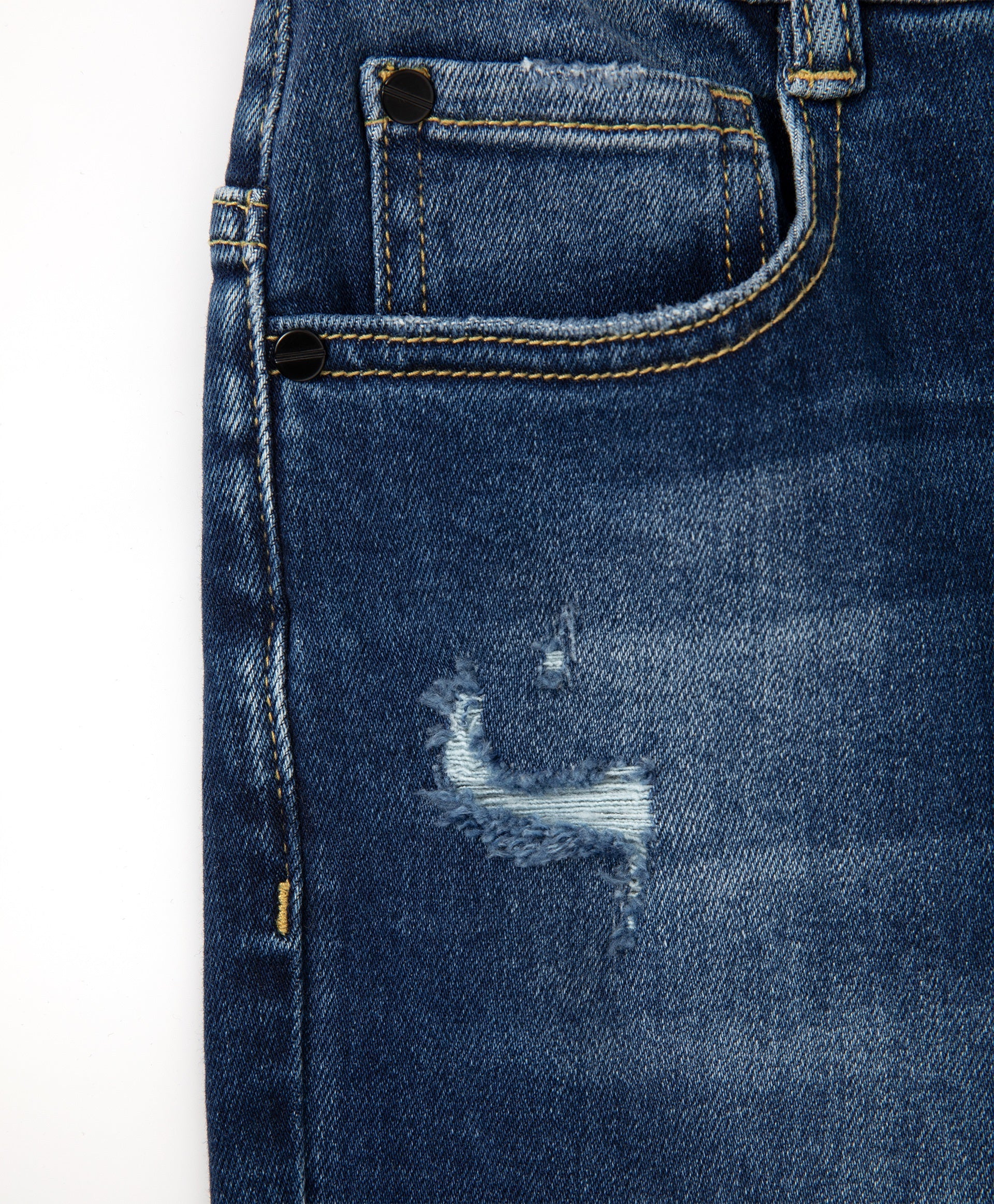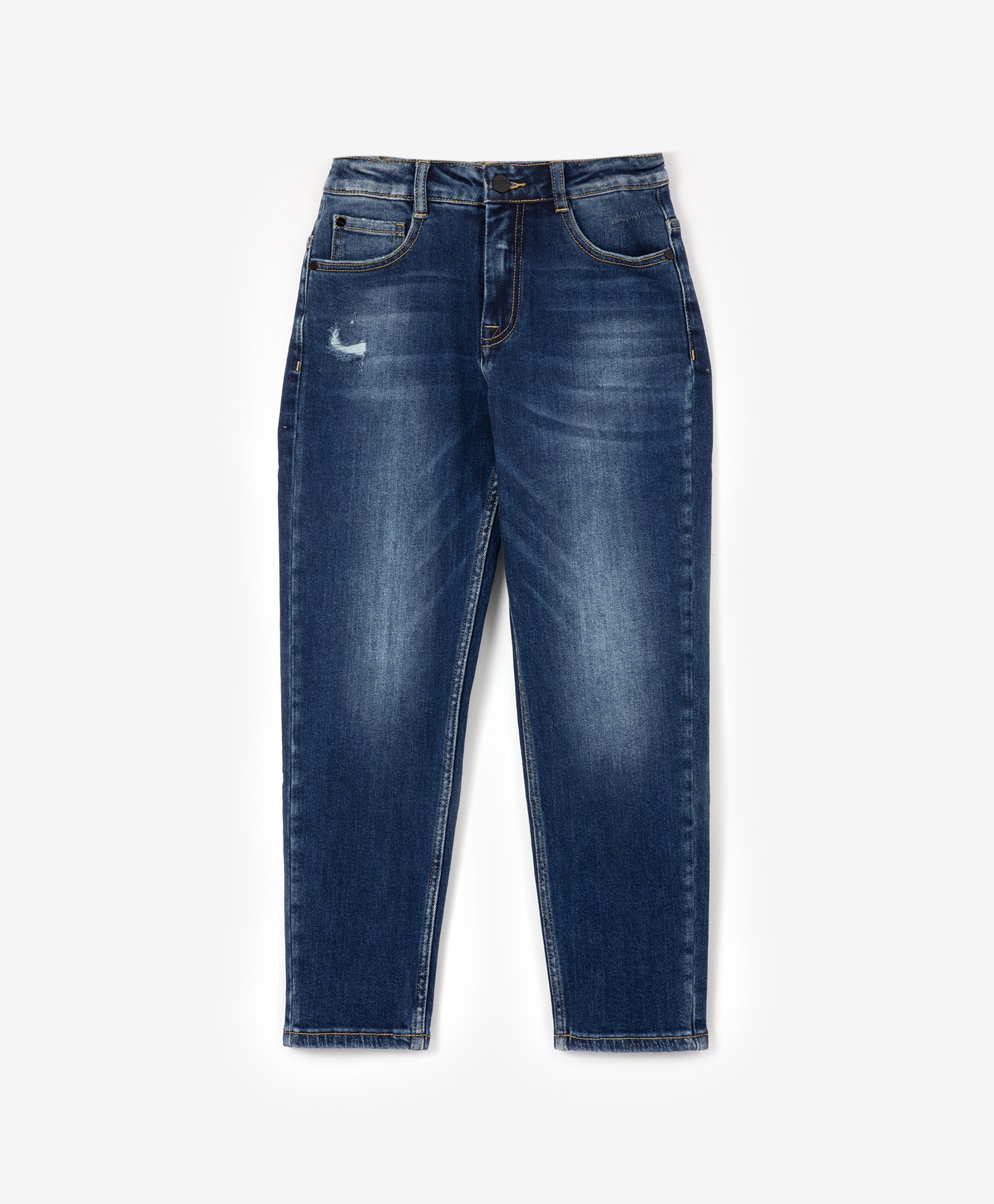 Стилни сини дънки с „wash“ ефект, протрити зони и накъсвания – основата на есенния гардероб на момчето! С всеки суитшърт, яке или парка дънките ще съставят превъзходен комплект за свободното време. Всички накъсвания са затворени отвътре със специални кръпки, които предпазват от вятър.