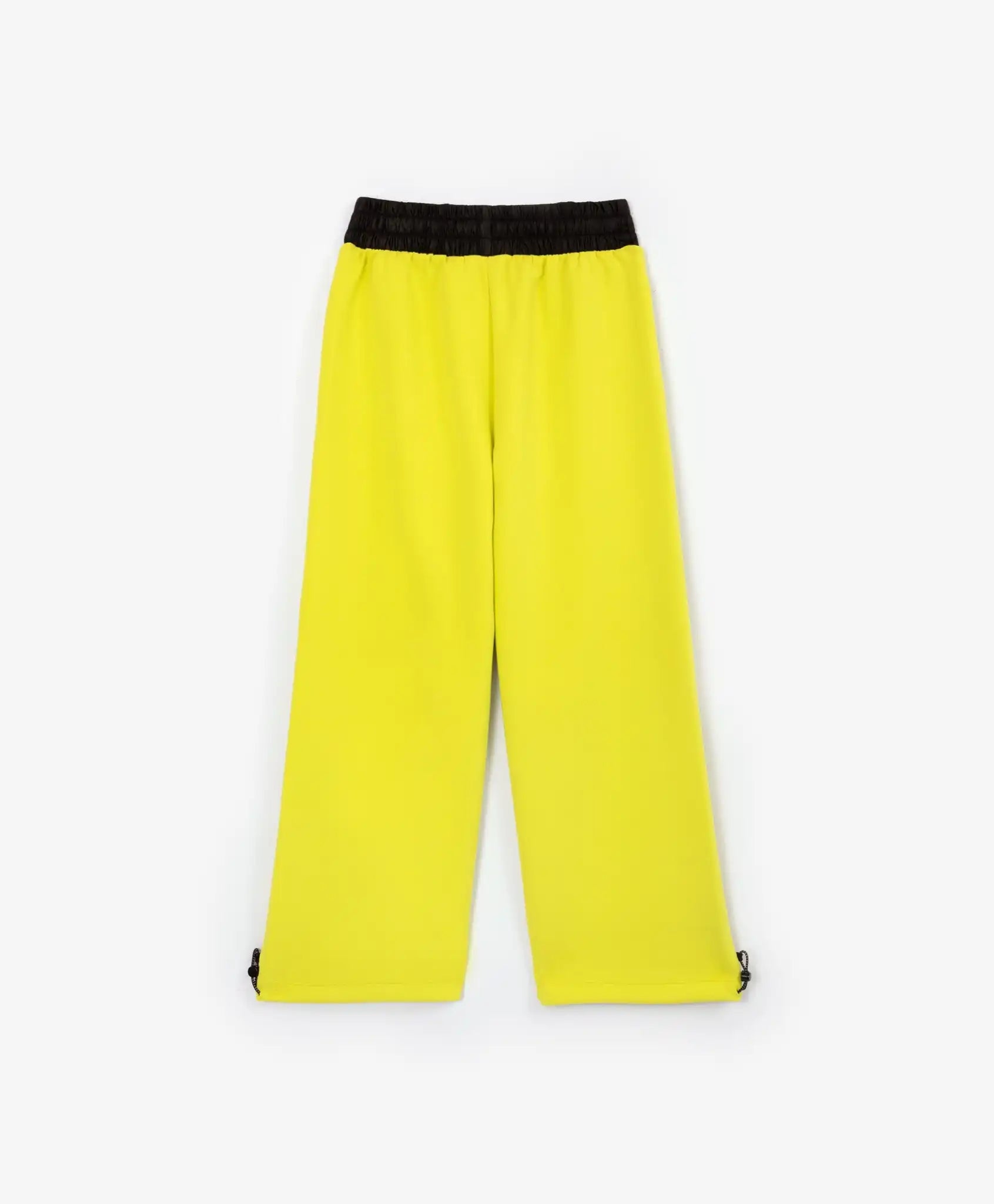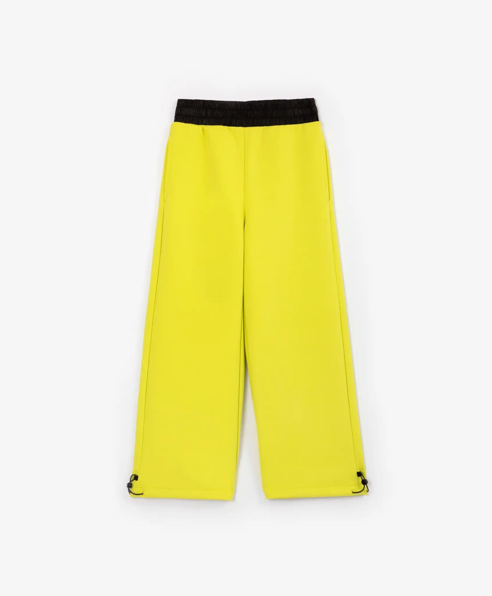 Pantalonii din fleece cu talie elastică vor adăuga un plus de dinamism și stil ținutei unei fete! Interiorul călduros periat permite purtarea acestora chiar și în zilele friguroase. Forma modernă, croiala reușită, elastanul din compoziția materialului tricotat și buzunarele laterale confortabile transformă acest model într-un simbol al confortului, libertății și funcționalității.