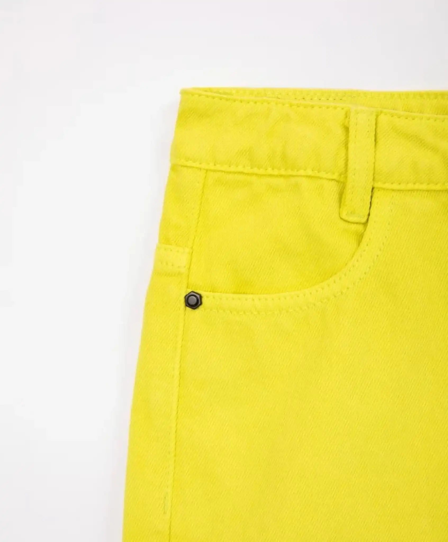 Blugii cu siluetă mom-fit ar putea fi considerați un model clasic, dacă nu ar fi culoarea lor vibrantă și explozivă, care adaugă un plus de dinamism. Nuanța lime strălucitoare sparge toate stereotipurile despre ce ar trebui purtat toamna și iarna. În blugii Gulliver, poți fi tu însuți, aducând bucurie ție și celor din jur printr-o alegere fresh și originală.