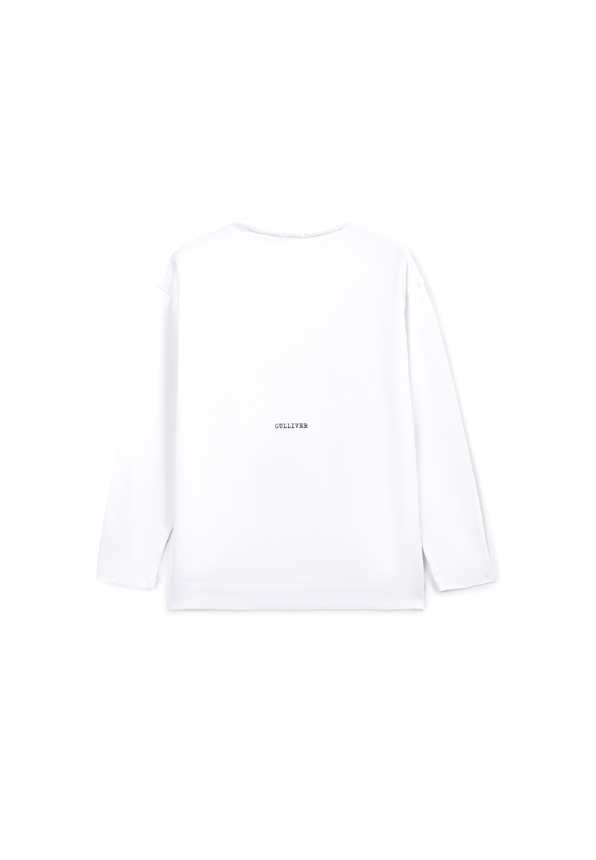 Бяла блуза с дълъг ръкав, умерено свободна кройка и многозначителен надпис от Gulliver