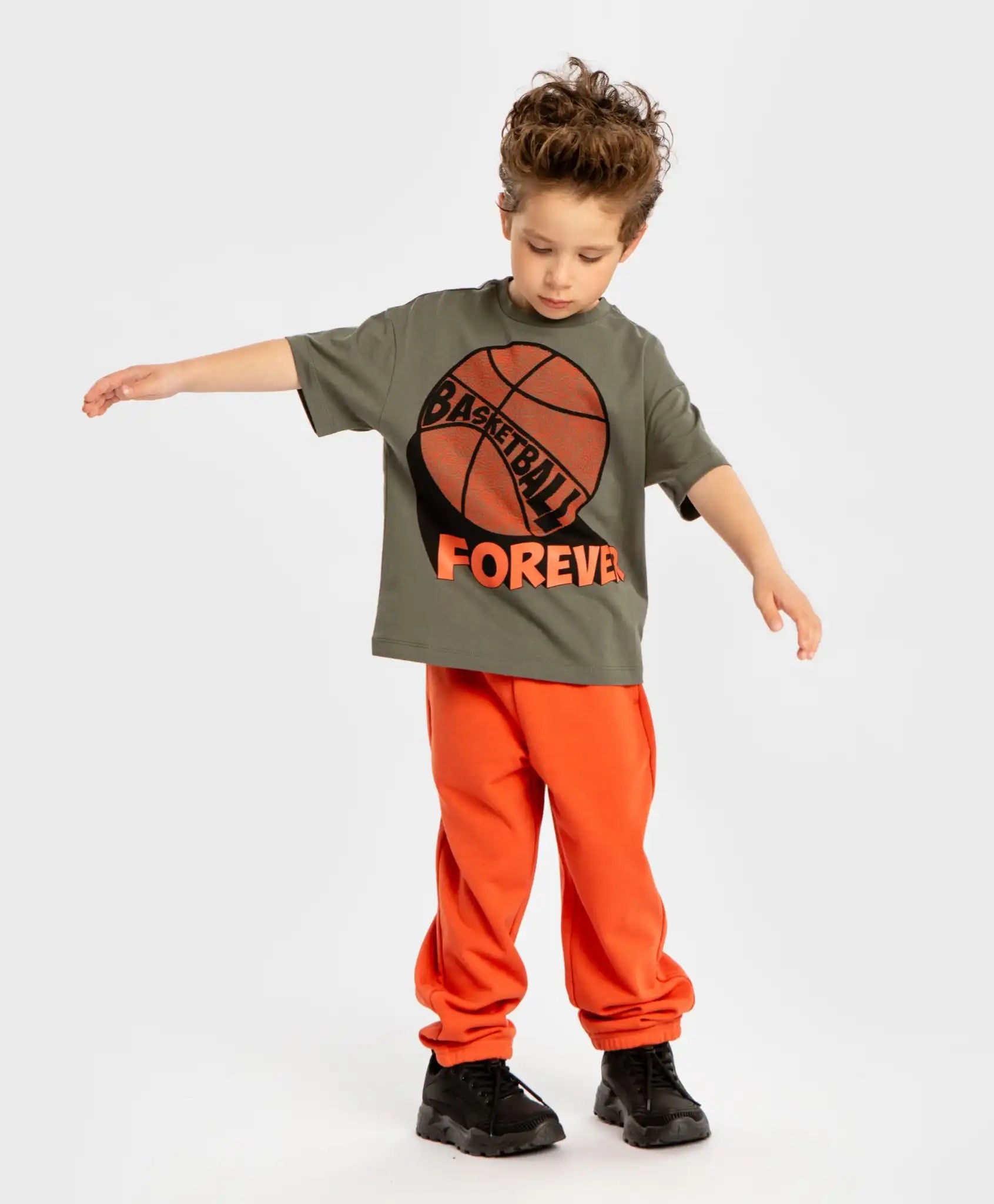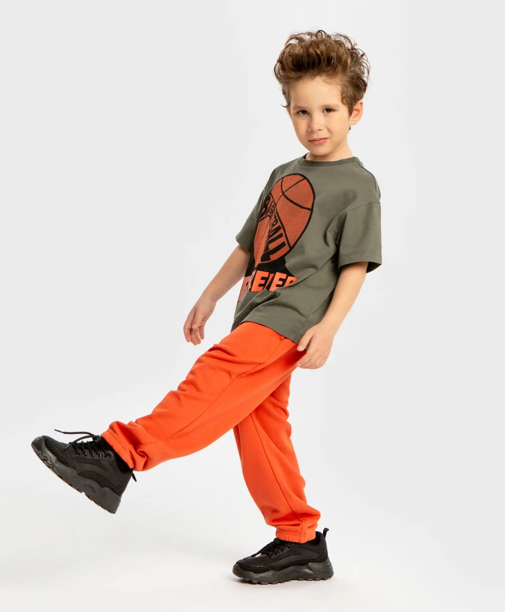 Joggeri cu elastic și buzunare pentru băieți sunt realizați într-o nuanță vibrantă de portocaliu. Sunt confecționați din material cu bucle fine, ceea ce îi face moi, netezi la atingere și ușor de întreținut. Joggerii de la Button Blue se îmbracă și se dau jos ușor datorită taliei elastice cu șnur. Sunt potriviți pentru băieți cu orice tip de siluetă, oferind libertate de mișcare. Elasticul din partea inferioară a pantalonilor îi fixează ferm la nivelul gleznelor. Buzunarele asigură spațiu suficient pentru obiecte mici sau pentru a-și ascunde mâinile de frig. Modelul monocrom și lipsa detaliilor inutile îl fac ușor de combinat cu alte haine. Urmați recomandările de îngrijire indicate pe eticheta cusută.