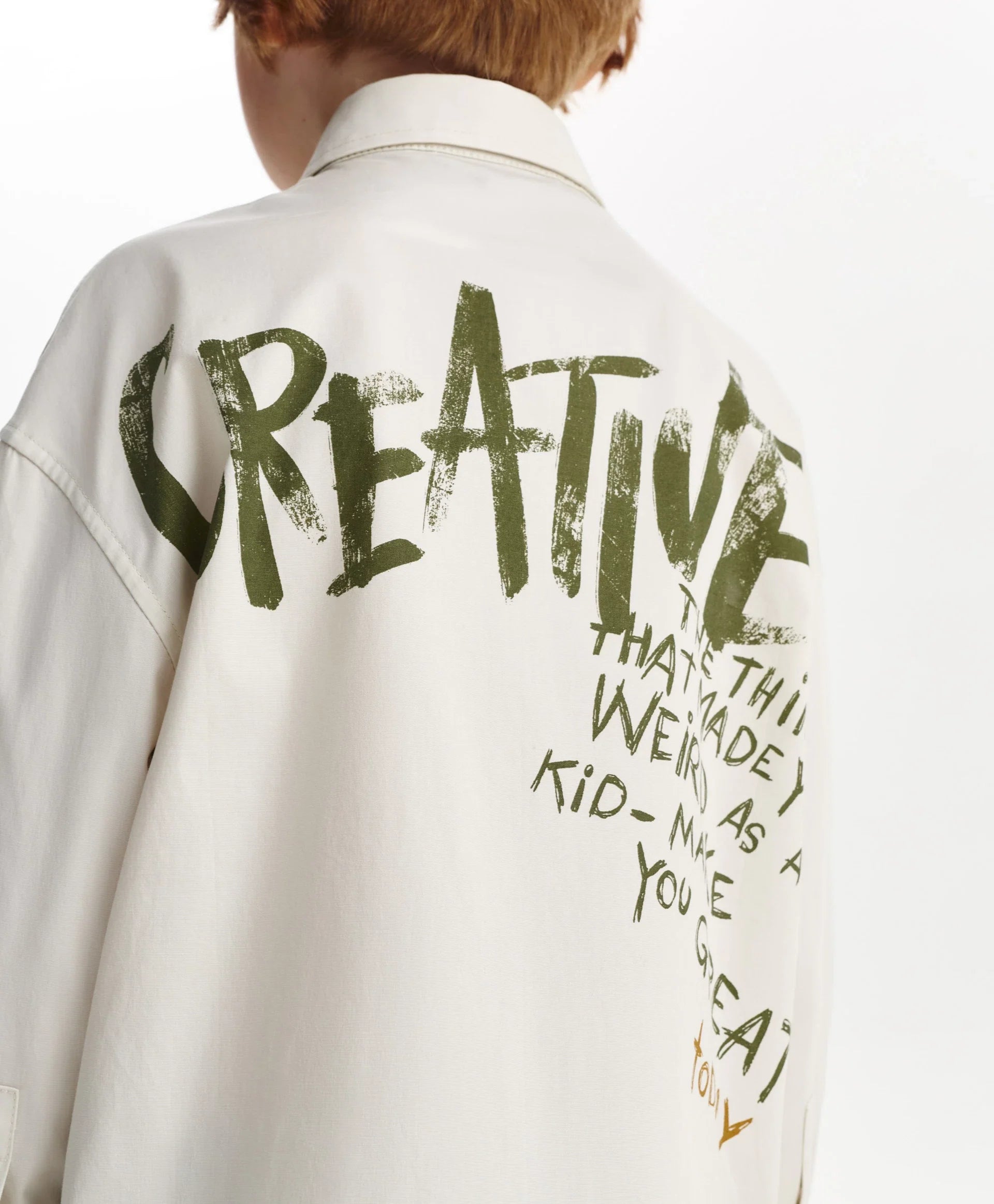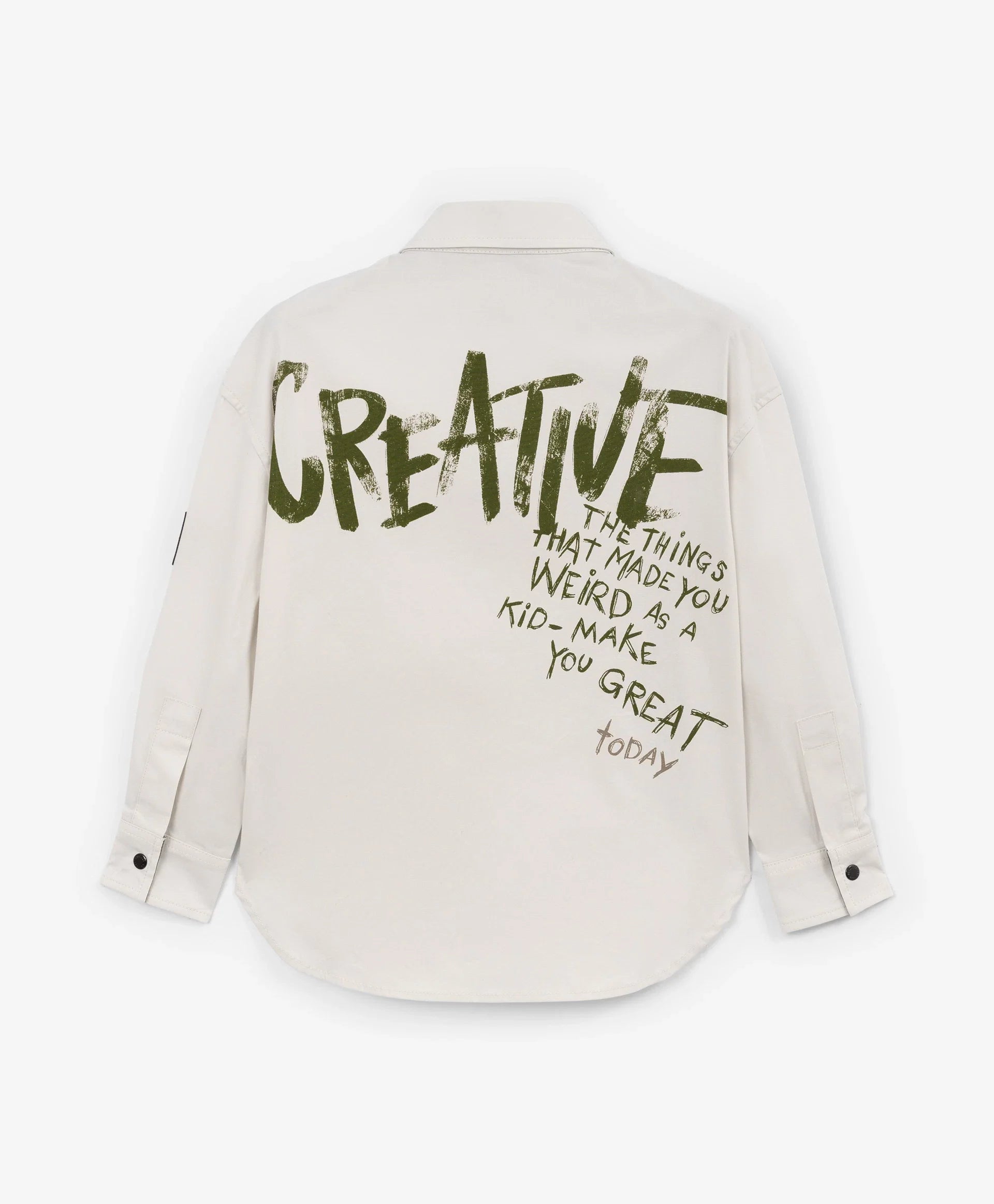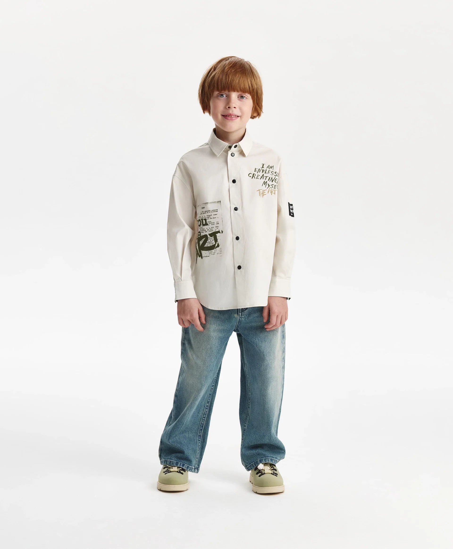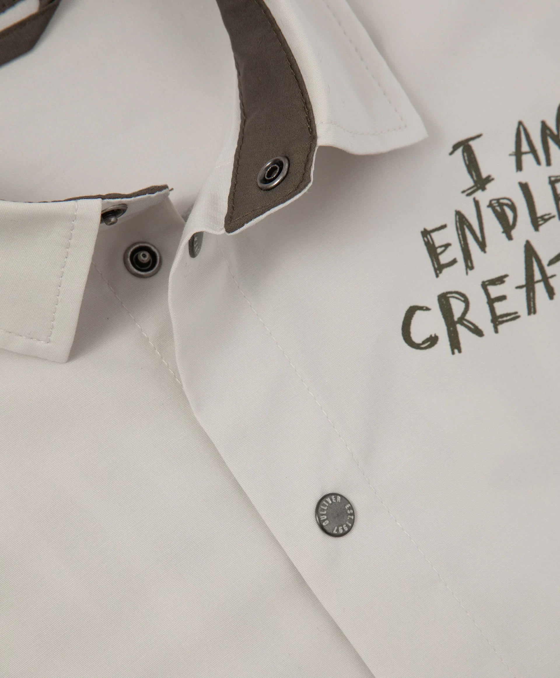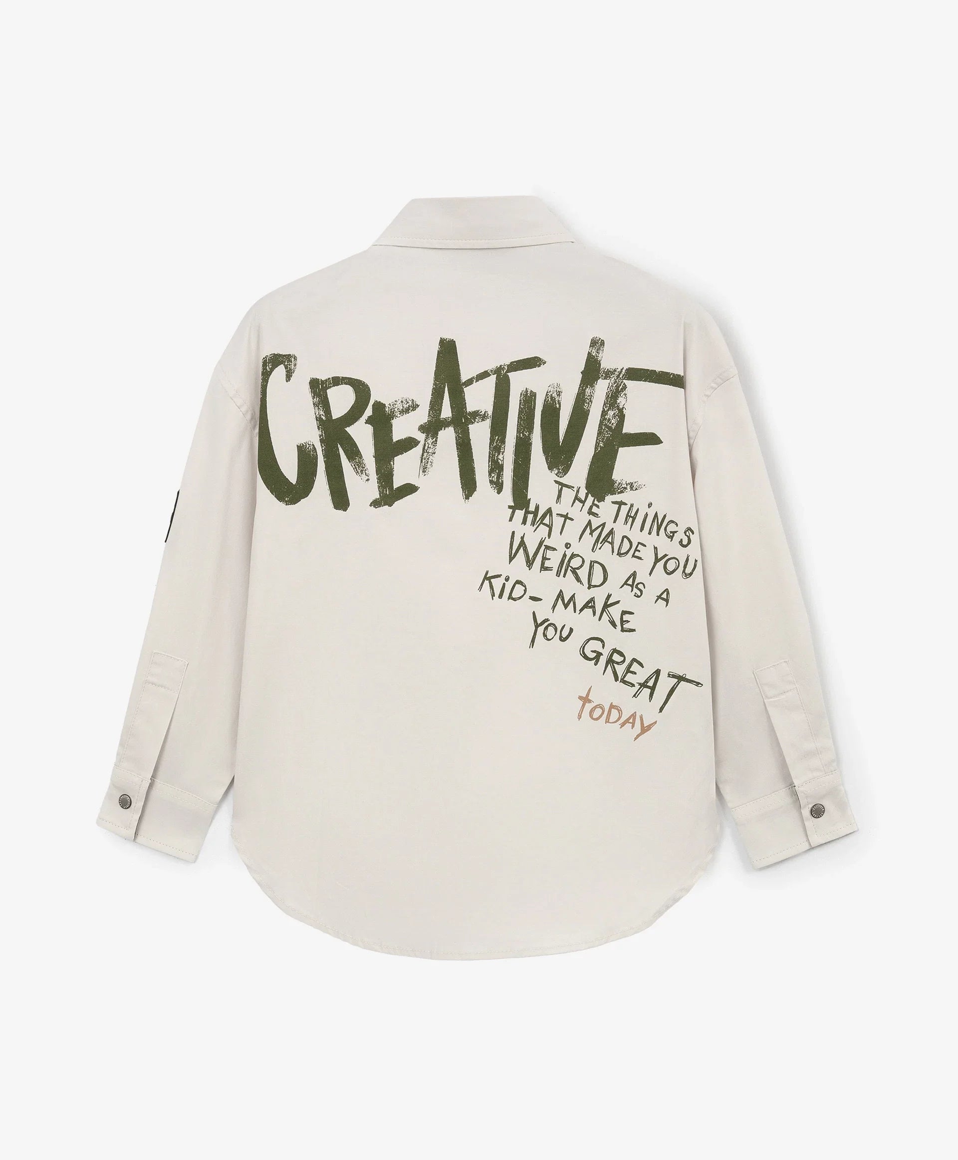 Cămașa gri cu siluetă dreaptă și print original este un element accent pentru crearea unor ținute de toamnă stilate. Cu spate alungit, realizată din material textil din bumbac moale și rezistent. Desenul tipografic, aplicat într-un stil îndrăzneț și expresiv, îi conferă unicitate și o face energică, stilată și ideală pentru outfituri moderne în straturi. Se închide cu capse.