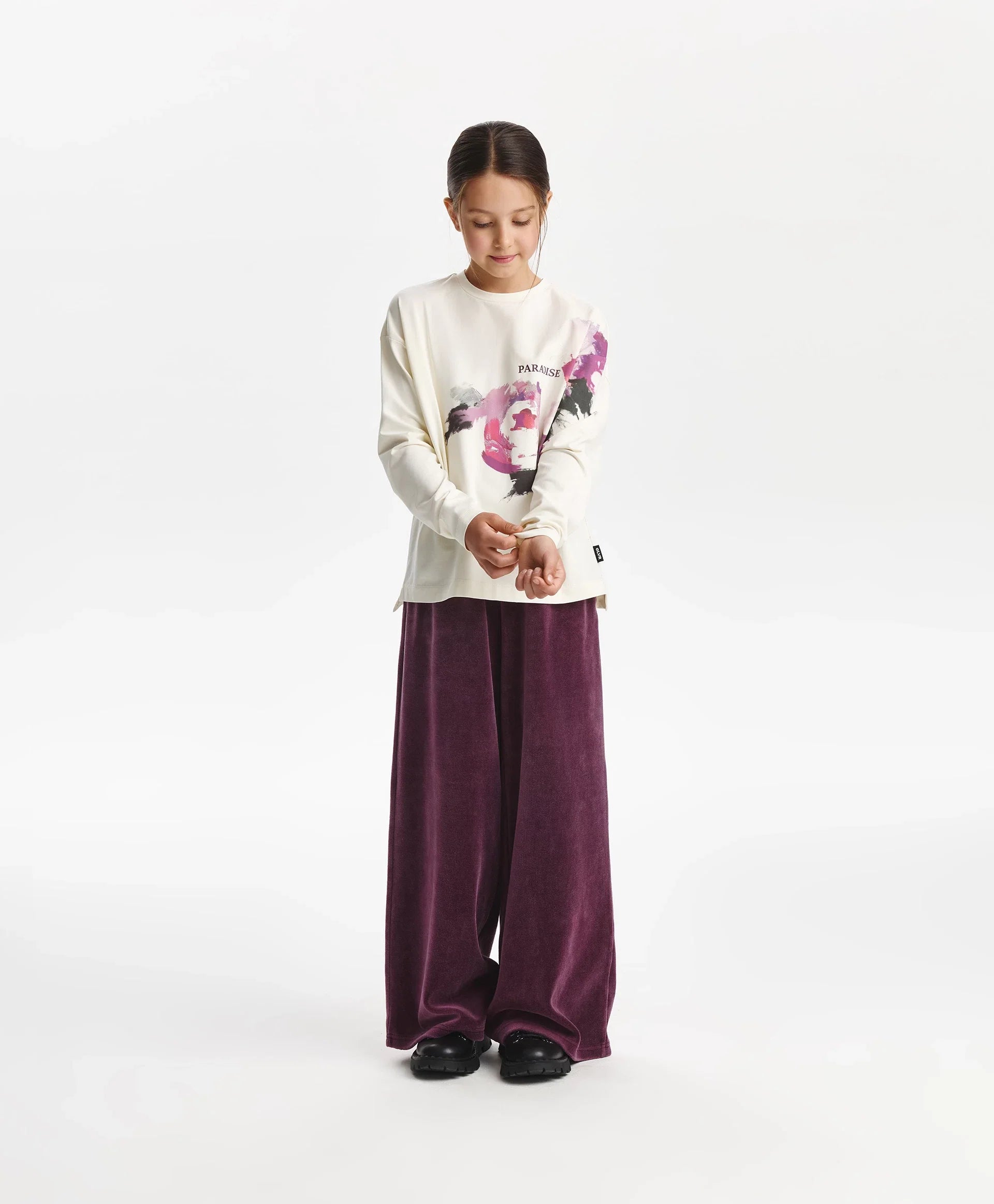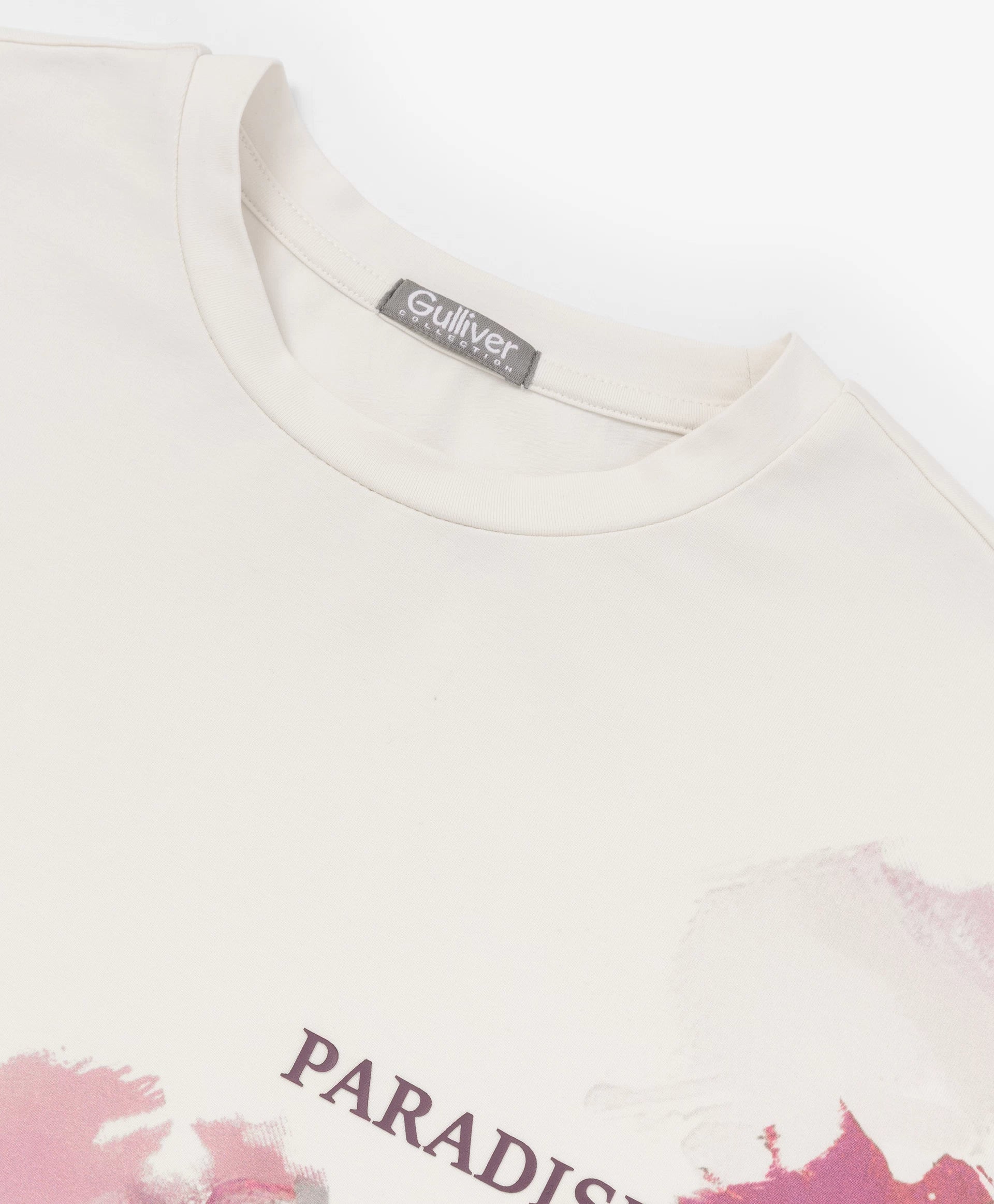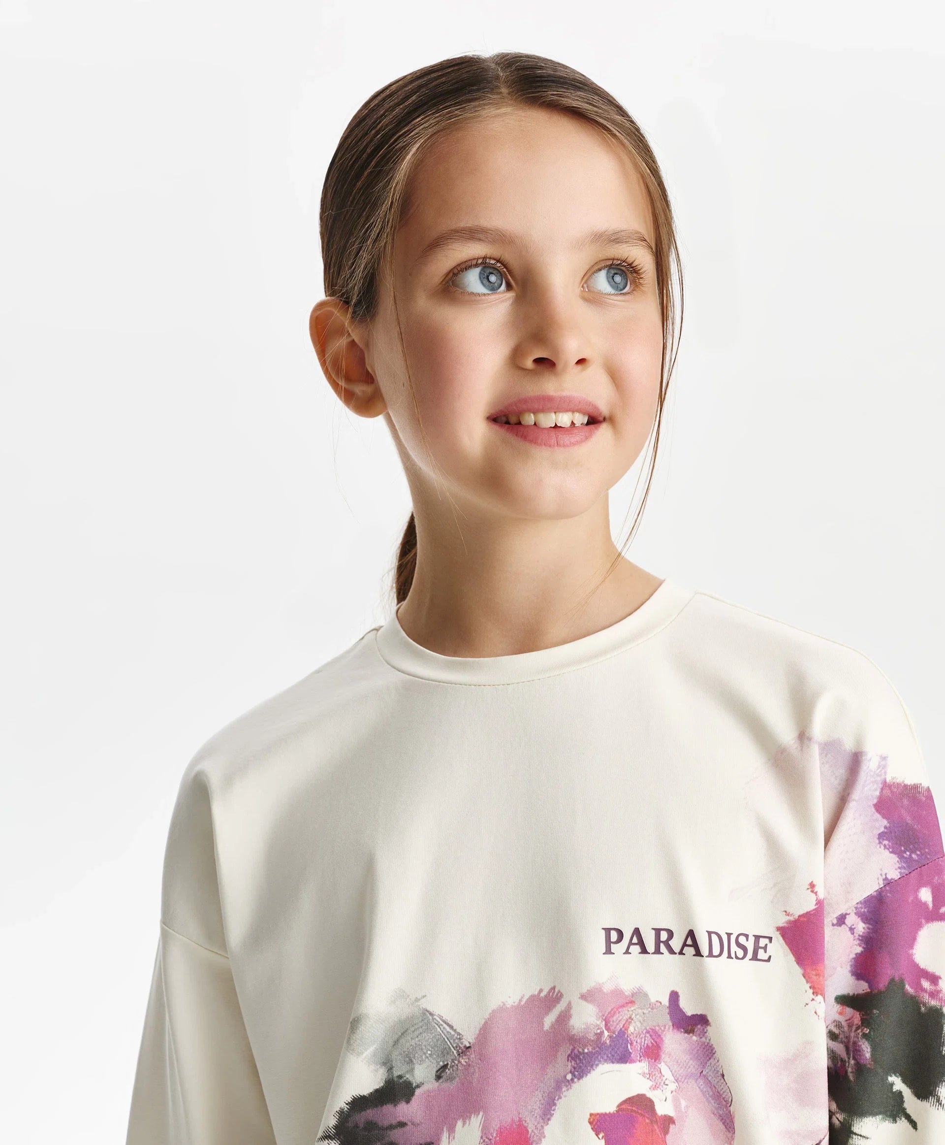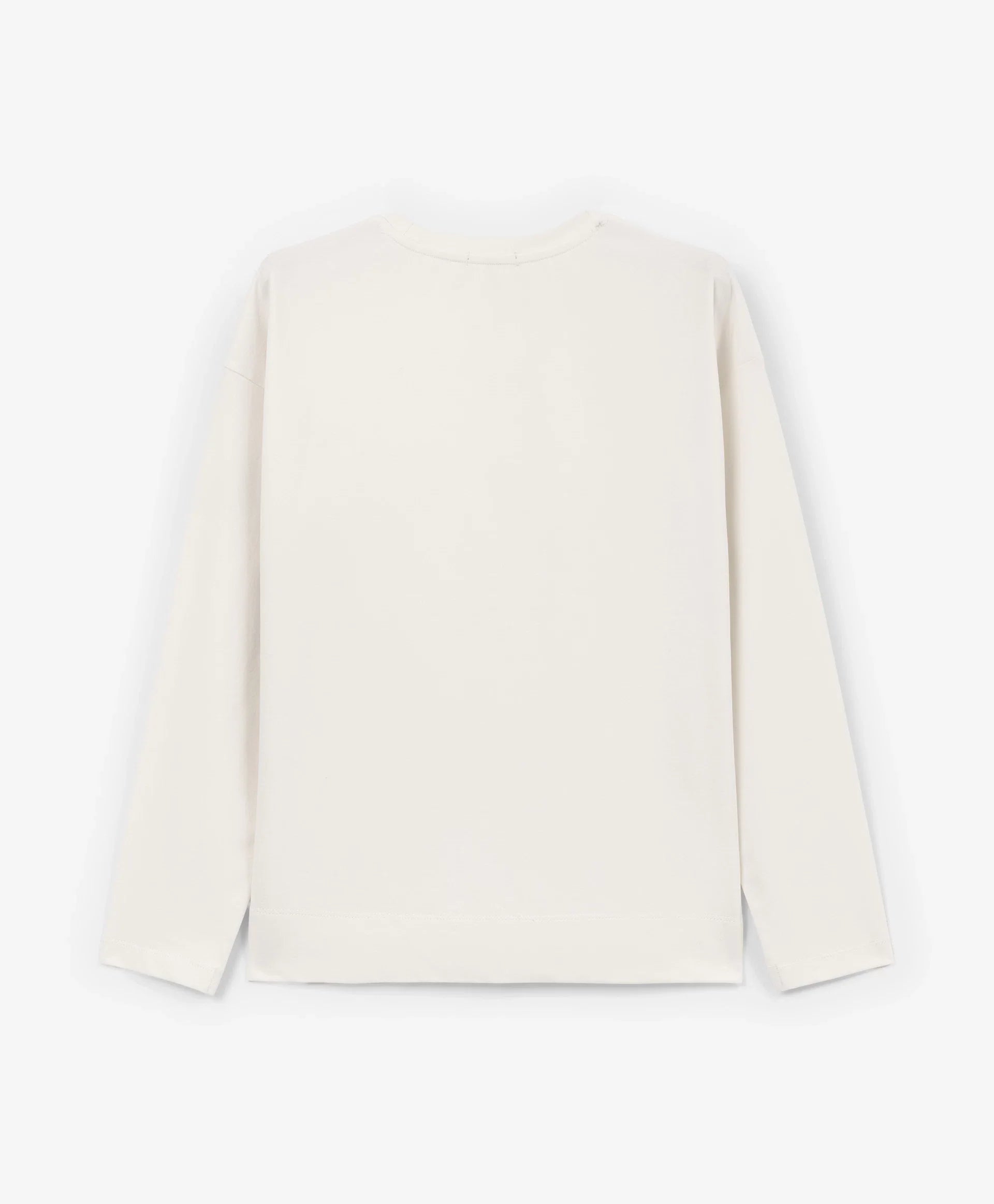 Bluză cu mânecă lungă pentru fată, model lejer, cu print asimetric, alb-lăptos Gulliver