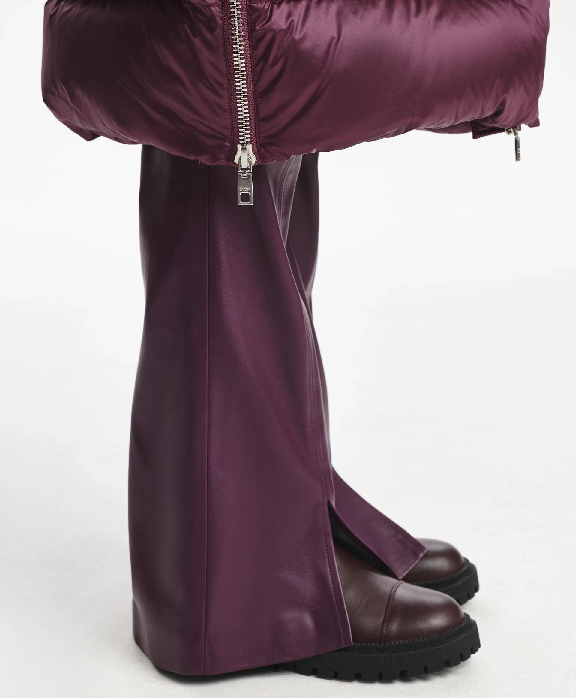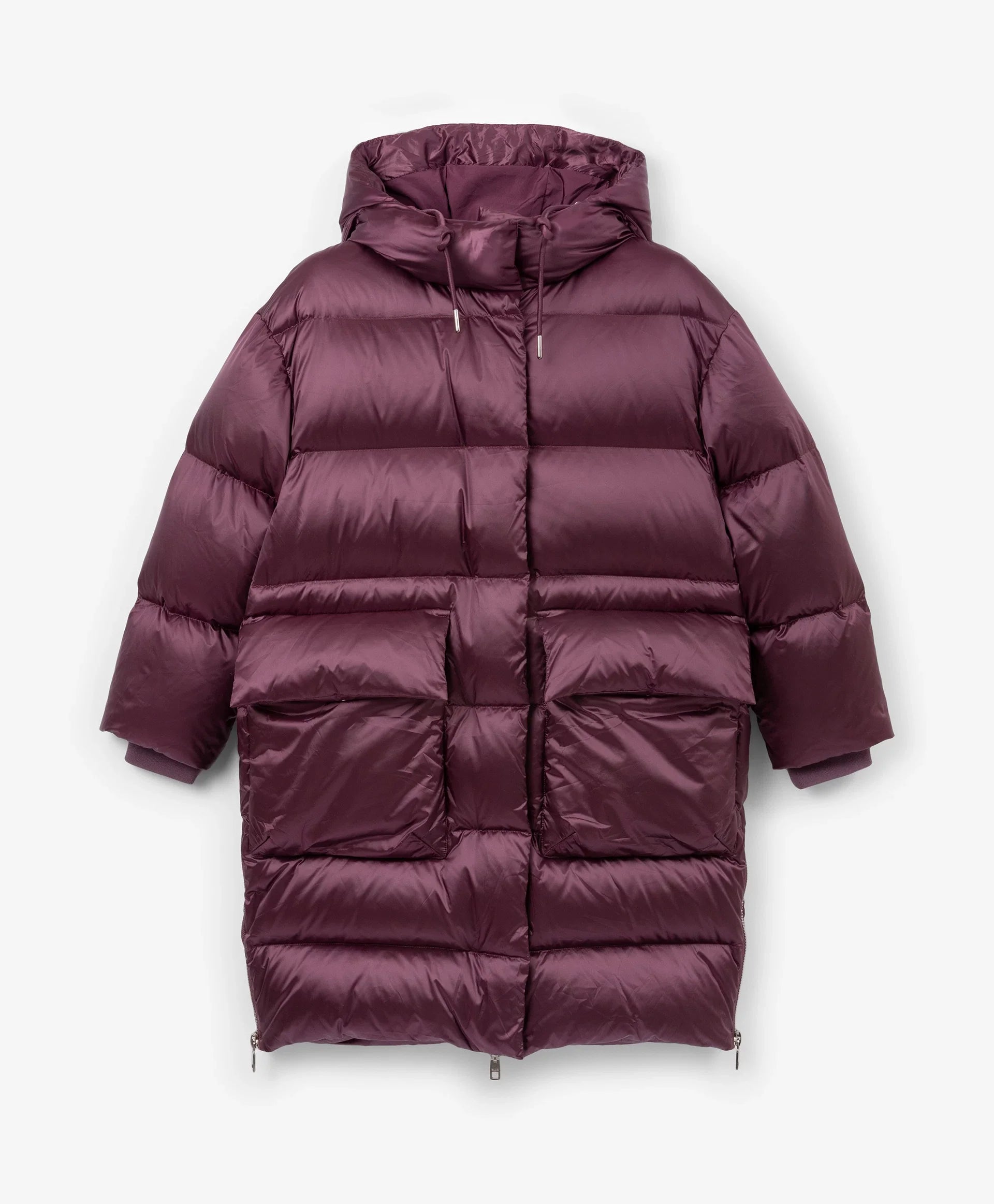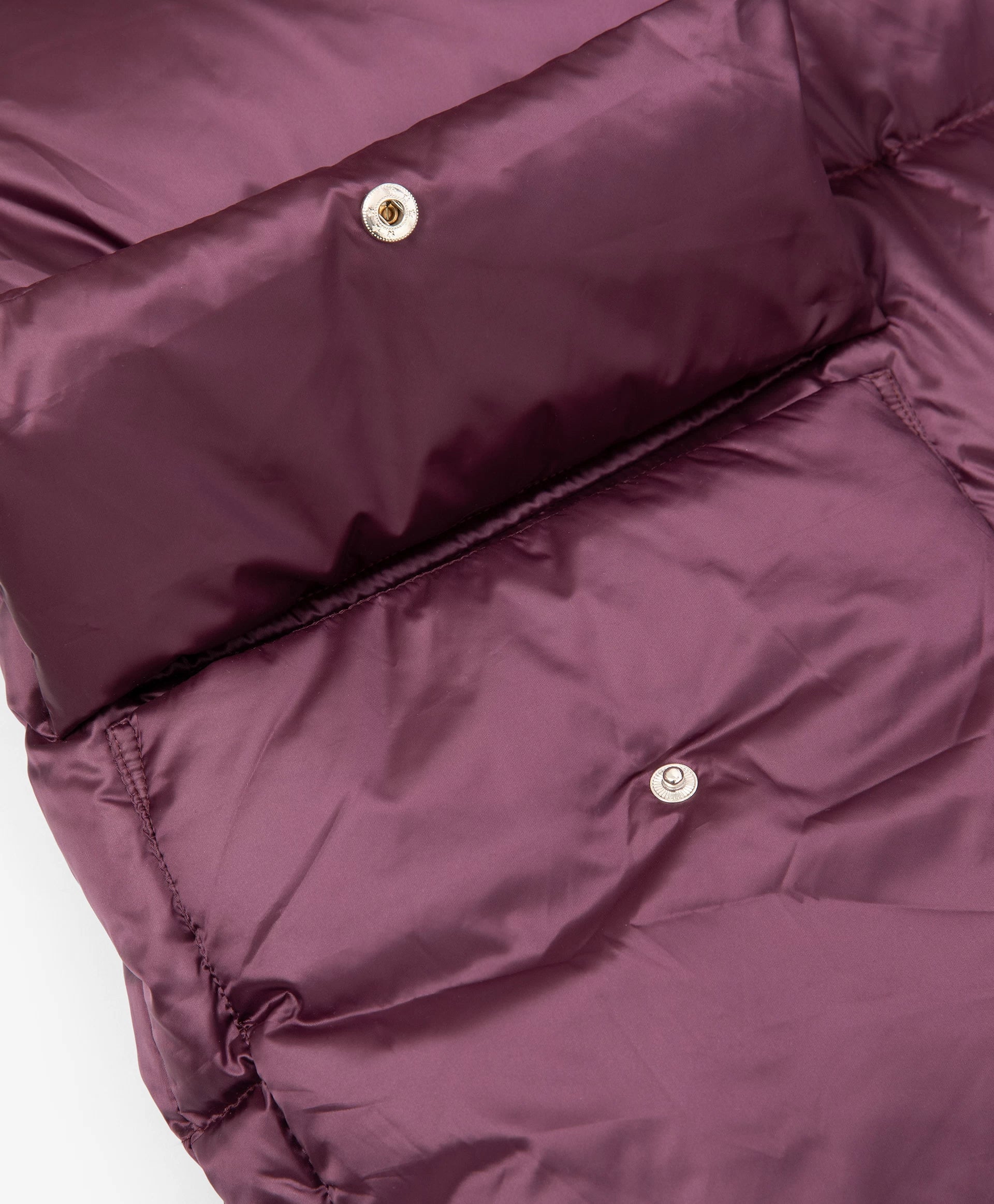 Paltonul matlasat bordo din puf natural, realizat din material impermeabil lucios, va face față excelent condițiilor aspre de iarnă. Ușor și călduros, cu croială dreaptă lejeră și glugă confortabilă, este un exemplu de îmbrăcăminte exterioară stilată și practică. Două buzunare frontale mari cu clapă și capse, fermoare mici în cusăturile laterale pentru o mișcare mai ușoară, glugă adâncă cu șnururi, manșete din rib și clapetă exterioară anti-vânt cu capse asigură confortul. Se închide cu fermoar metalic cu cursoare branduite. Aplicația reflectorizantă de pe spate crește siguranța în întuneric.