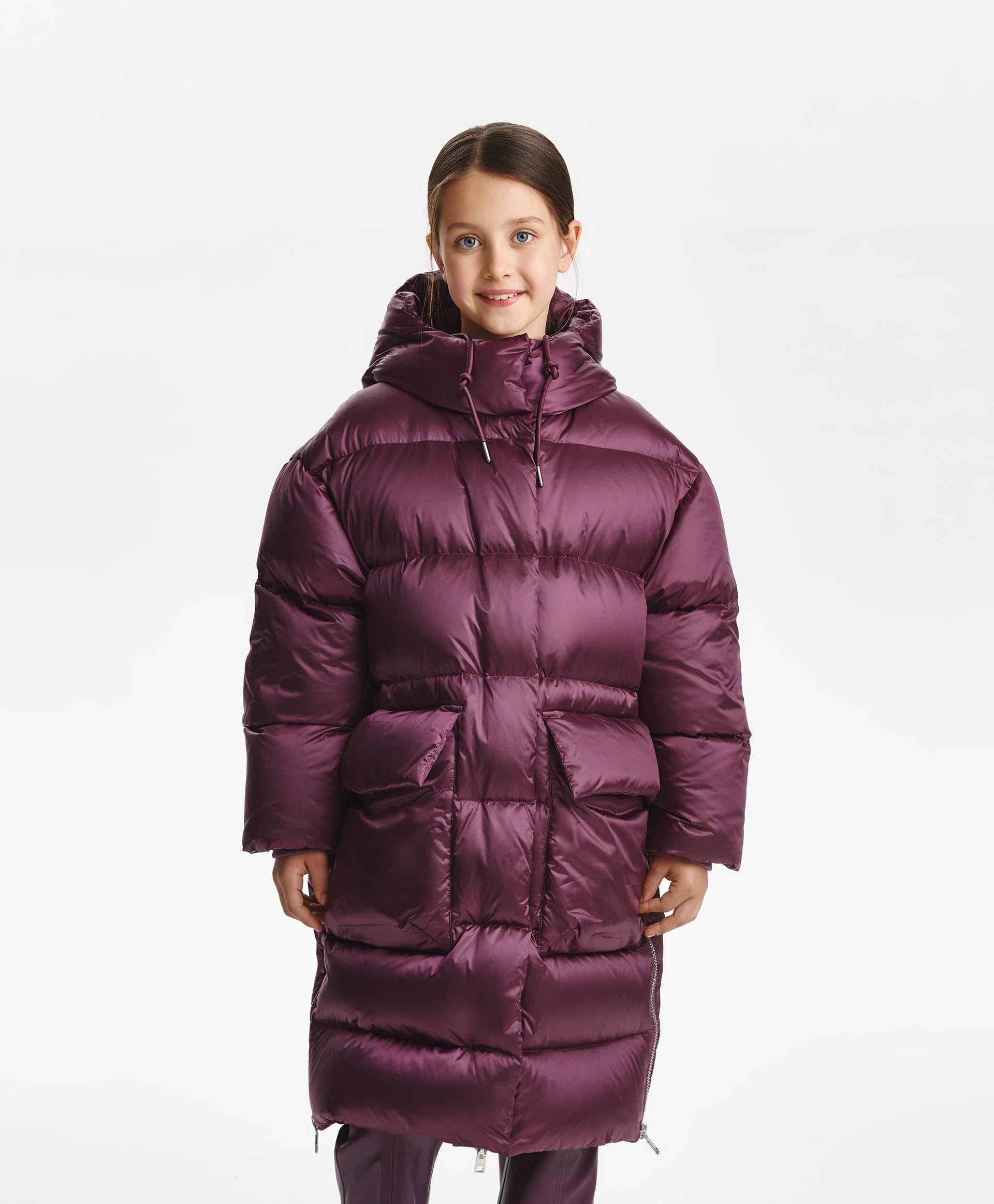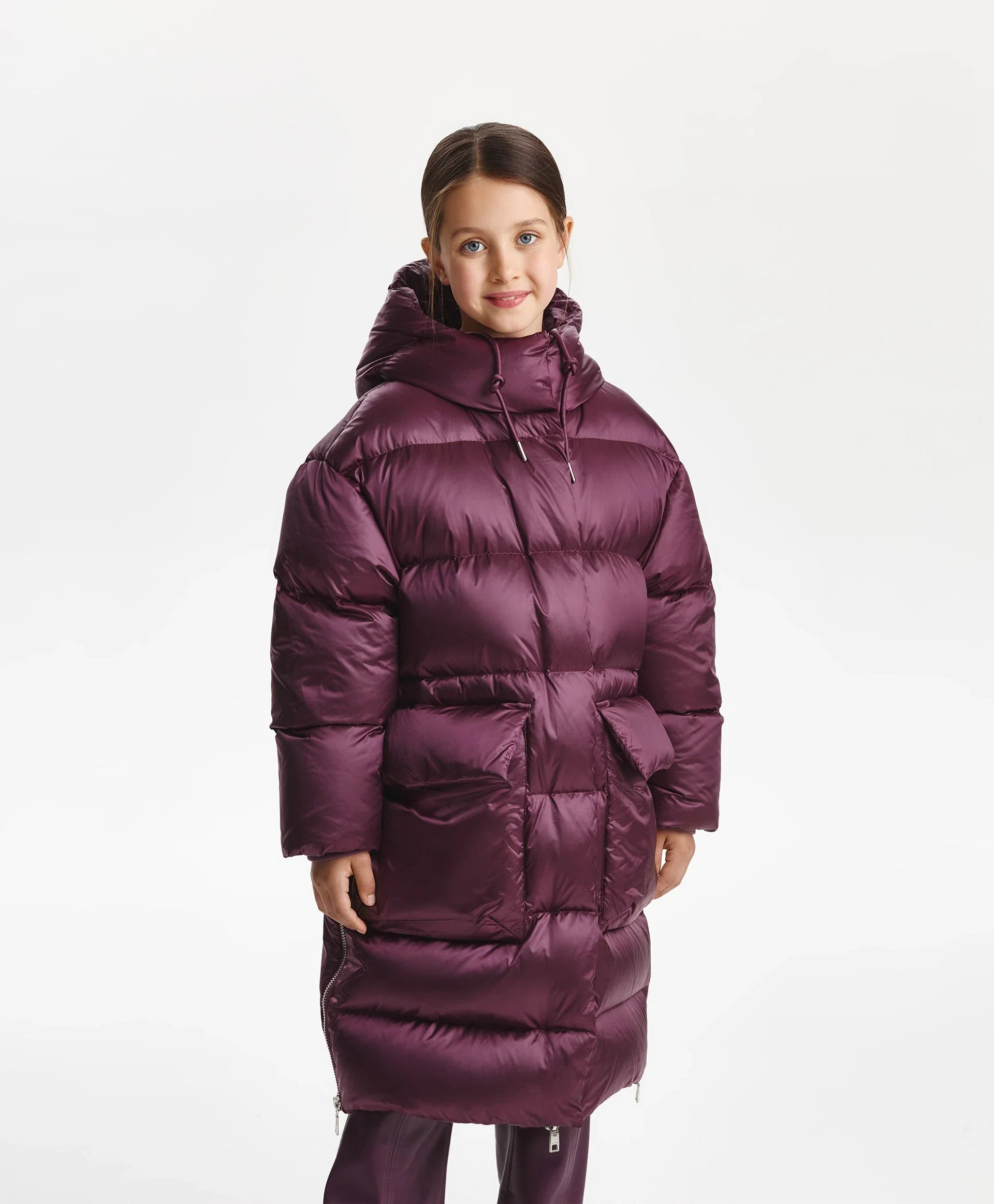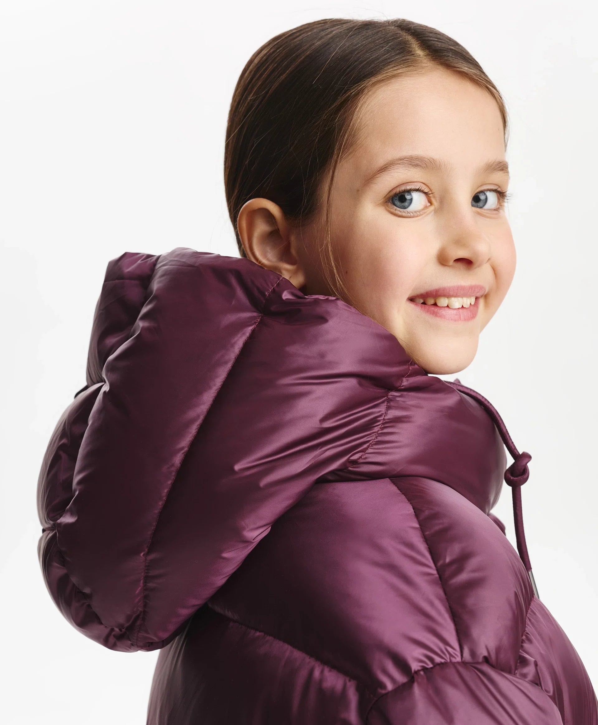 Palton de iarnă pentru fată, matlasat, cu puf natural, bordo Gulliver