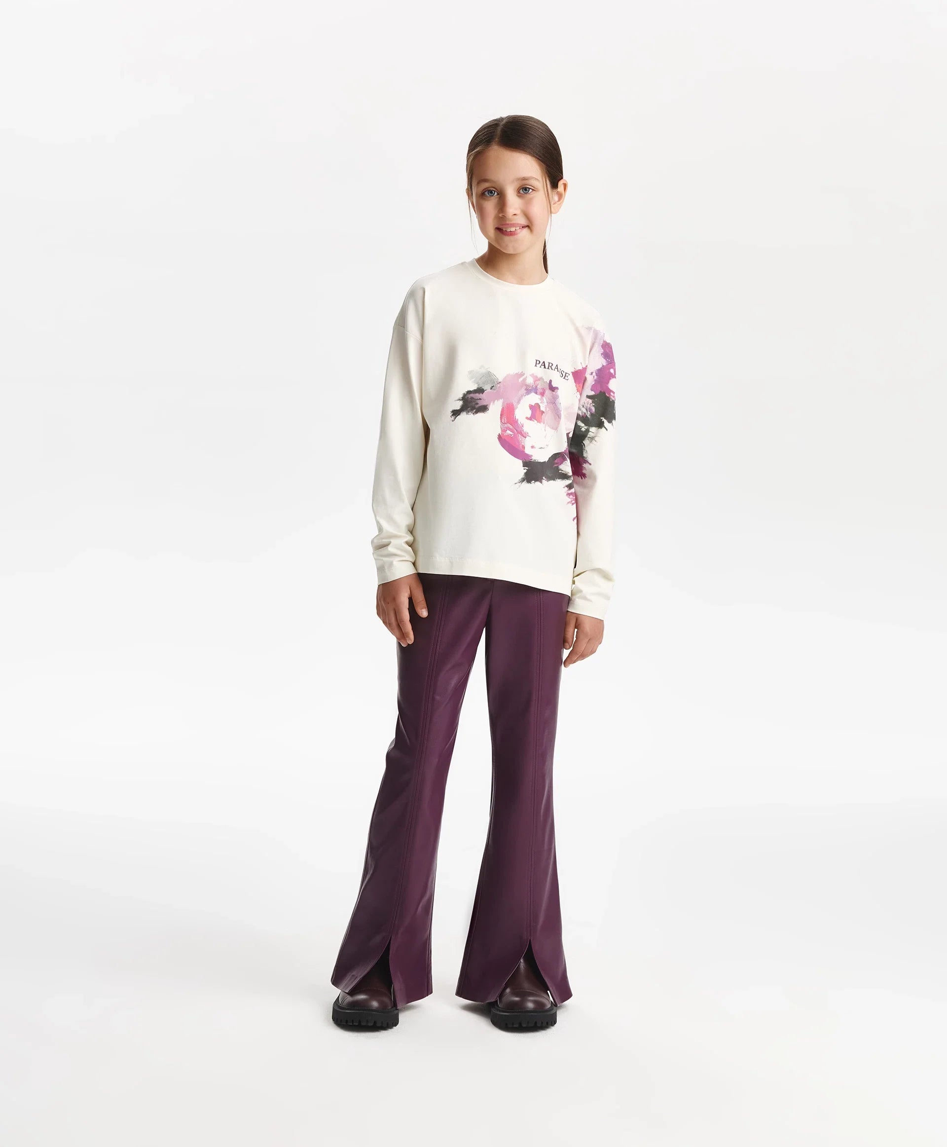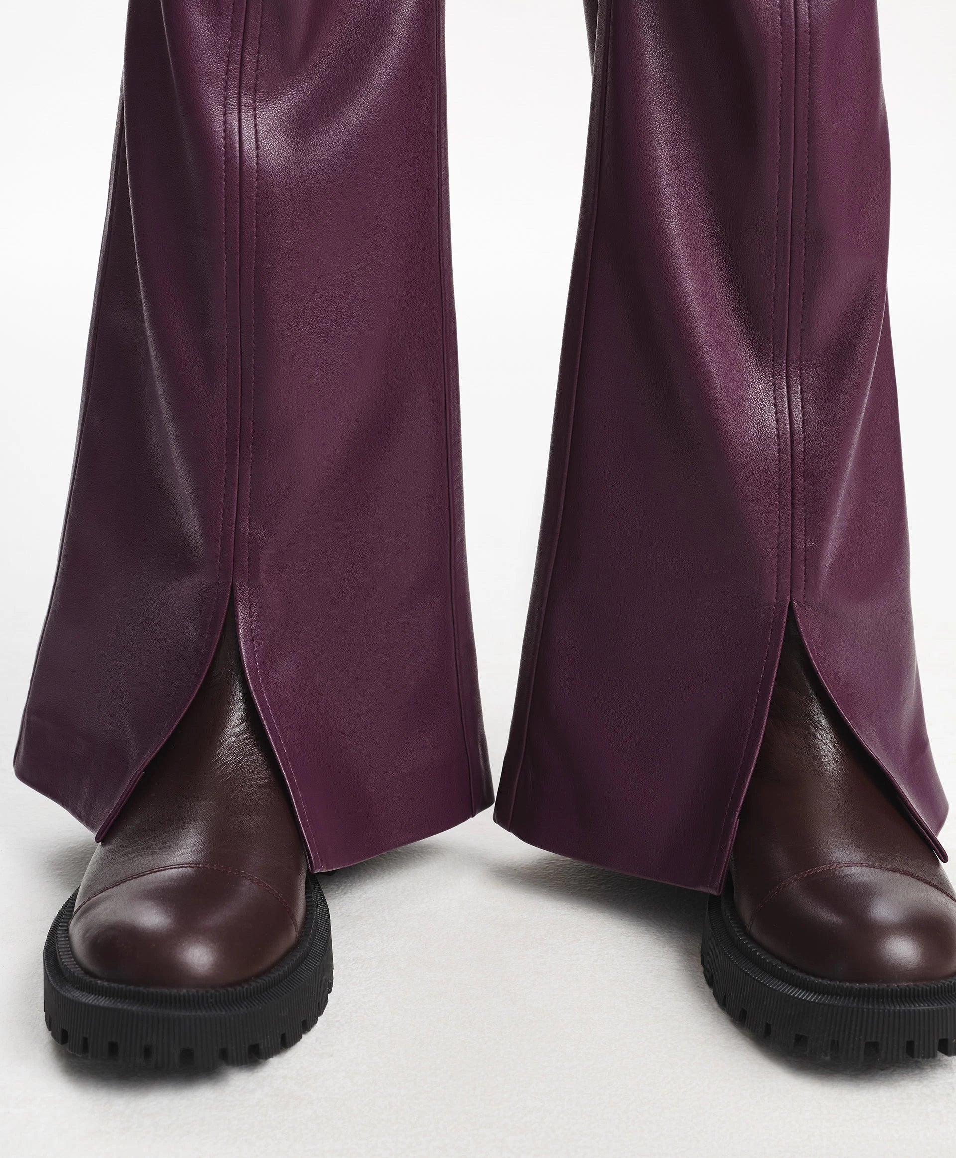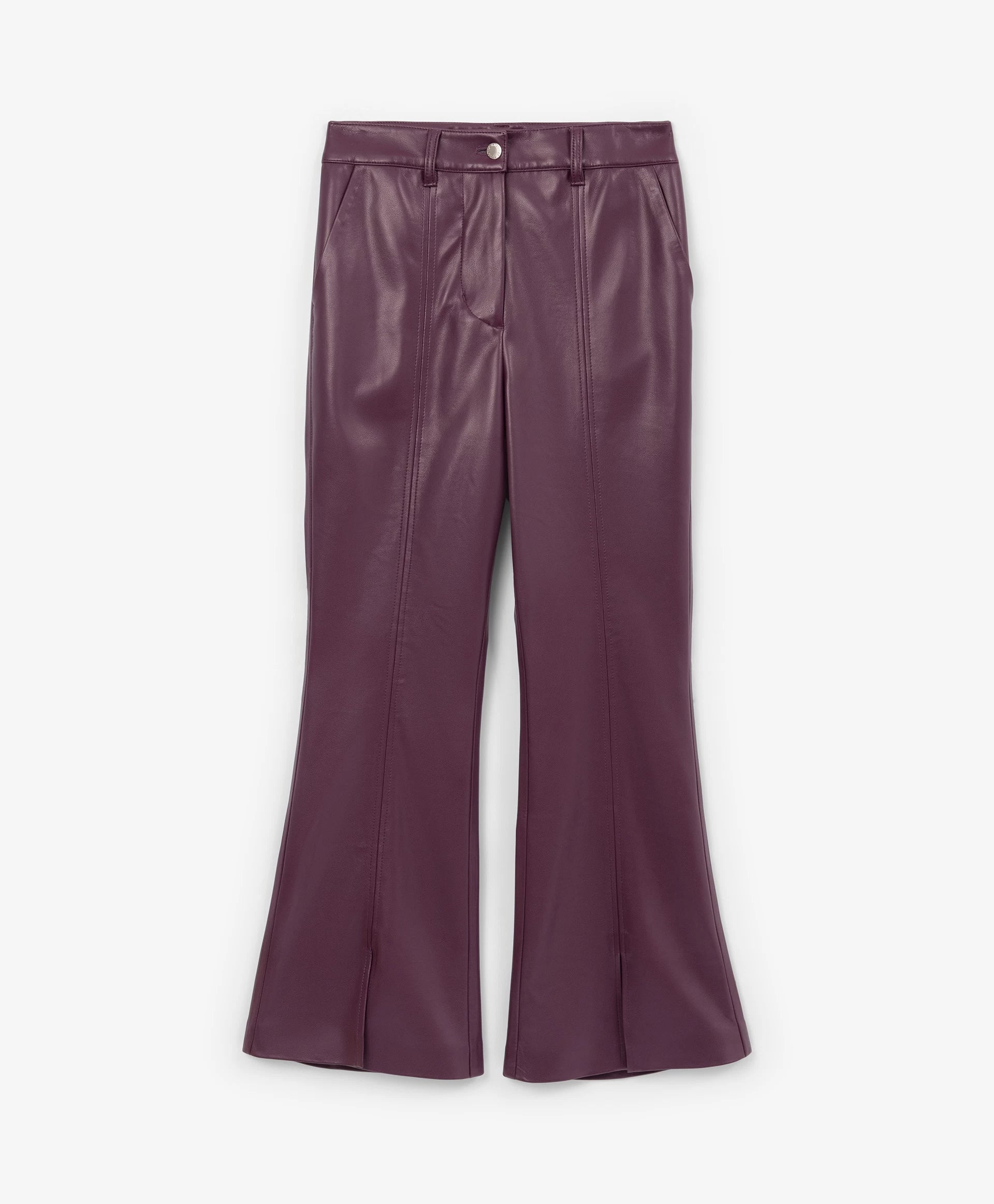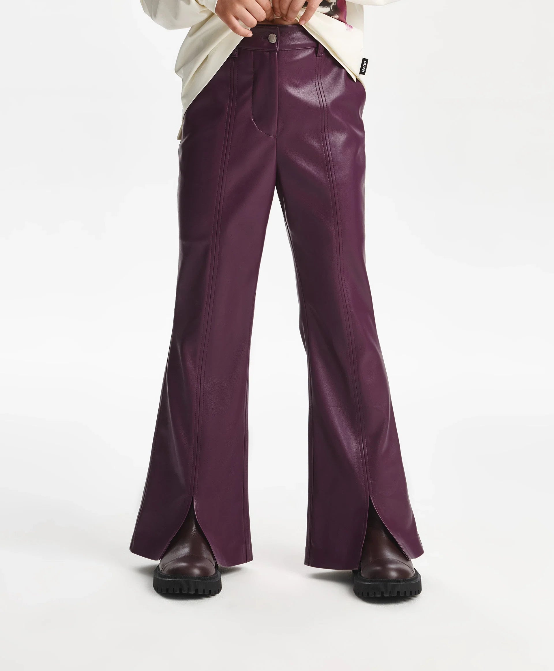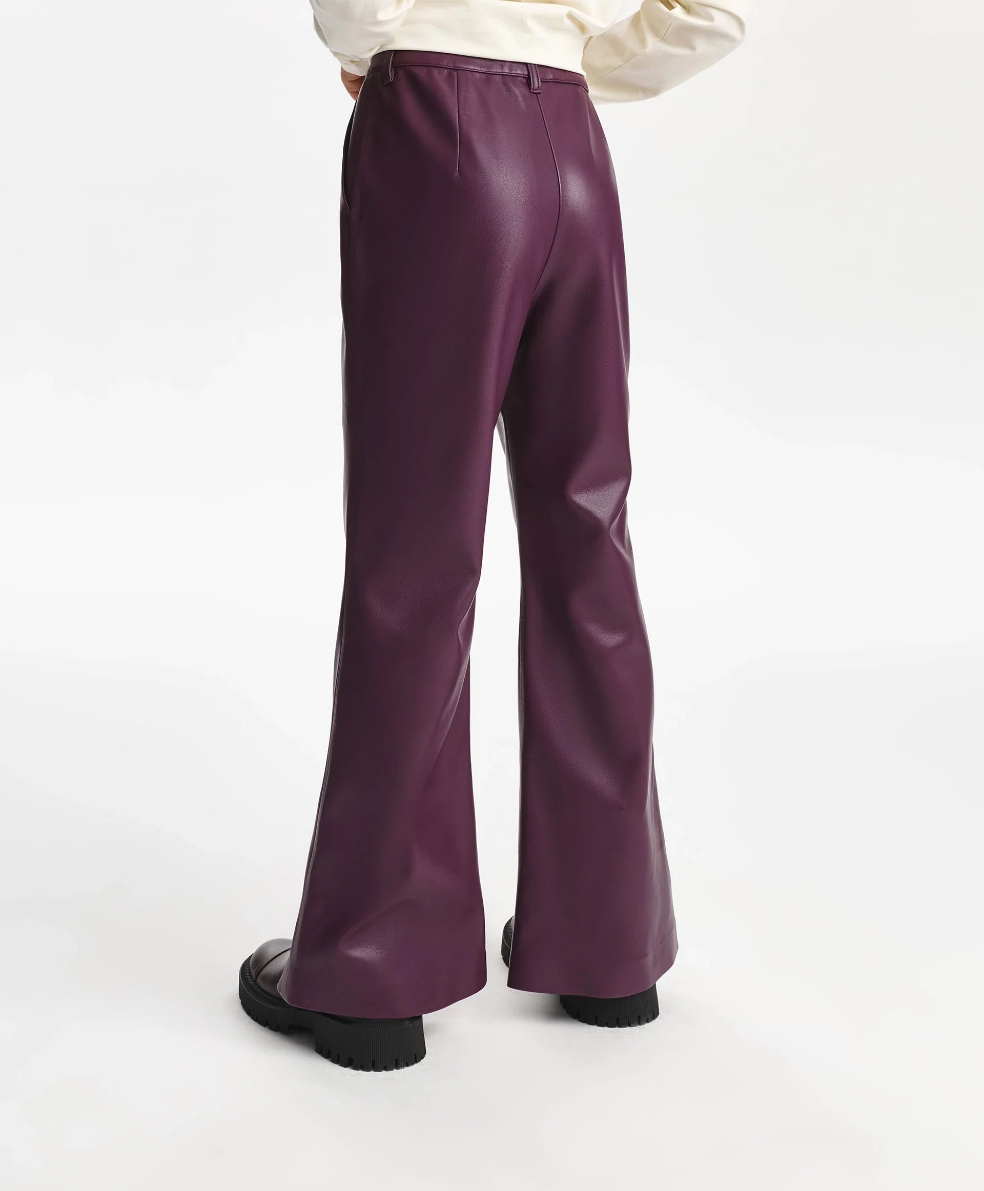 Pantaloni pentru fată din piele ecologică, evazați, bordo Gulliver