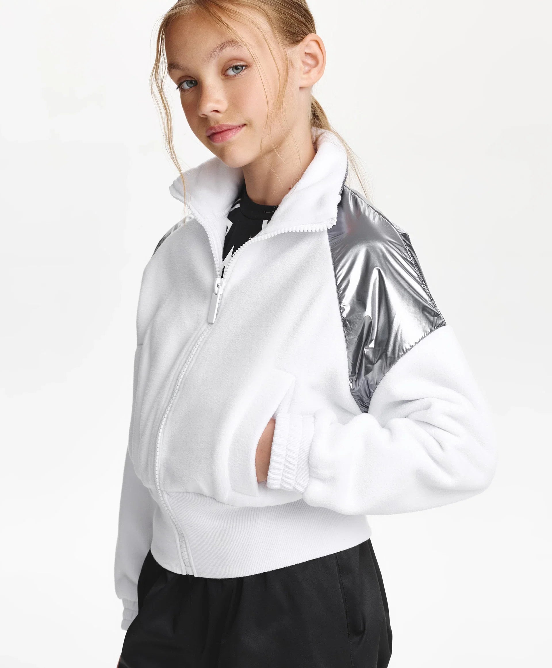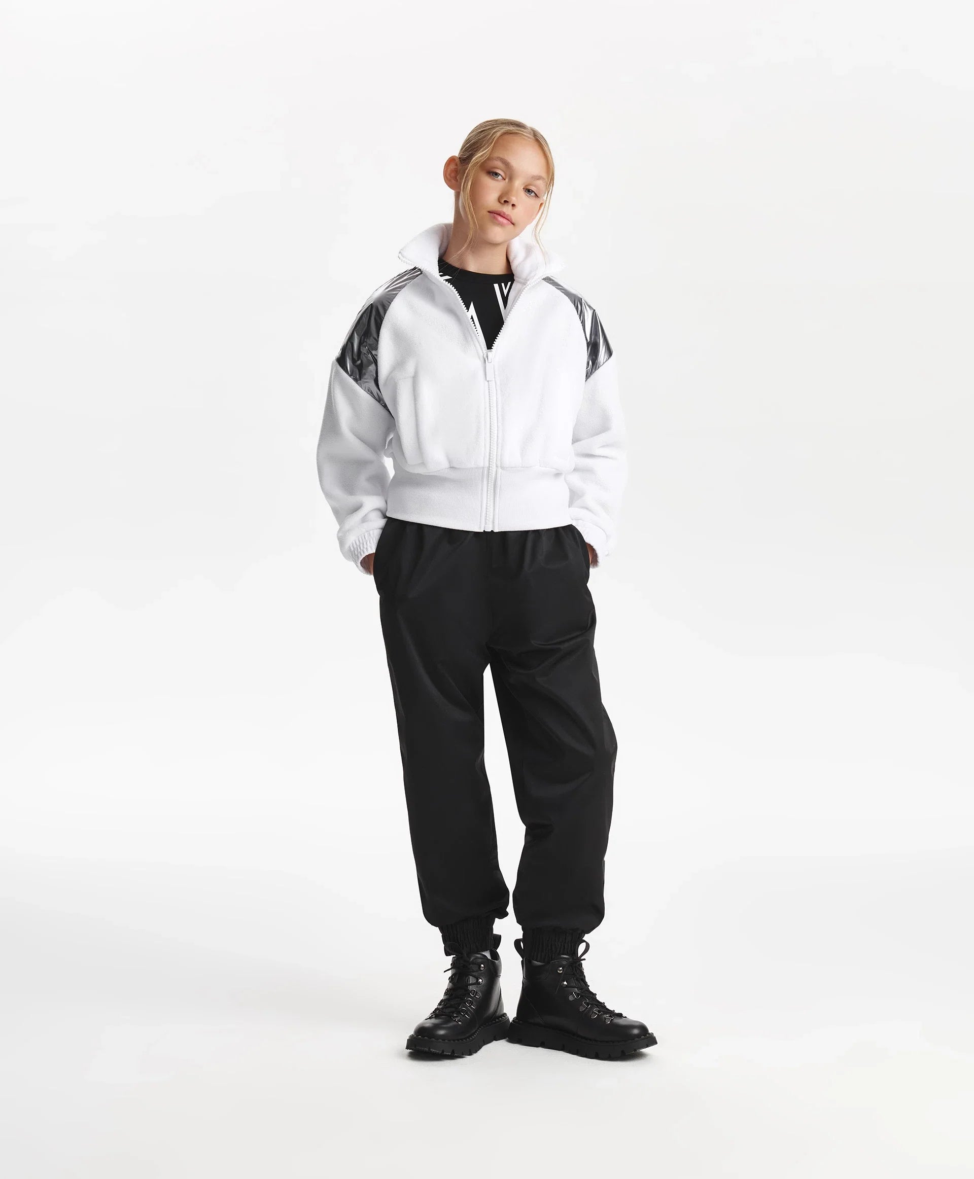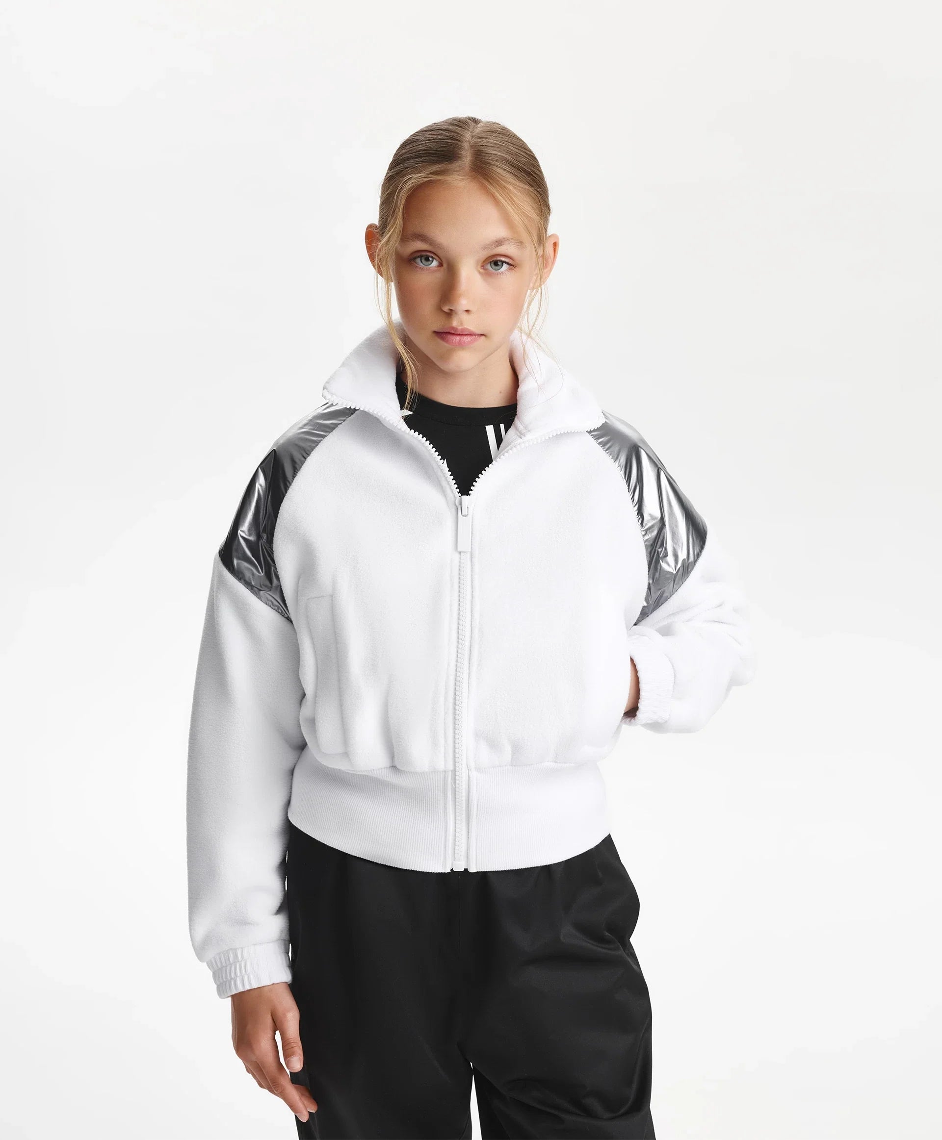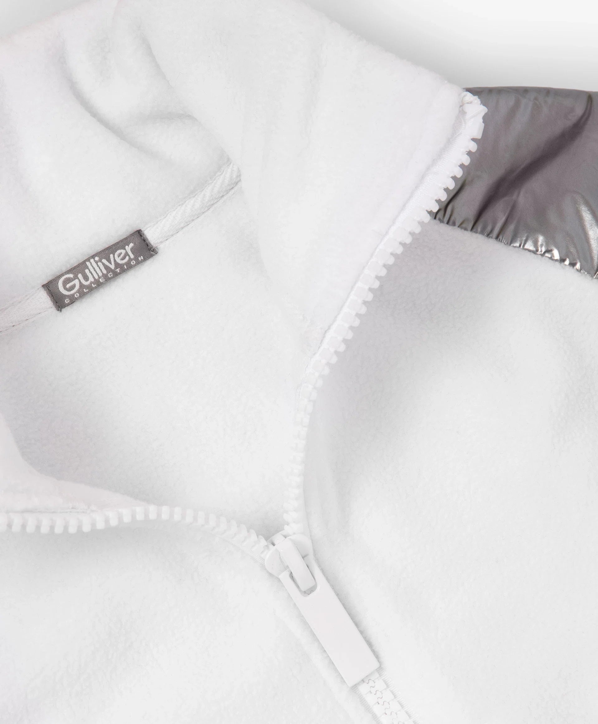 Hanorac cu fermoar pentru fată, din polar, cu borduri argintii, alb Gulliver