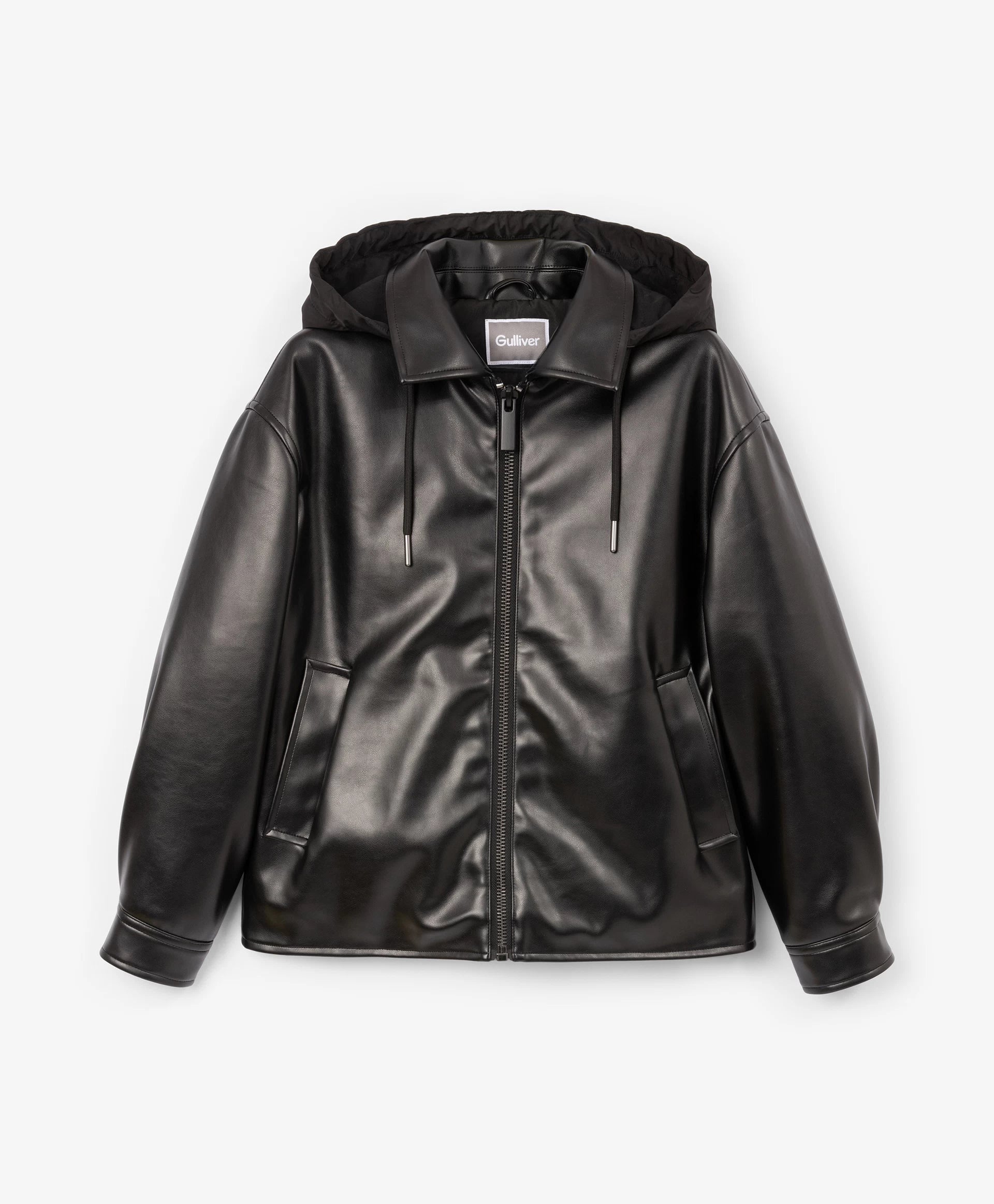 Geacă căptușită pentru băiat, din piele ecologică, neagră Gulliver