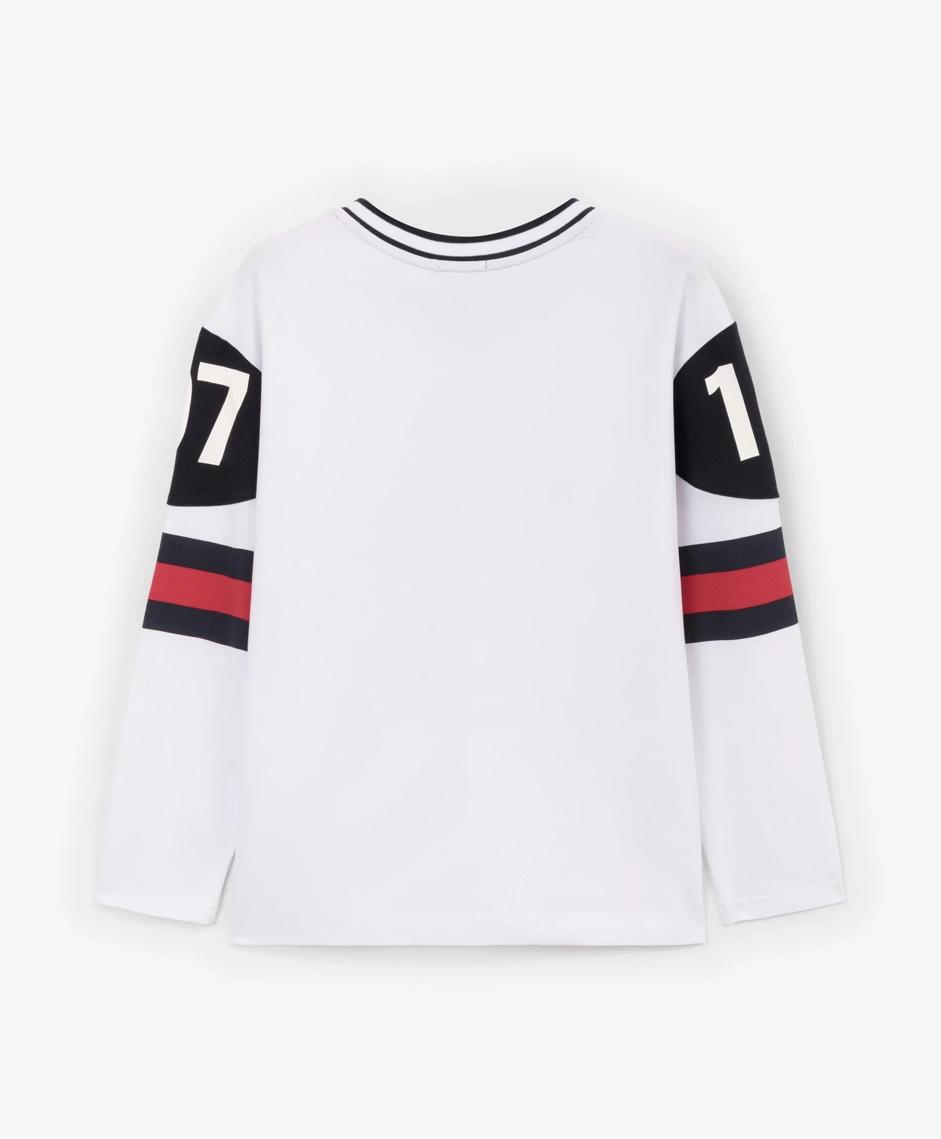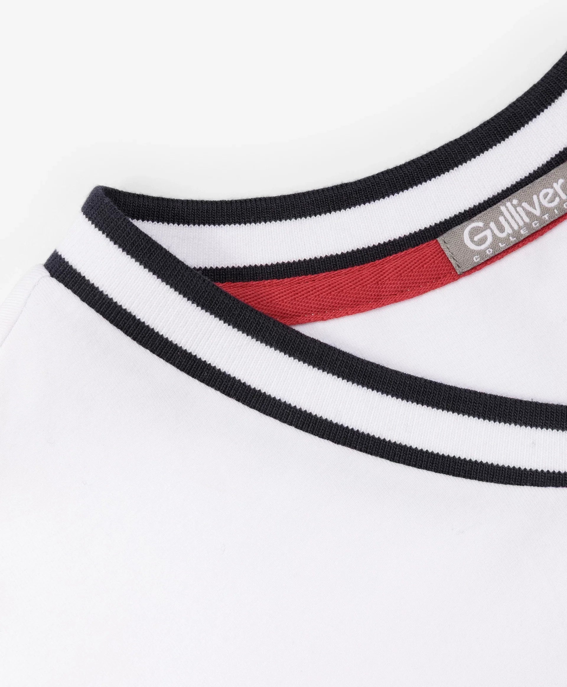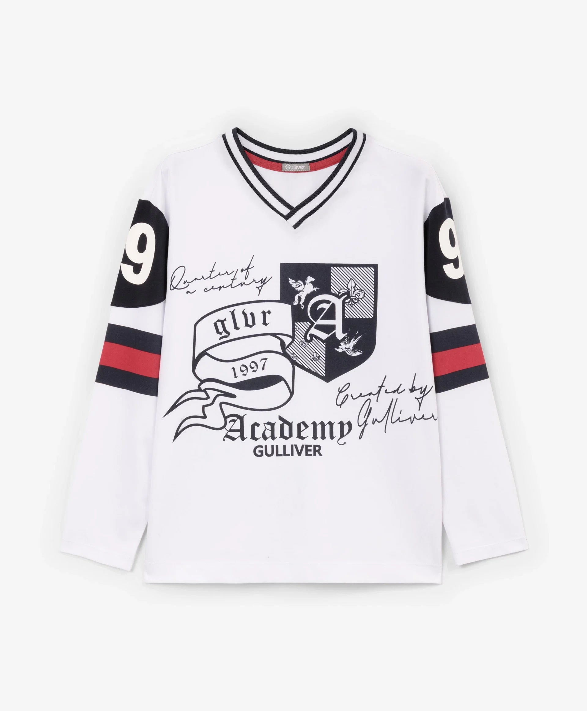 Bluză cu mânecă lungă pentru băiat, cu decolteu în V, albă Gulliver