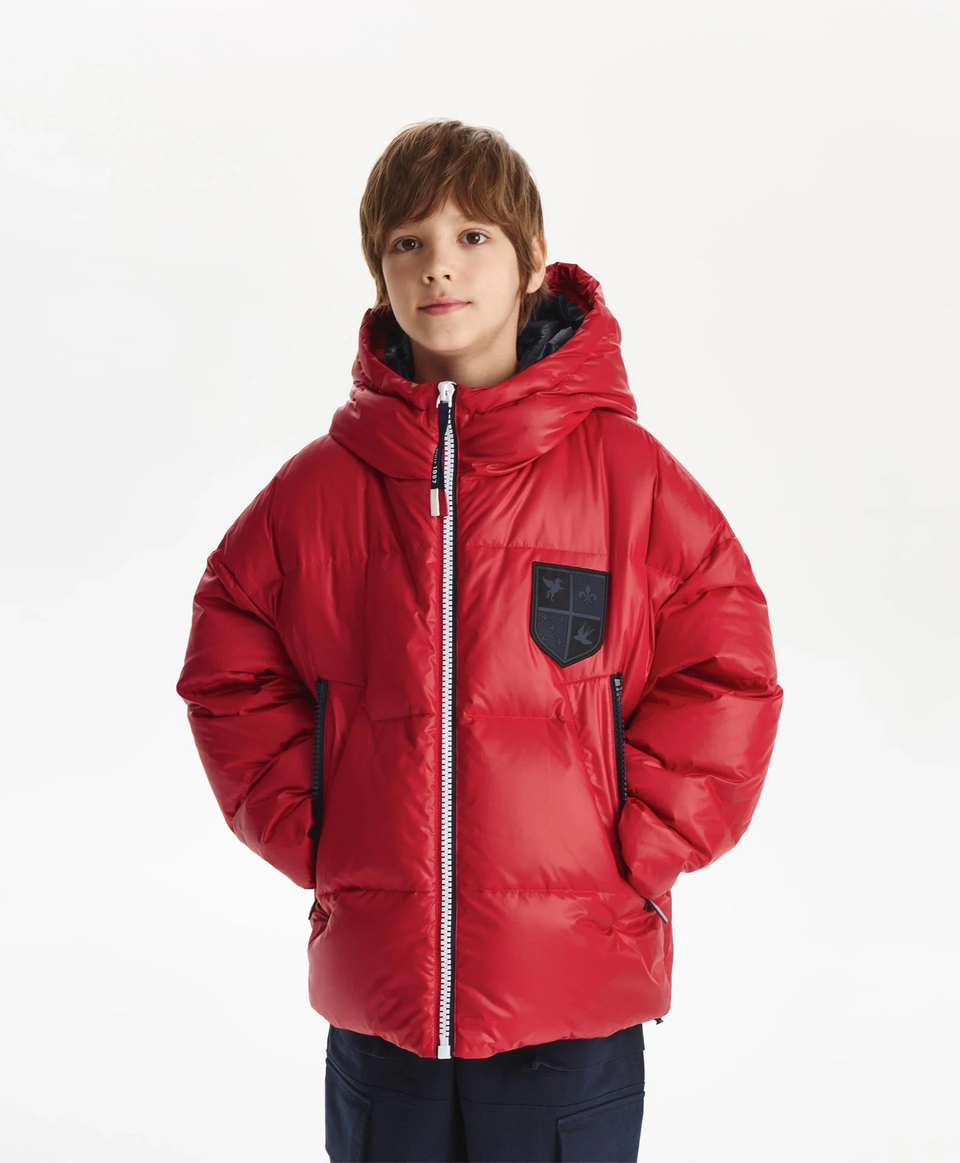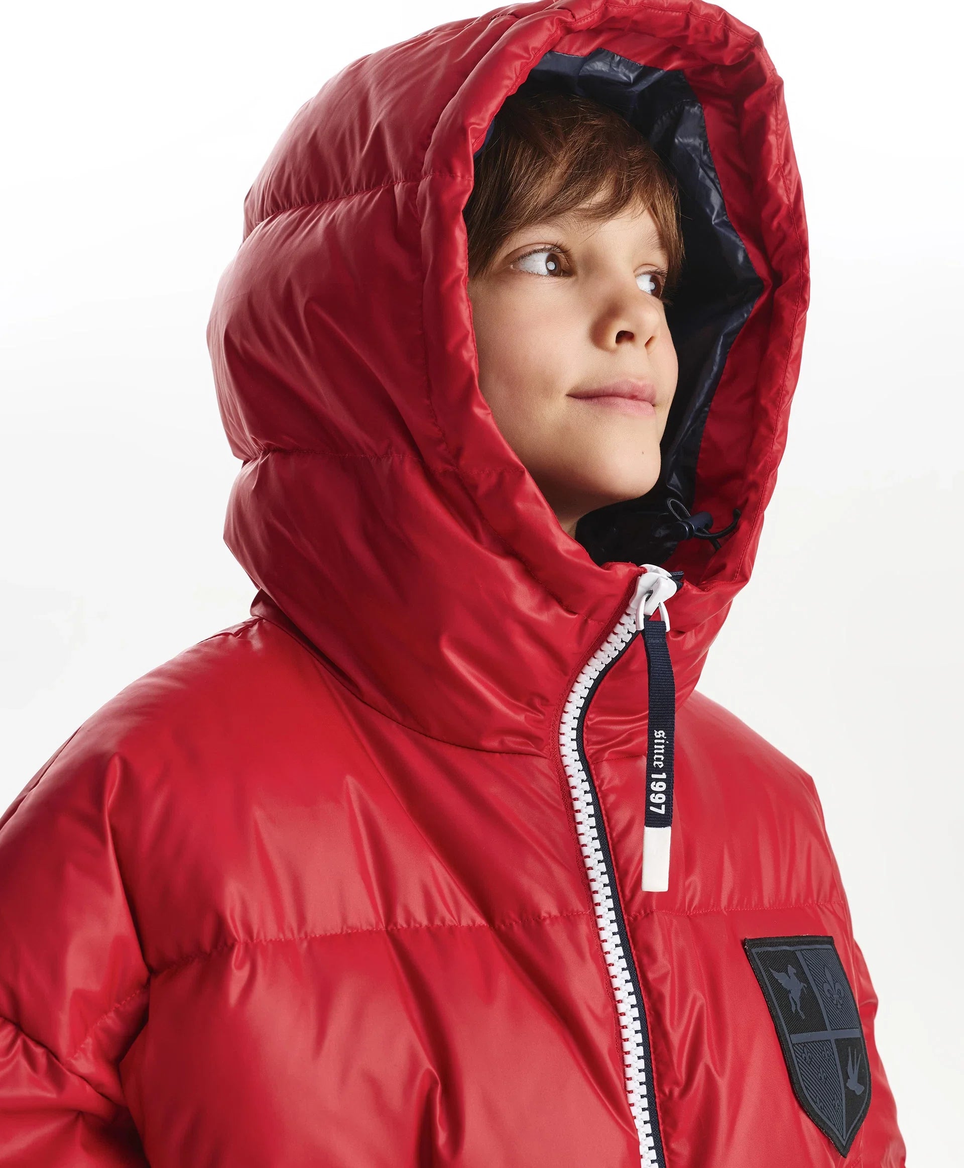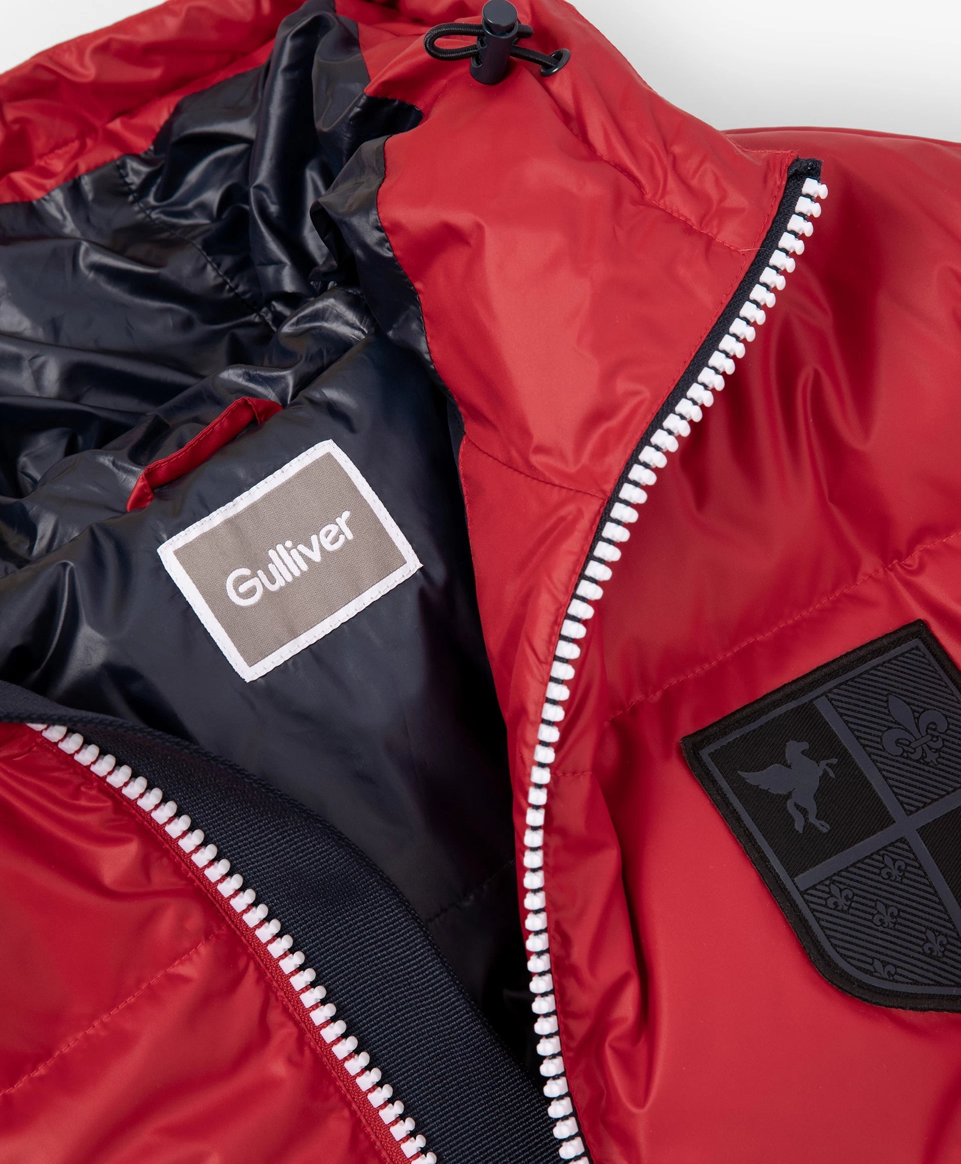 Geacă de iarnă pentru băiat, cu glugă, cu puf natural, roșie Gulliver