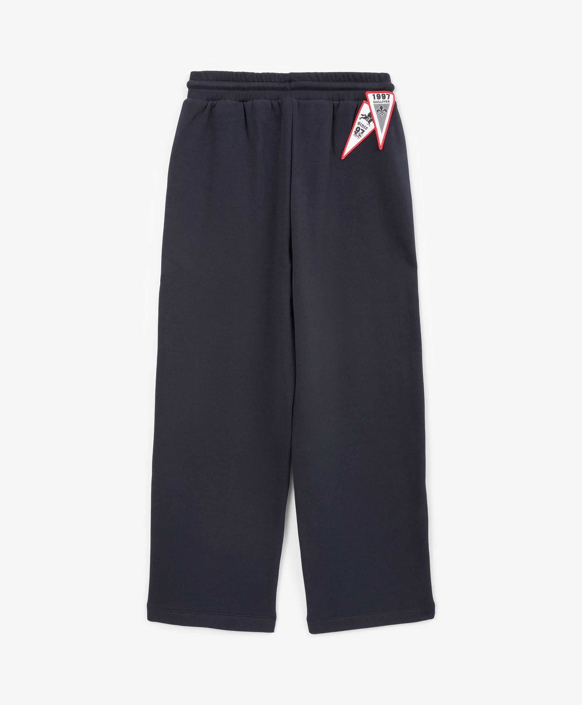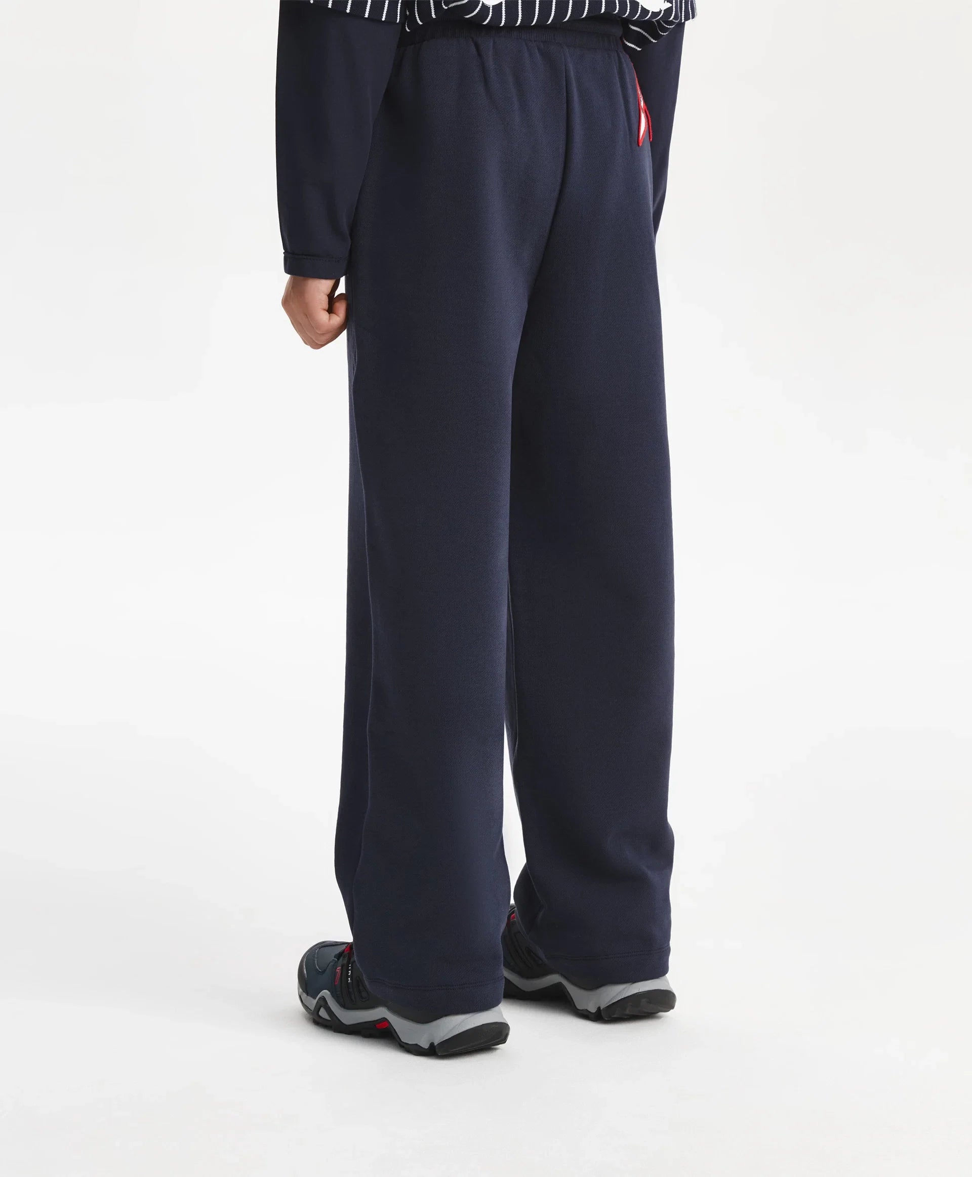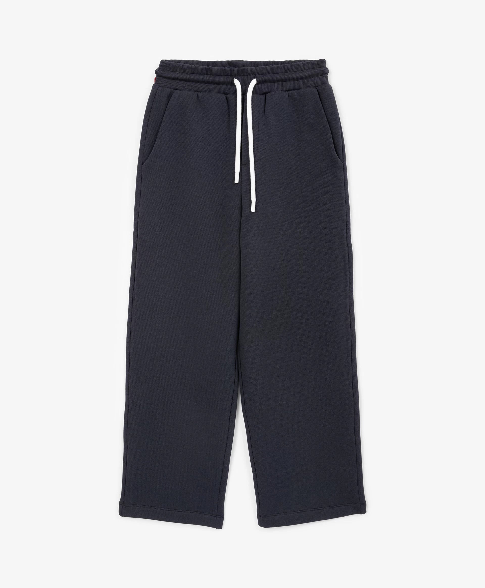 Pantalonii albaștri, cu croială dreaptă și lejeră, din futter de bumbac cu interior flaușat, sunt un must-have în garderoba practică de toamnă-iarnă. Talia elastică cu șnururi asigură o potrivire confortabilă, iar buzunarele laterale oblice sporesc funcționalitatea. Pe spate este aplicată o mică etichetă în stilul colecției Gulliver „College”.