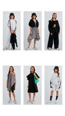 Sărafan textil pentru copii, cu croi asimetric și un umăr descoperit, combinat, Gulliver.