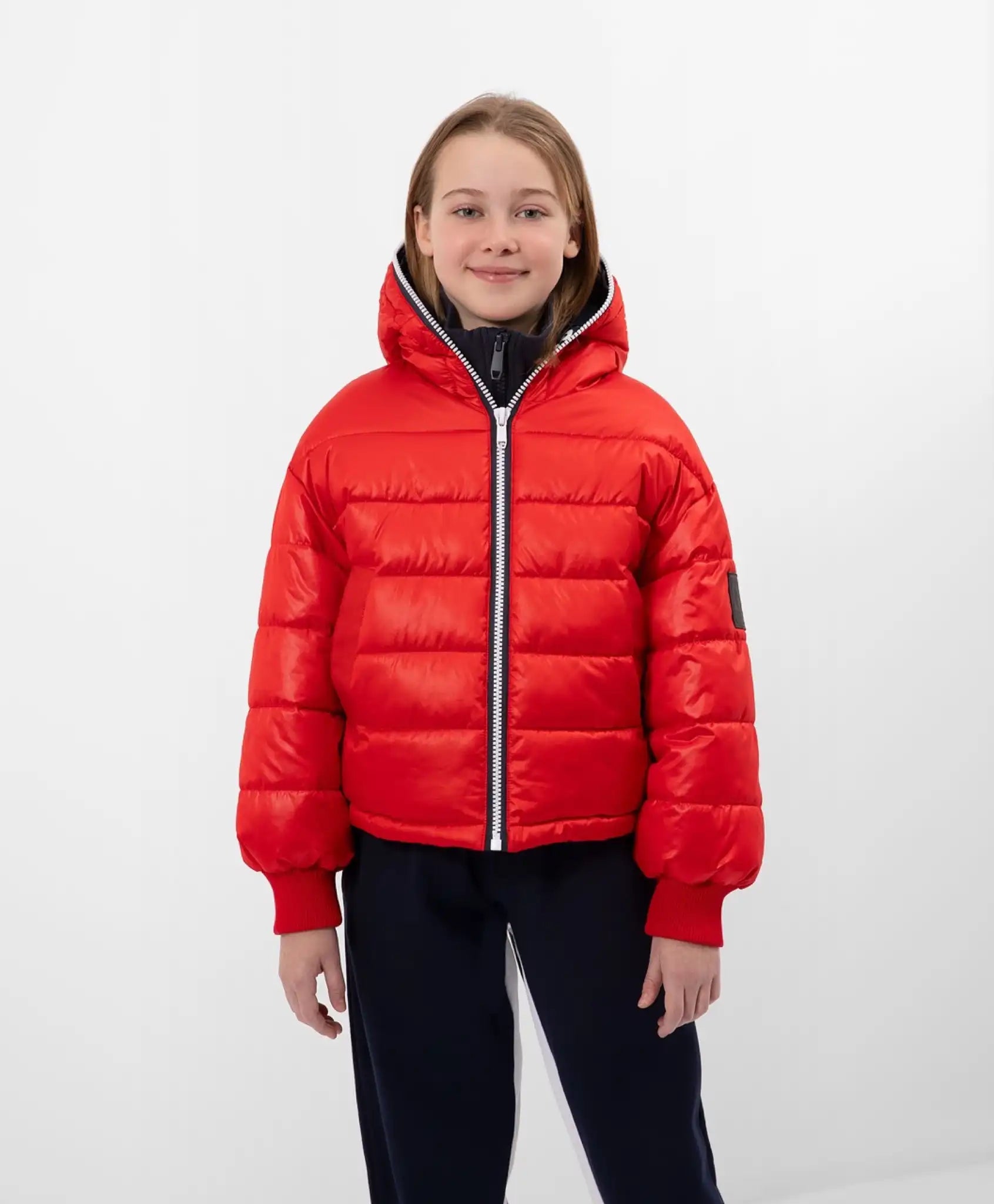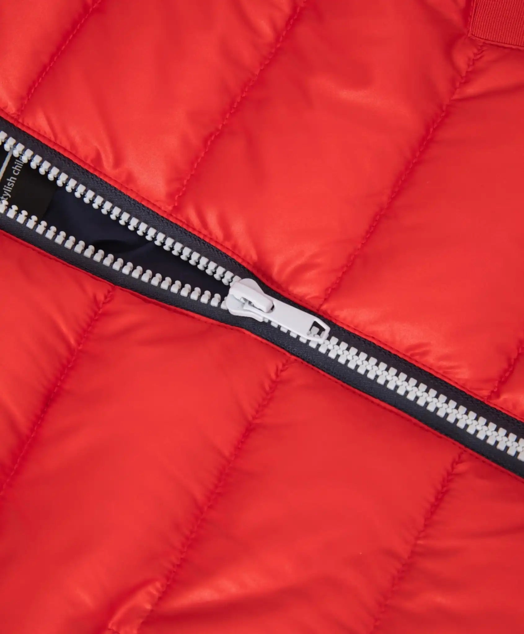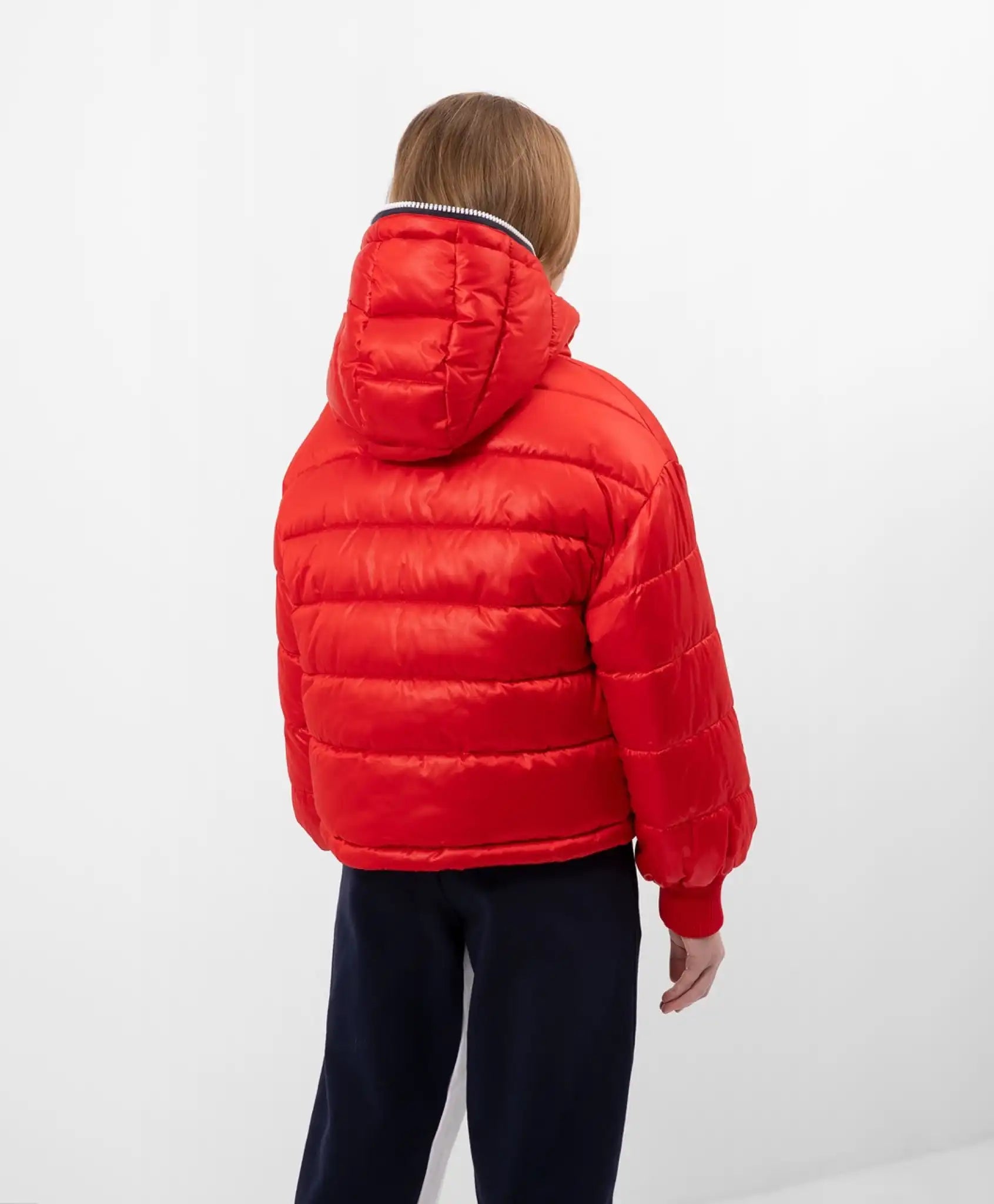 Jacheta roșie de primăvară cu blană sintetică este o alegere excelentă pentru sezonul de tranziție. Jacheta largă cu umeri căzuți are o lungime modernă pentru sezonul primăvară-vară, care formează proporțiile actuale pentru o ținută de plimbare. Jacheta este decorată cu dantelă cu elemente de font pe interiorul glugii, o buclă din dantelă pe spate și o aplicație jacard pe mânecă.