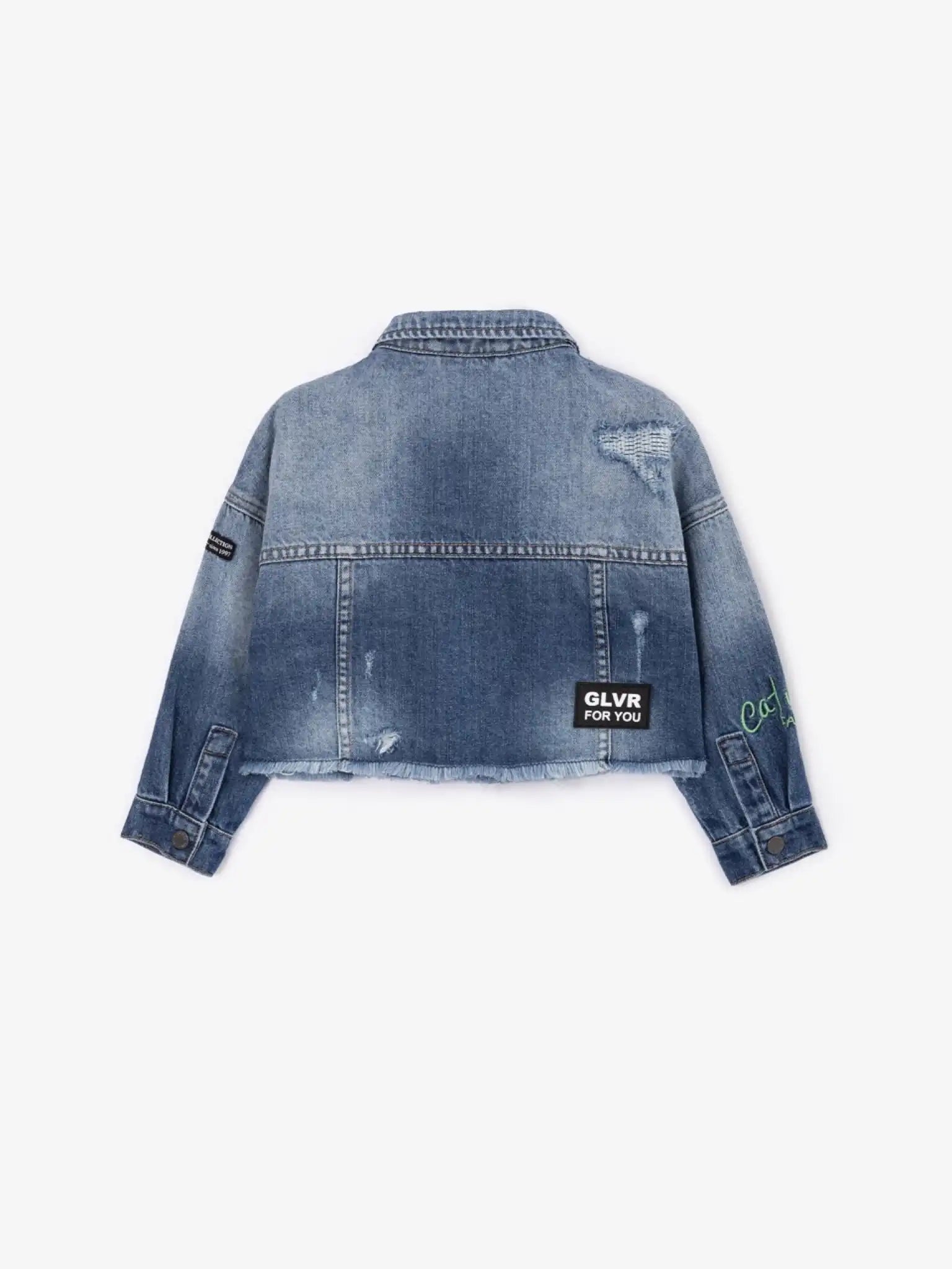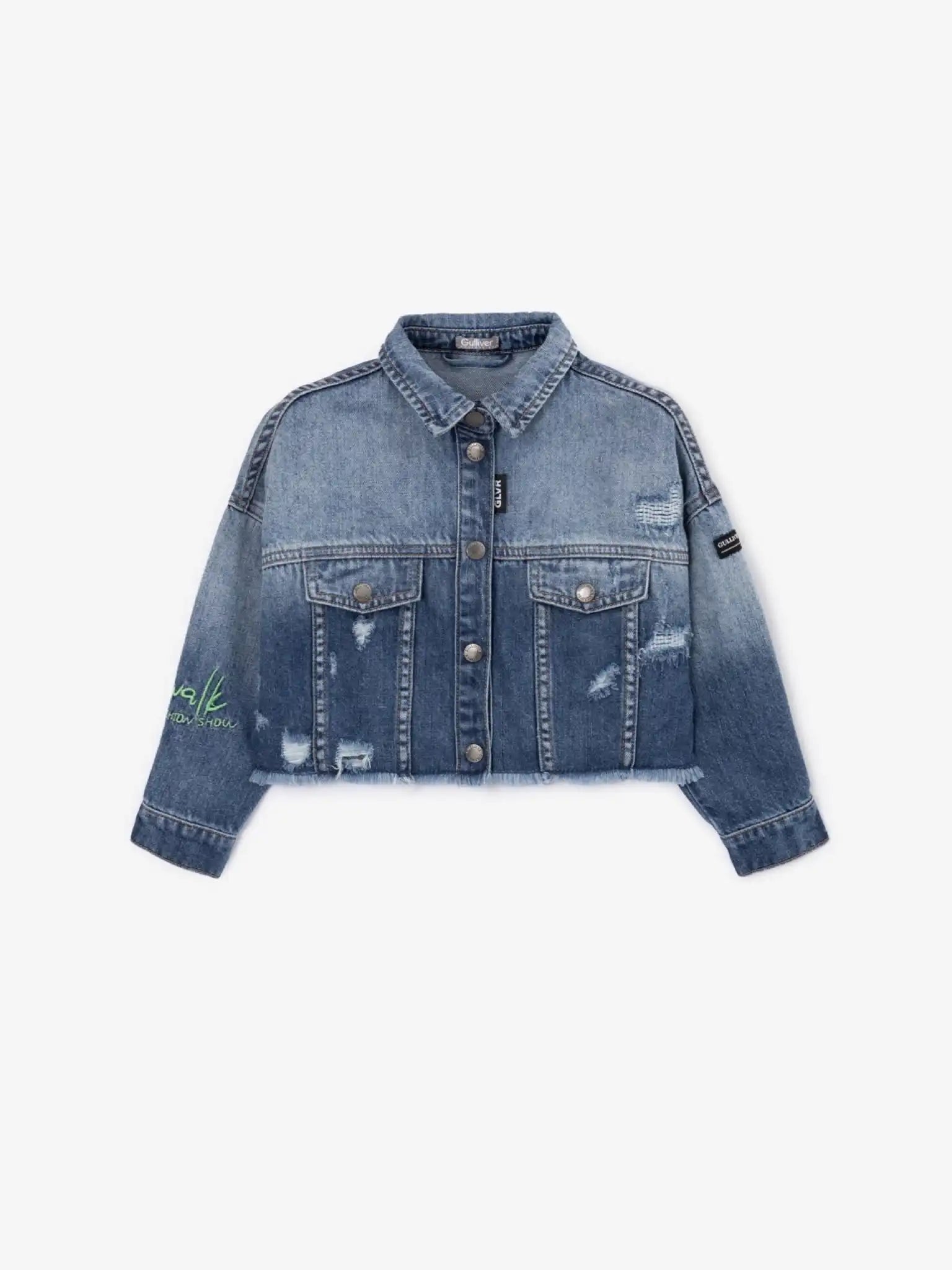 Geaca din denim, cu deformări, pliuri și rupturi, este un element clasic al stilului grunge! Pentru o garderobă practică și comodă de vară, o geacă din denim trebuie să fie mereu la îndemână. Geaca scurtă Gulliver, cu o croială supradimensionată și umeri căzuți, este extrem de confortabilă și ușor de combinat cu tricouri și cămăși de orice dimensiune. Franjurile de la tiv adaugă un aspect îndrăzneț și interesant modelului, conferindu-i o individualitate puternică. Aceasta se va potrivi perfect în garderoba unui copil cu un caracter rebel, devenind o piesă centrală a ținutelor sale de zi cu zi.