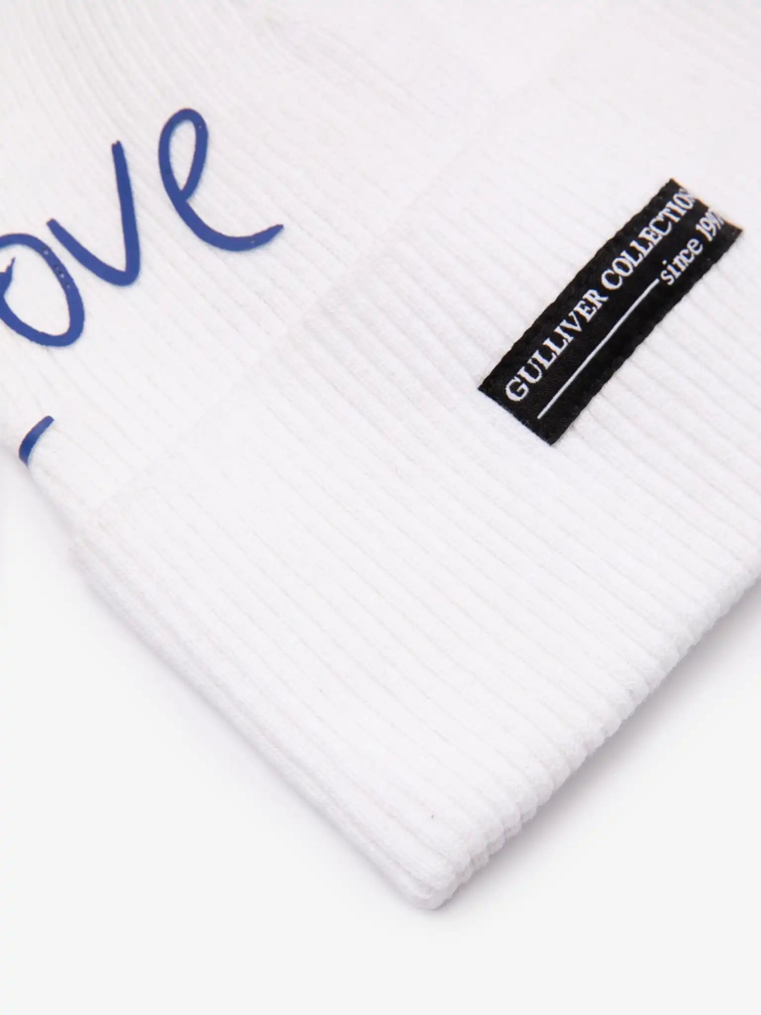 Căciula tricotată albă cu un rever înalt va completa frumos look-ul de primăvară din colecția „Podium”, și nu numai. Modelul este decorat cu o aplicație jacard și un print vibrant cu text cobalt. Căciula nu are căptușeală. Realizată din fir de bumbac cu elastan, căciula este foarte plăcută la atingere, își păstrează bine forma și este ușor de întreținut.