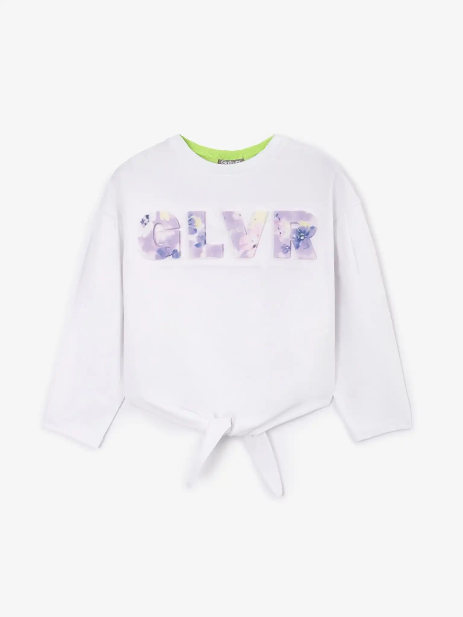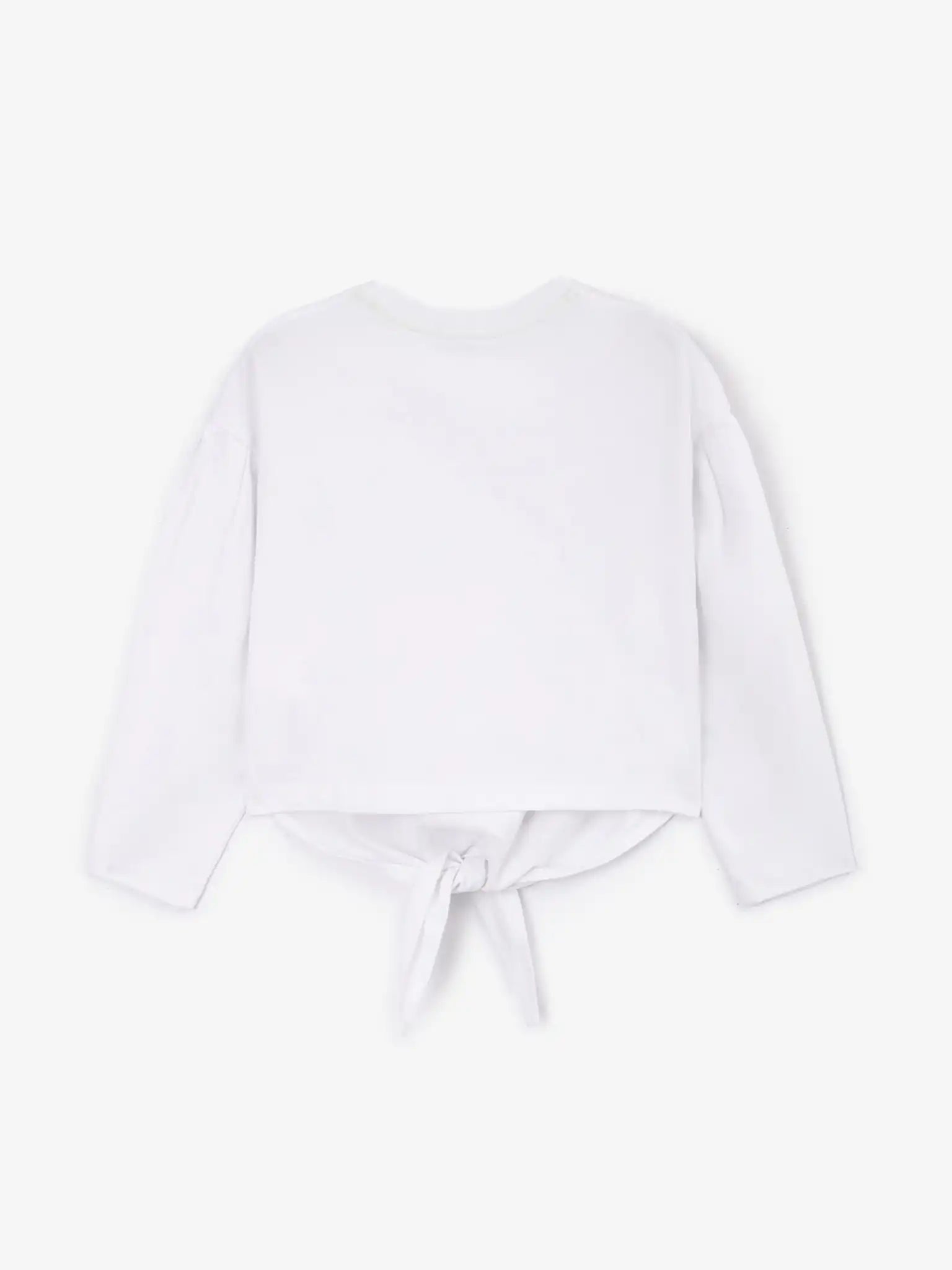 Tricoul alb cu mânecă lungă este o alegere ideală pentru o garderobă de primăvară reîmprospătată! Caracteristica specială a modelului este nodul frontal, care conferă tricoului un aspect lejer și relaxat. Forma modelului, cu umărul lăsat și tăieturile accentuate pentru brațe, creează un volum contemporan, modern, care face tricoul interesant. Designul se remarcă prin decorul tipografic de mari dimensiuni, realizat prin tehnica embosării, cu un imprimeu floral suprapus.
