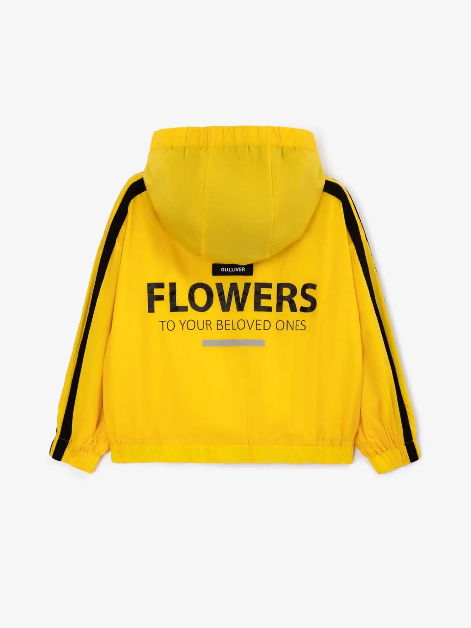 Vestă de vânt într-o nuanță vibrantă de galben, cu căptușeală tricotată – un element ideal pentru crearea unui look modern și dinamic, inspirat din stilul sportiv. Realizată din material impermeabil subțire, cu efect de nervuri, această vestă oferă protecție împotriva umidității. Forma de bomber, buzunarele mari voluminoase, fermoarele contrastante modelate, finisajele tricotate de pe mâneci, inscripțiile de mari dimensiuni de pe spate și piept, detaliile din silicon – toate contribuie la un design îndrăzneț și dinamic. Acest model va sublinia personalitatea fetei și abordarea creativă în formarea garderobei sale.