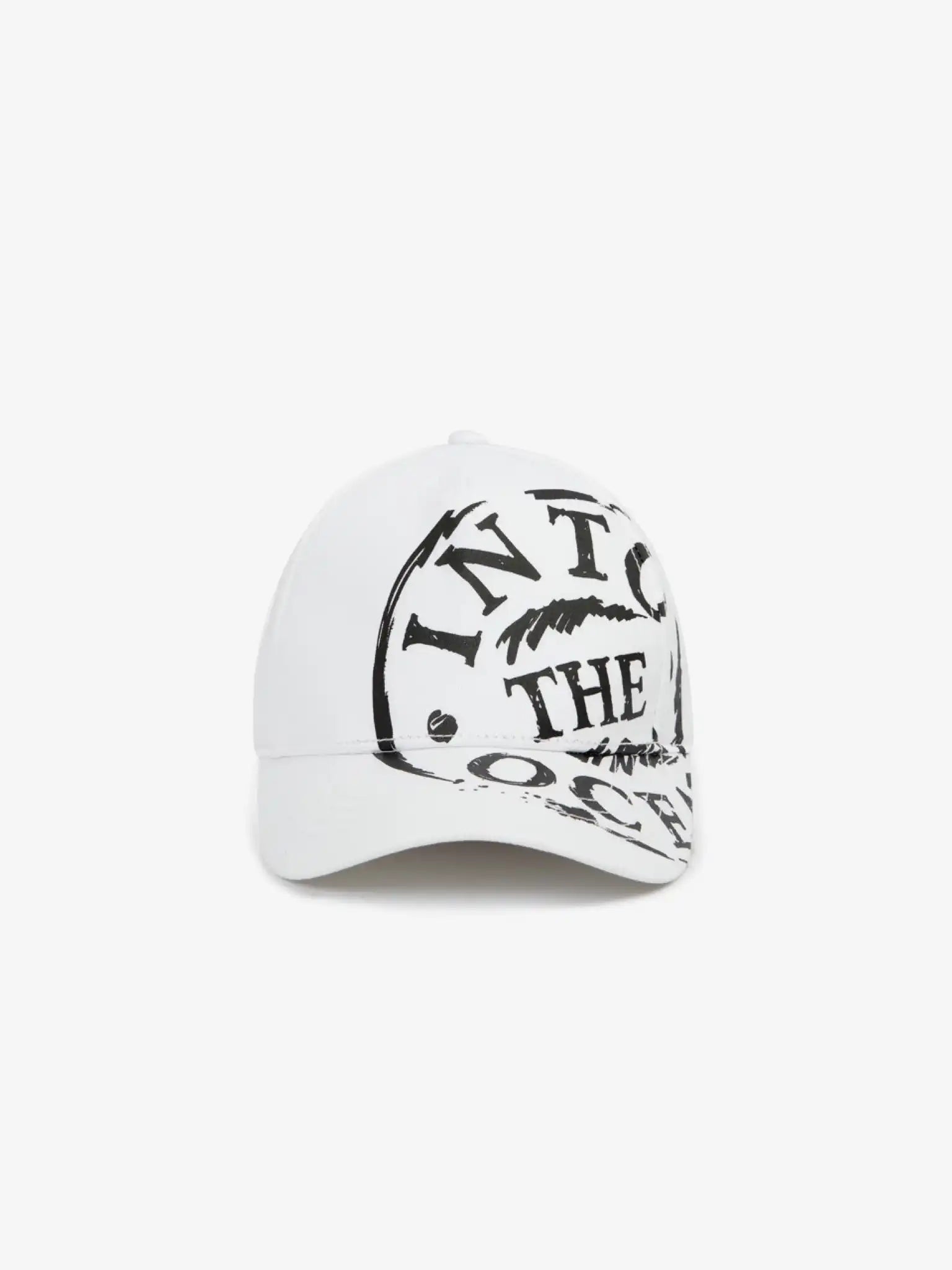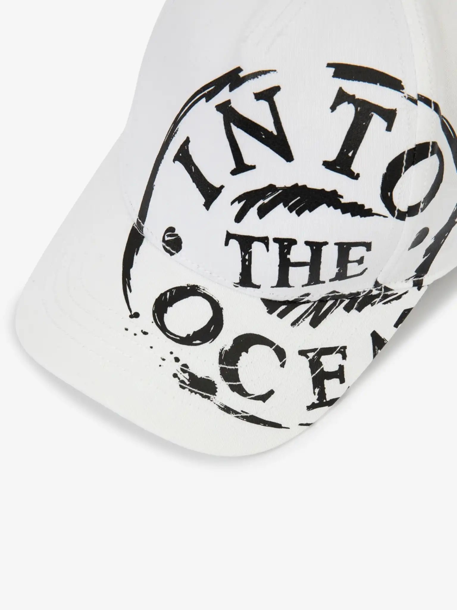 Șapca de baseball albă din bumbac, cu imprimeu asimetric, este un accesoriu de vară vibrant, care atrage atenția.