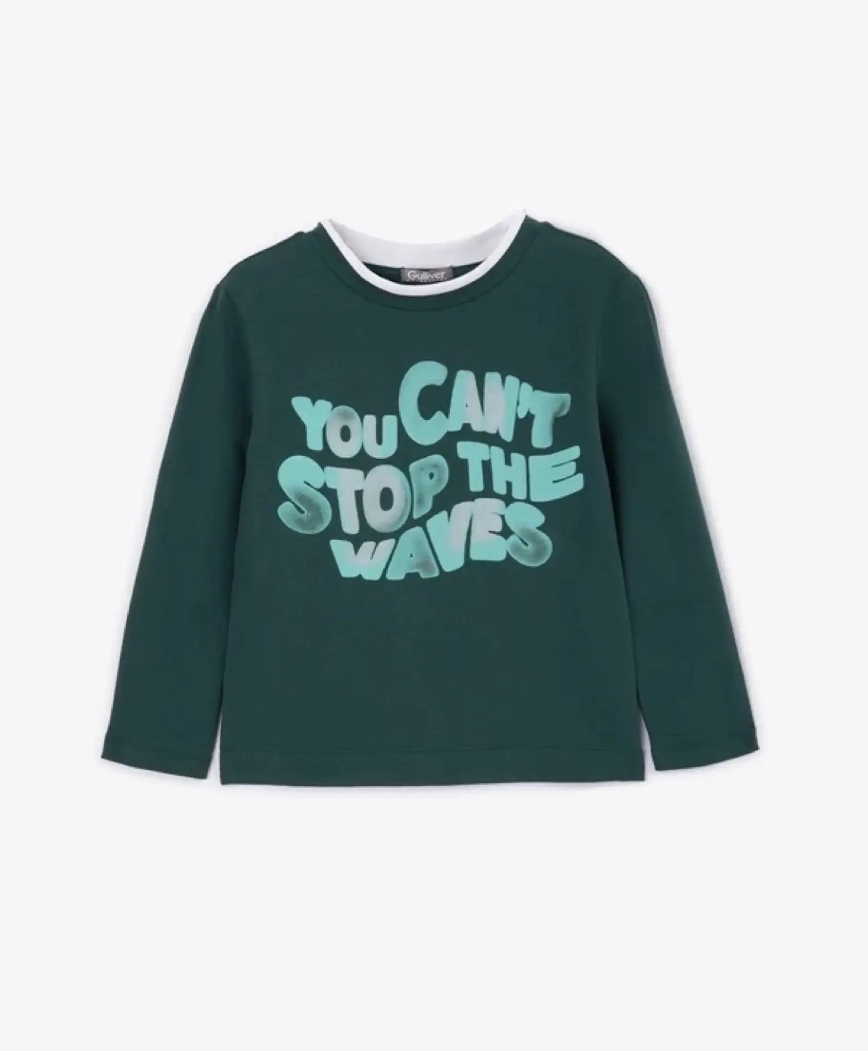 Tricoul cu mânecă lungă, într-o nuanță modernă de albastru marin, va completa orice set din colecția „Hawaii” de la Gulliver și nu numai! Cu o jachetă, o geacă subțire sau o cămașă din denim, acest tricou va arăta armonios, creând un look confortabil și atractiv. Designul modelului include un imprimeu mare în stil acuarelă, ilustrând efectul glitch modern (deformare, distorsiune, neclaritate a imaginii), precum și un petic din silicon.