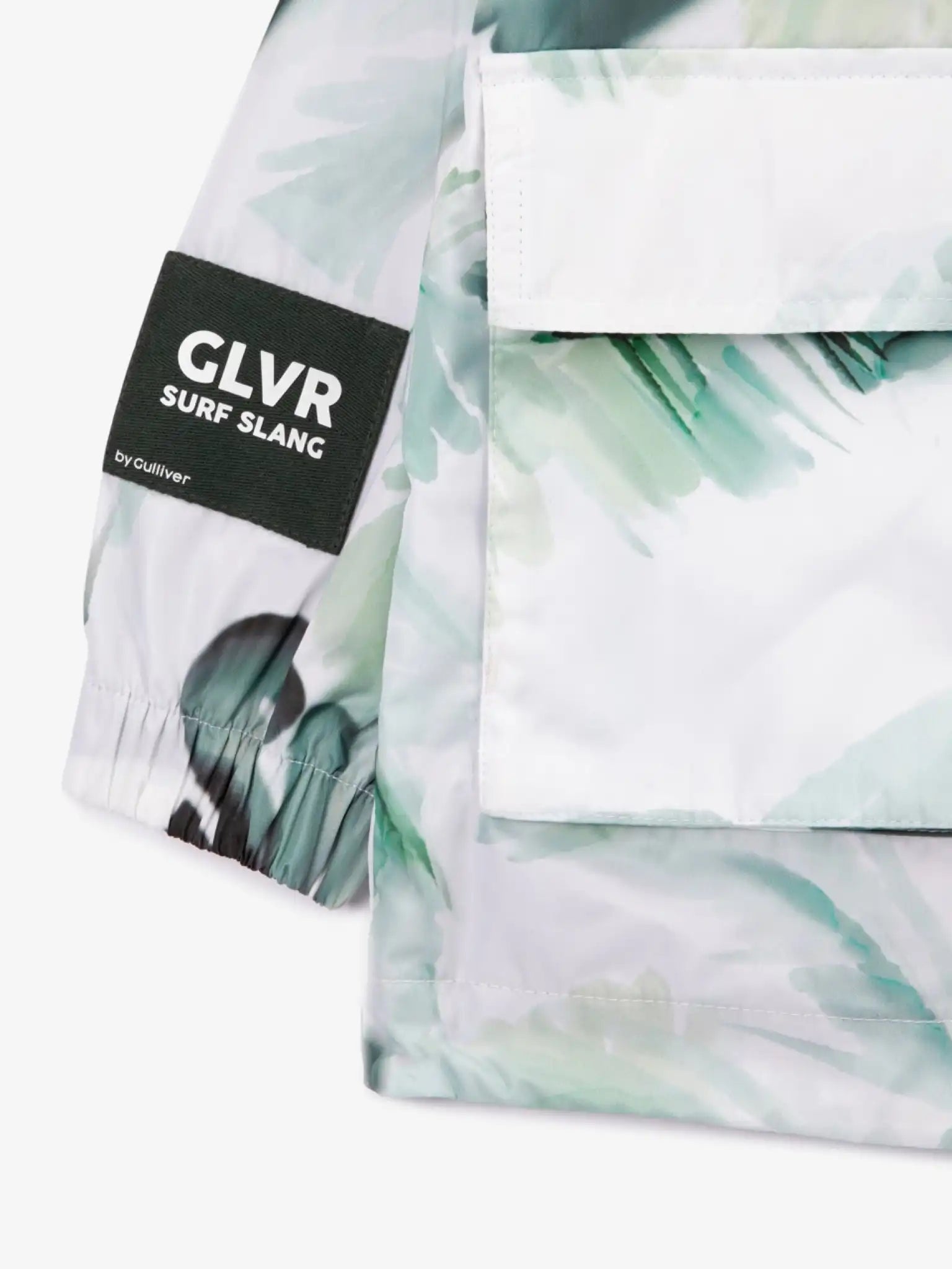 Jachetă de vânt realizată din material impermeabil, cu motive tropicale și căptușeală din plasă – soluția ideală pentru plimbări, călătorii și joacă în aer liber. Imprimeul modern al materialului ilustrează tendința efectului glitch (imagine estompată și distorsionată). Pe lângă aspectul proaspăt și inovator, imprimeul conferă jachetei un caracter practic, esențial pentru un băiat activ. Croiala dreaptă și lejeră oferă copilului confort maxim, fără a-i restricționa mișcările, permițându-i să fie activ și să se joace fără impedimente. Cele două buzunare voluminoase cu clapetă completează designul și sporesc funcționalitatea. Detaliile decorative – patch-ul contrastant de pe mânecă, imprimeul tipografic de pe clapetă și buclele tricotate de pe spate – adaugă un caracter distinct modelului Gulliver. Designul include imprimeuri reflectorizante, contribuind la siguranța băiatului în timpul plimbărilor nocturne.