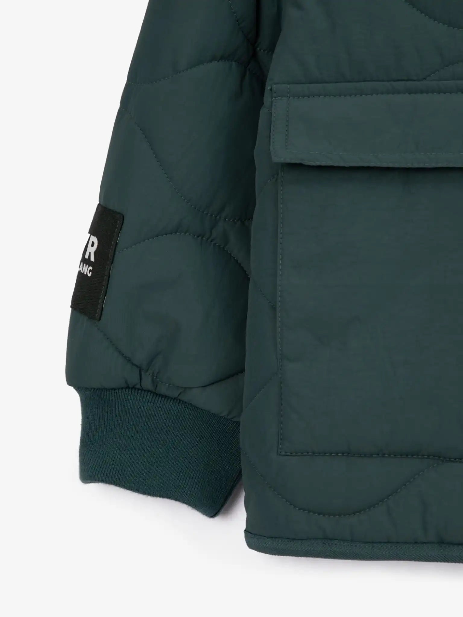 Jachetă izolată, cu glugă detasabilă și buzunare voluminoase - îmbrăcăminte stilată și confortabilă pentru tranziția de la iarnă la vară. Culoarea modernă și practică de albastru marin, designul bine gândit, detaliile funcționale convenabile fac jacheta ideală pentru reîmprospătarea primăverii. Caracteristica modelului este cusătura interioară cu izolație și căptușeală ornamentată, care permite procesarea tuturor cusăturilor interioare cu chenar. Acest lucru îmbunătățește semnificativ aspectul produsului și face ca jacheta să fie estetic finisată la interior. Designul modelului se distinge printr-o etichetă din textil cu elemente de tipografie și o semnătură reflectorizantă care contribuie la siguranța băiatului în întuneric.