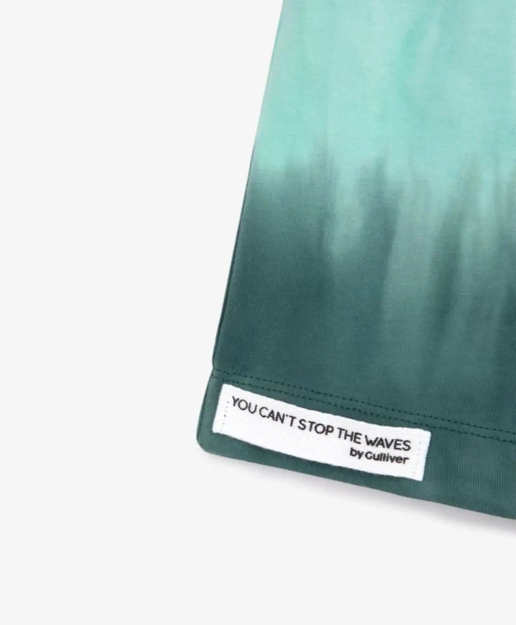 Șorturile tricotate cu talie elastică sunt un element esențial în garderoba de vară a copilului! Imprimeul expresiv tie-dye și nuanța nobilă de mentă fac ca aceste pantaloni scurți să fie deosebiți, unici și diferiți de modelele obișnuite. Designul este completat de o etichetă decorativă cu elemente tipografice.