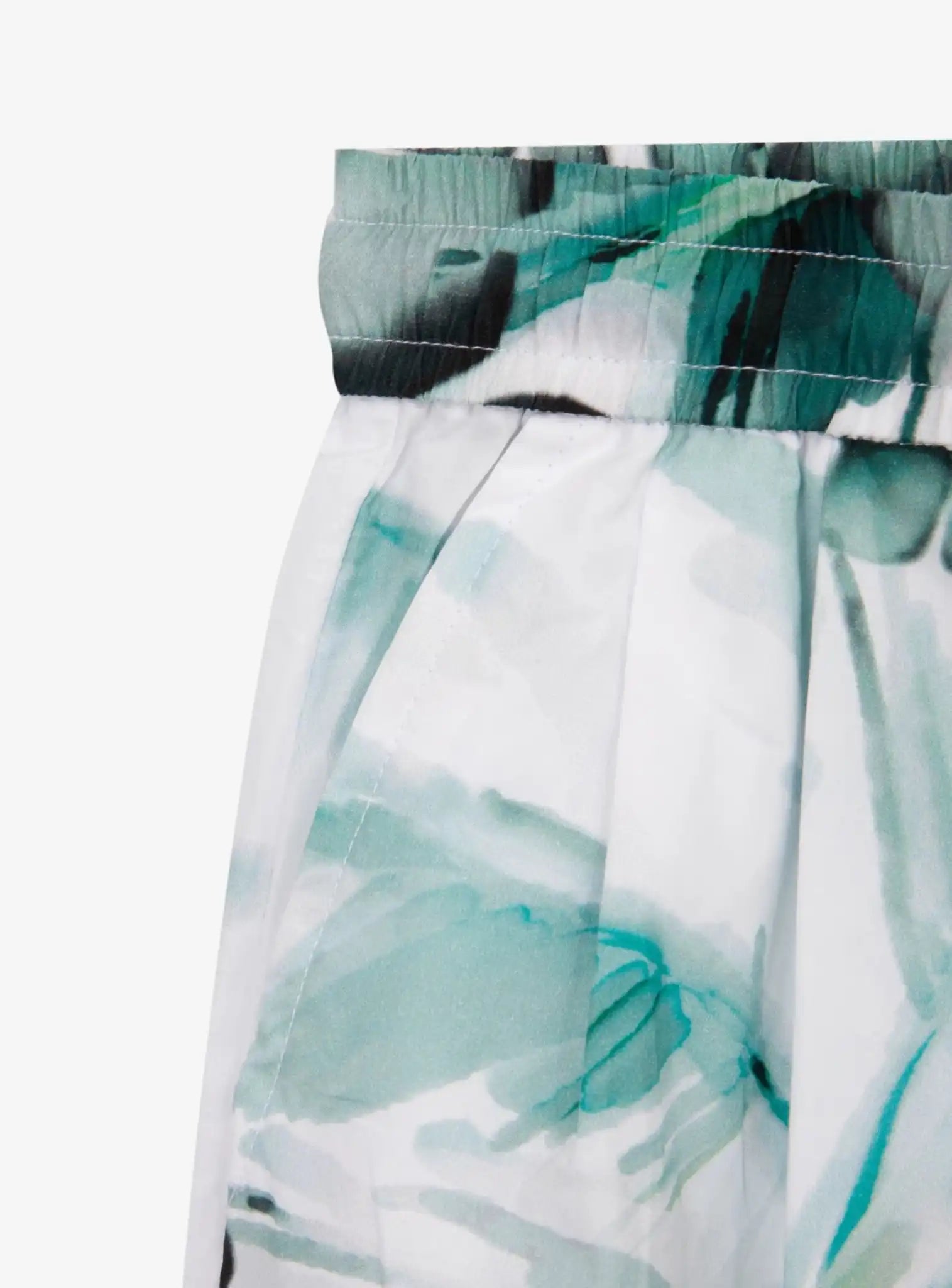 Pantaloni subțiri din material textil - o opțiune ideală pentru vară! Confecționați din poplin cu un model interesant, reflectând tendința efectului glitch (imagine estompată, neclară), pantalonii arată expresiv și vibrant! Forma dreaptă și lejeră, creată datorită clapetelor din talie, centura elastică cu șnur suplimentar și materialul subțire și răcoros fac pantalonii incomparabili în ceea ce privește confortul și funcționalitatea în zilele toride. Lățimea produsului în partea de jos poate fi ajustată cu ajutorul nasturilor. Pantalonii pot deveni mai înguști în partea inferioară prin prinderea cu un nasture sau pot rămâne drepți și lejeri fără acesta. De asemenea, îi puteți răsuci pentru a crea o versiune mai scurtă a modelului.