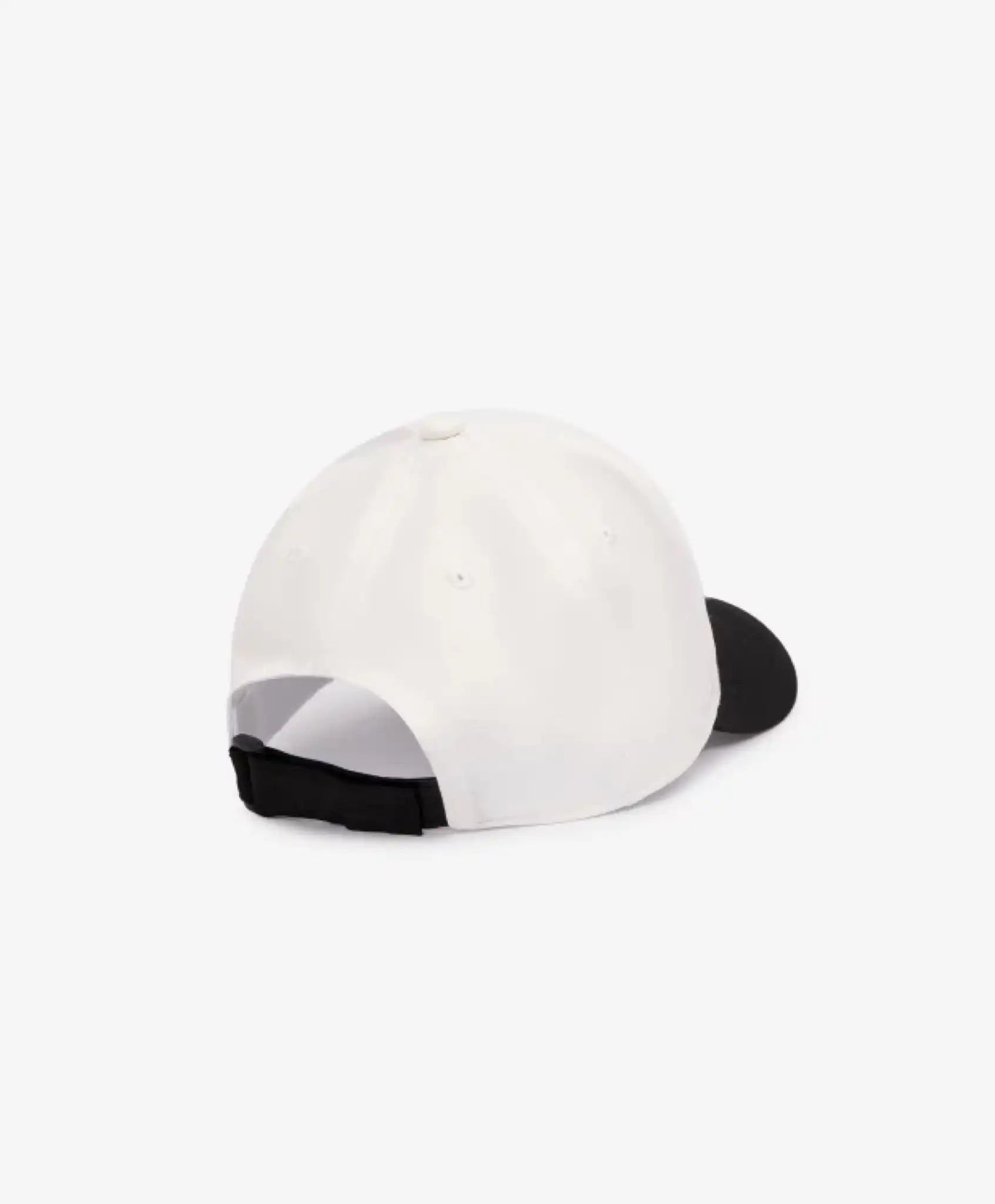 Șapca de baseball este un accesoriu esențial pentru sezonul cald! Designul modelului se bazează pe combinații cromatice. Schema alb-negru, completată de un imprimeu tipografic subtil, face ca această șapcă să fie un accesoriu versatil, potrivit pentru diverse ținute de vară. Șapca este confecționată fără căptușeală, cu întăritură în partea frontală pentru a-și menține forma.