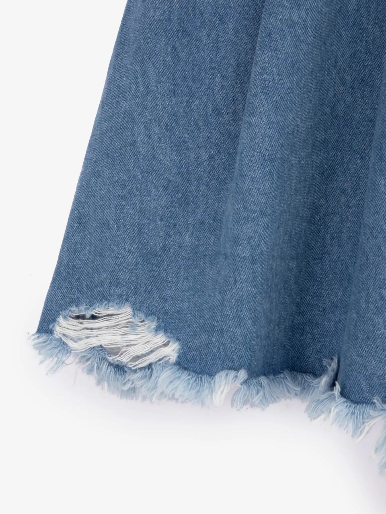 Fusta din denim, cu un gradient interesant de culori și franjuri la tiv, este alegerea perfectă pentru o fată care preferă stilurile îndrăznețe și neconvenționale! Datorită pliurilor cusute și croielii trapezoidale, fusta capătă un aspect feminin și lejer. Un efect modern și îndrăzneț este conferit de designul „damage”, care combină romantismul și stilul grunge într-un singur model. Designul include un petic din piele.