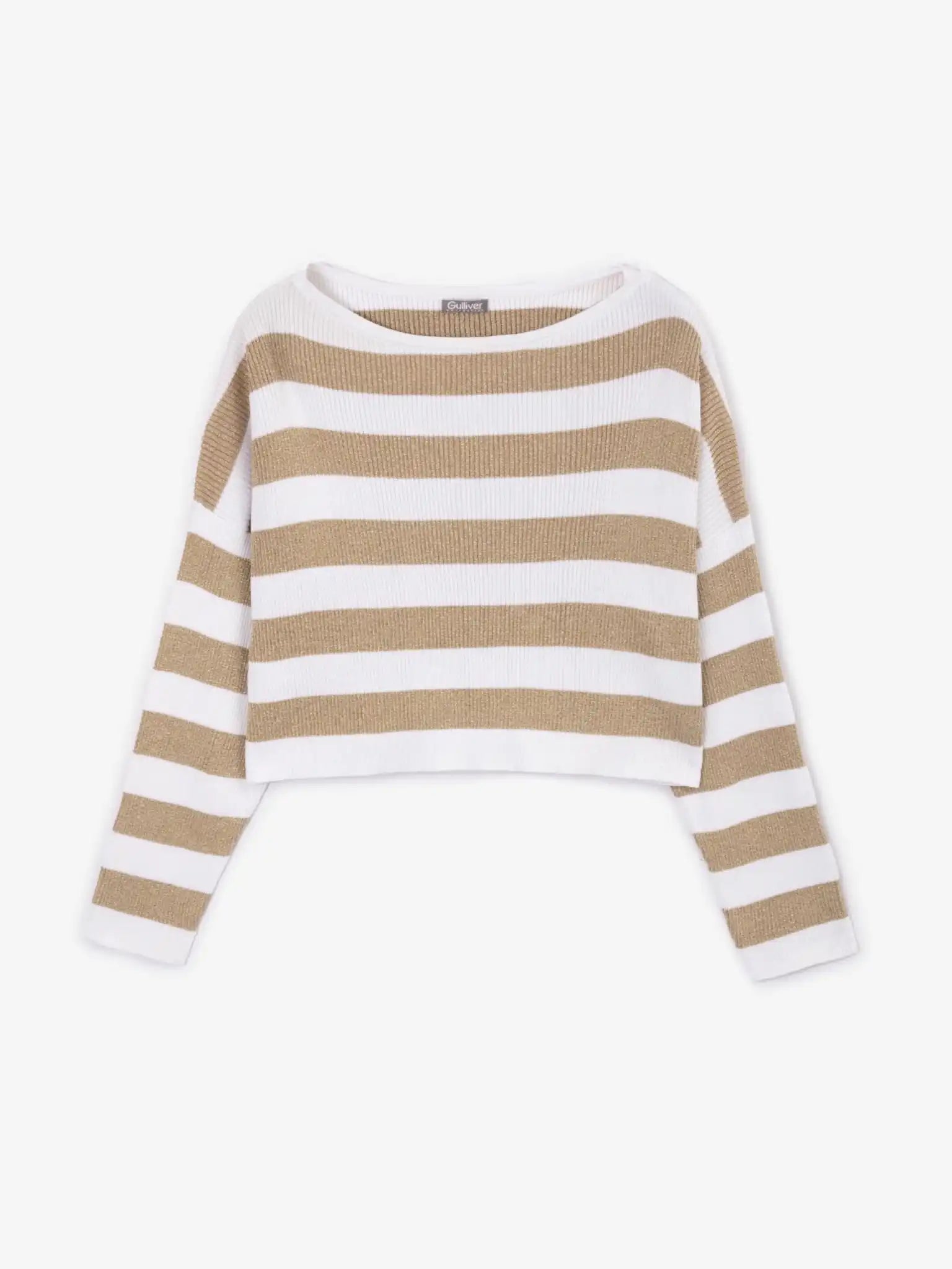 Pulover tricotat, cu dungi late și fir lurex auriu, Gulliver