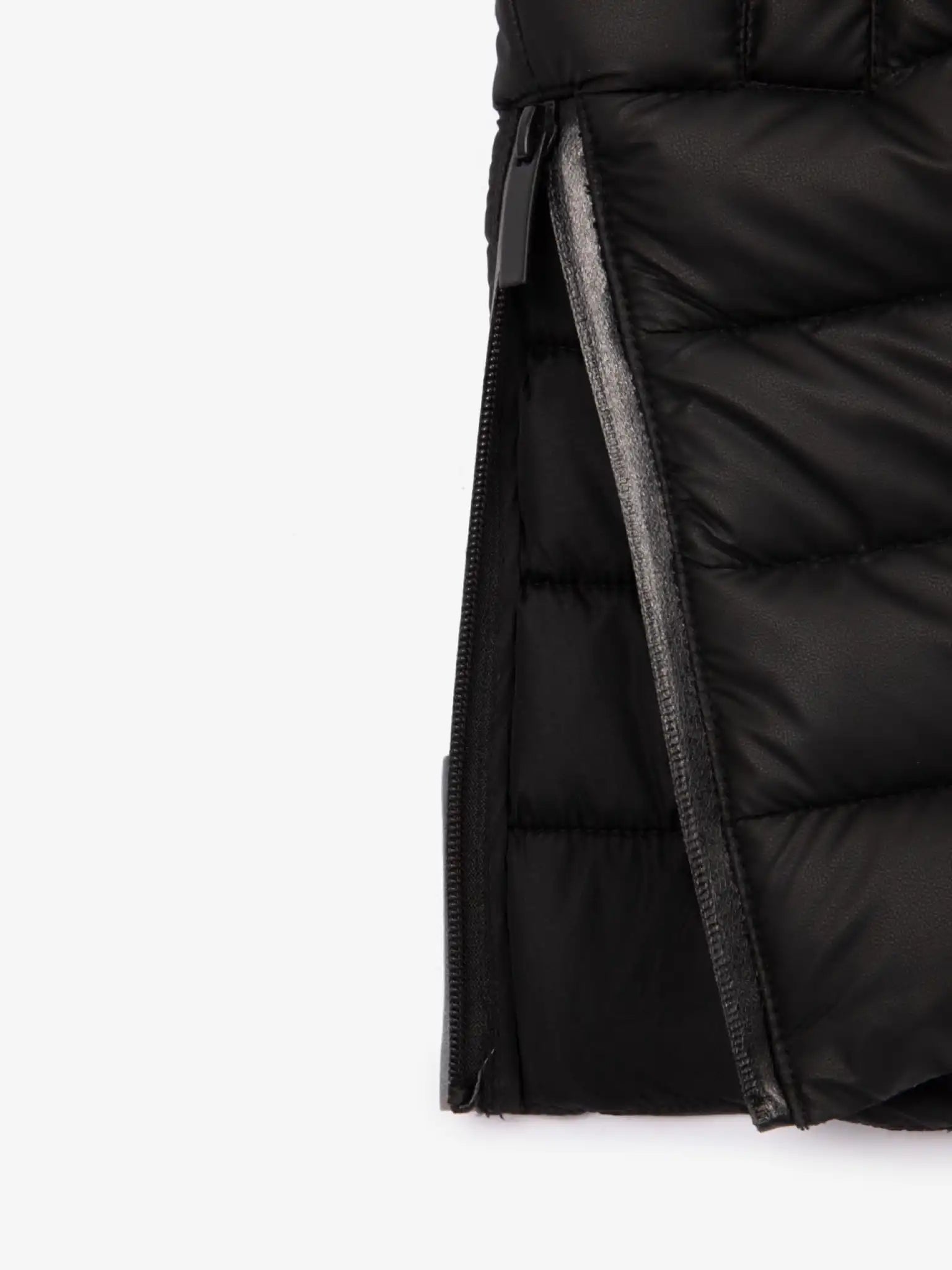 Vestă matlasată lungă cu glugă – o piesă stilată și practică pentru sezonul intermediar, care completează frumos ținutele stratificate. Vestă este confecționată dintr-un material impermeabil, care la atingere și aspect seamănă cu o piele ecologică subțire. Cusăturile cu izolație și căptușeala oferă vestei un aspect finisat și ajută la menținerea formei. Benzile de finisare ale cusăturilor interioare fac ca vestă să fie estetică nu doar pe exterior, ci și pe interior. Modelul se închide cu un fermoar profilat impermeabil. Fermoarele laterale facilitează mersul confortabil. Modelul este decorat cu un patch de marcă minimalist.