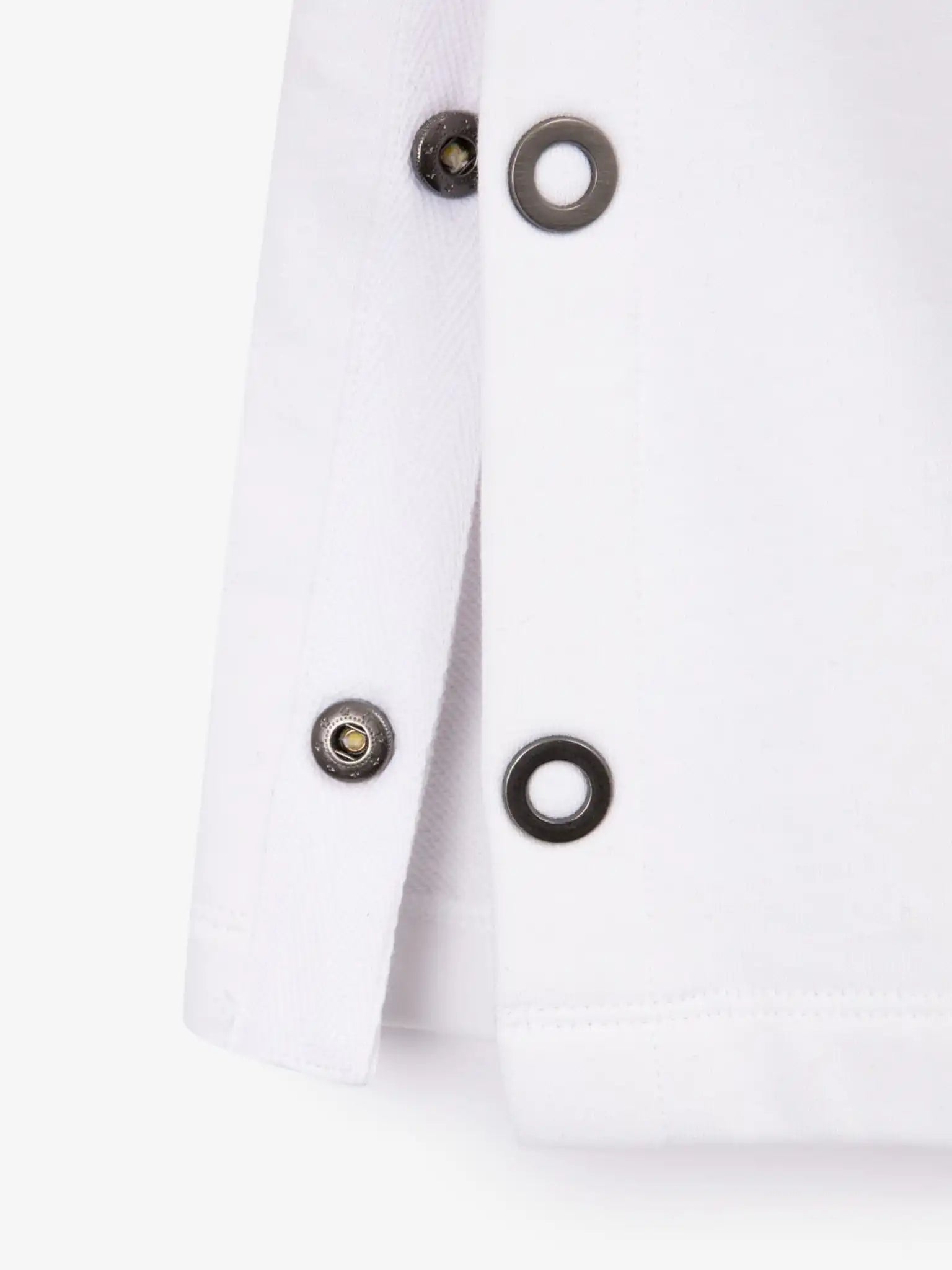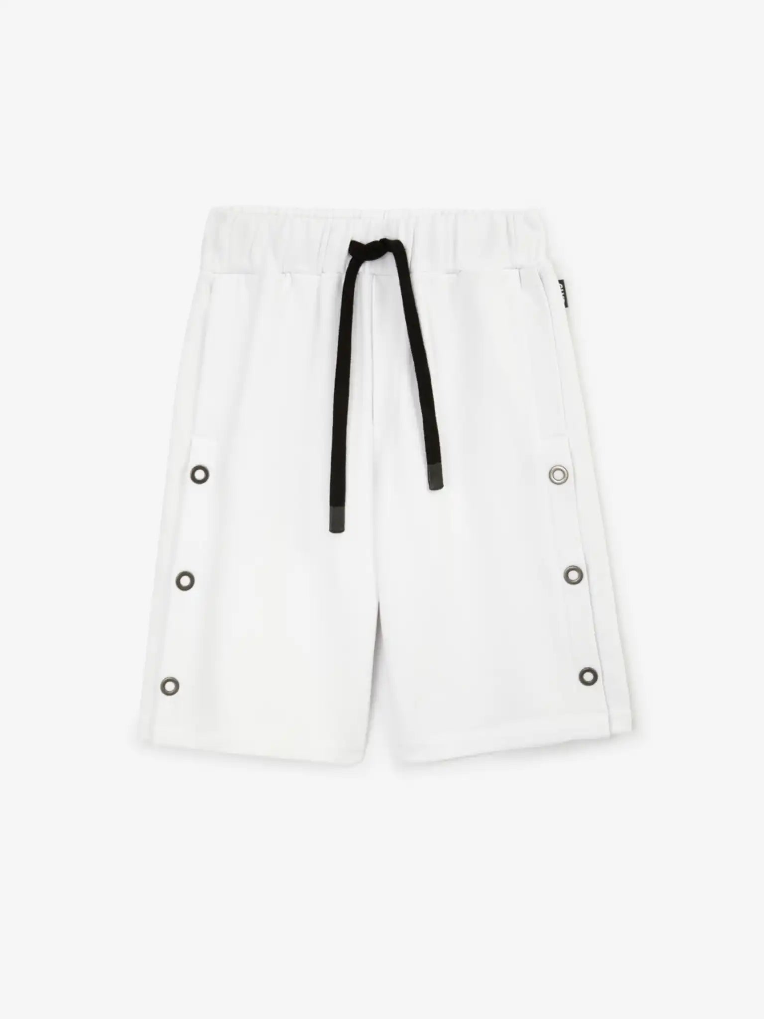 Șorturile albe sunt o alegere excelentă pentru vară! Foarte confortabile, flexibile și ușor de purtat, ele se combină perfect cu orice tricou, maiou sau polo, creând un look proaspăt și interesant. Modelul este prevăzut cu tăieturi laterale înalte, fixate cu nasturi. Deși închiderea este funcțională, aceasta poate fi considerată și un element decorativ ce reflectă tendința sezonului – utilizarea accesoriilor metalice în designul produselor. Șorturile dispun de buzunare laterale confortabile.